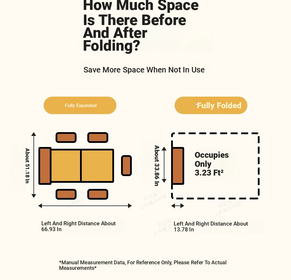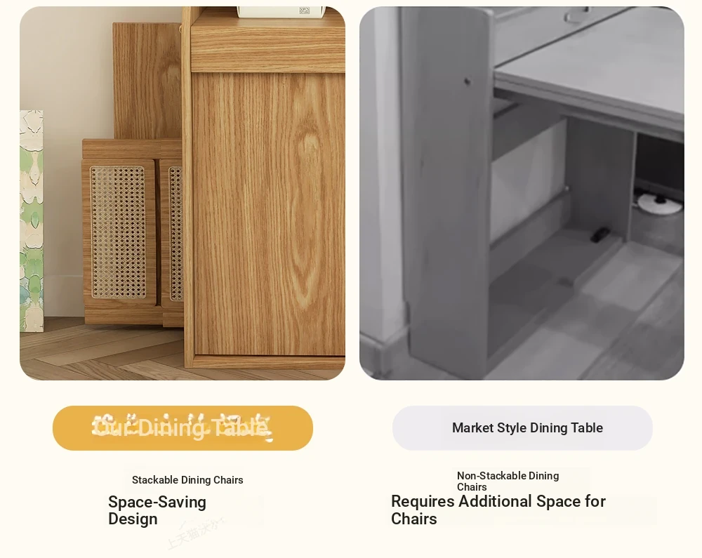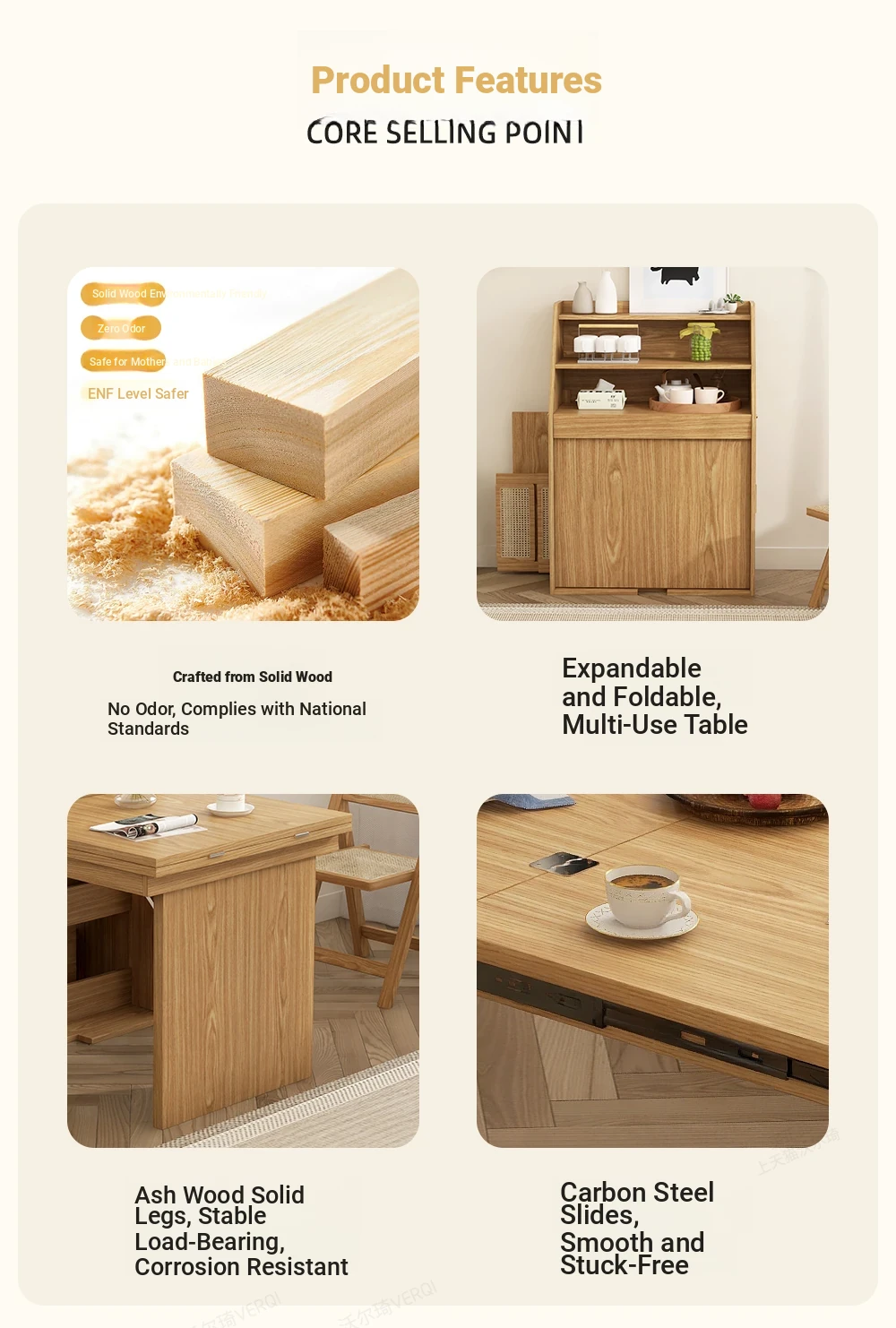 Walqi Folding Dining Table - Nordic Style Solid Wood Rectangular Table with Space-Saving Chairs for Small Apartments - Perfect for Home Dining and Minimalist Living