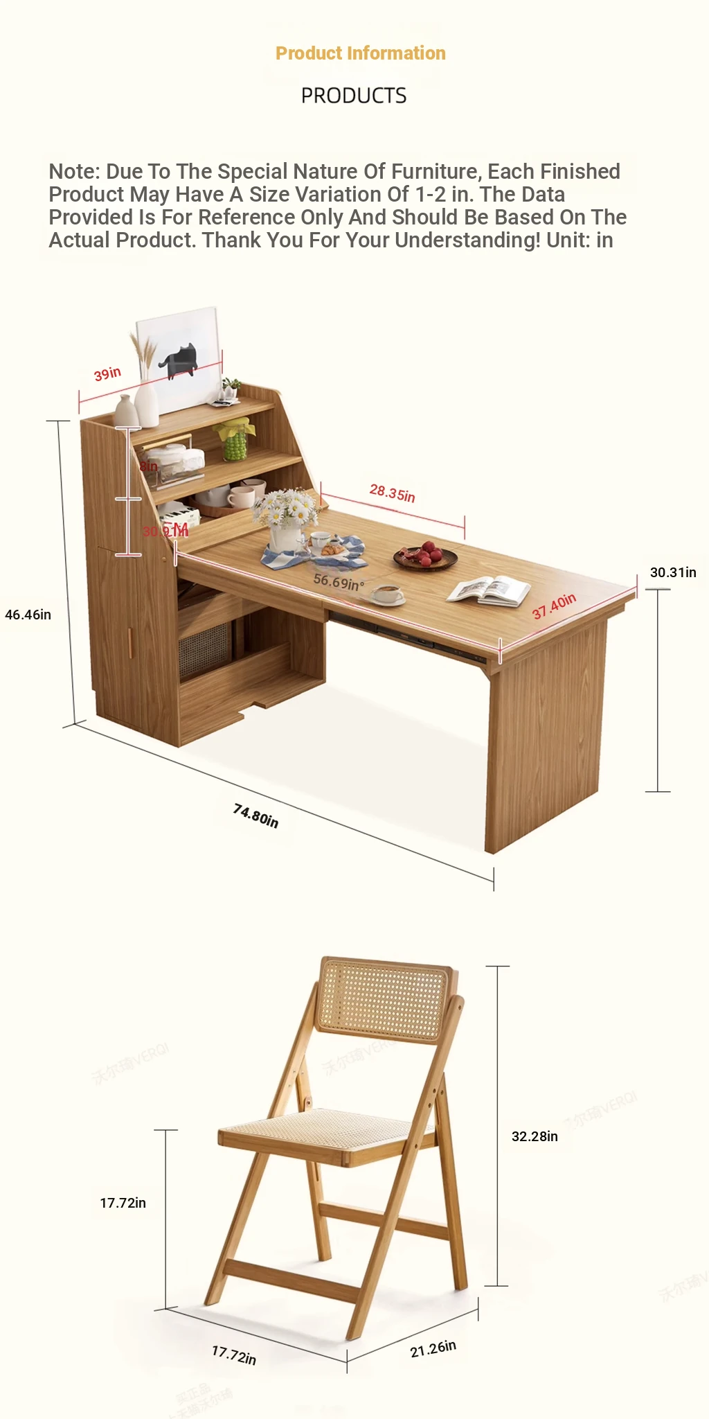 Dining Table + Folding Chair*2 [Retractable Folding Chair]