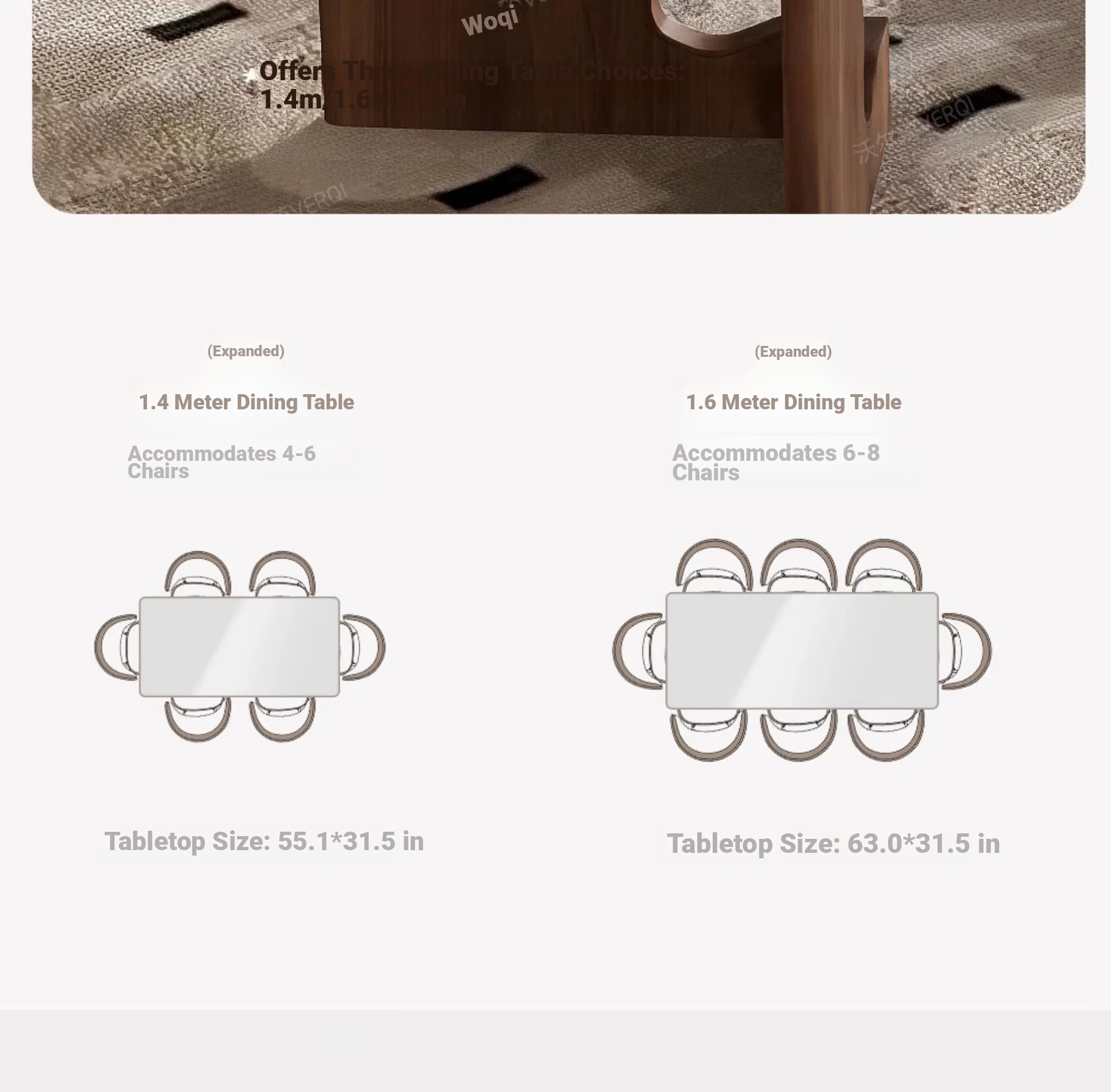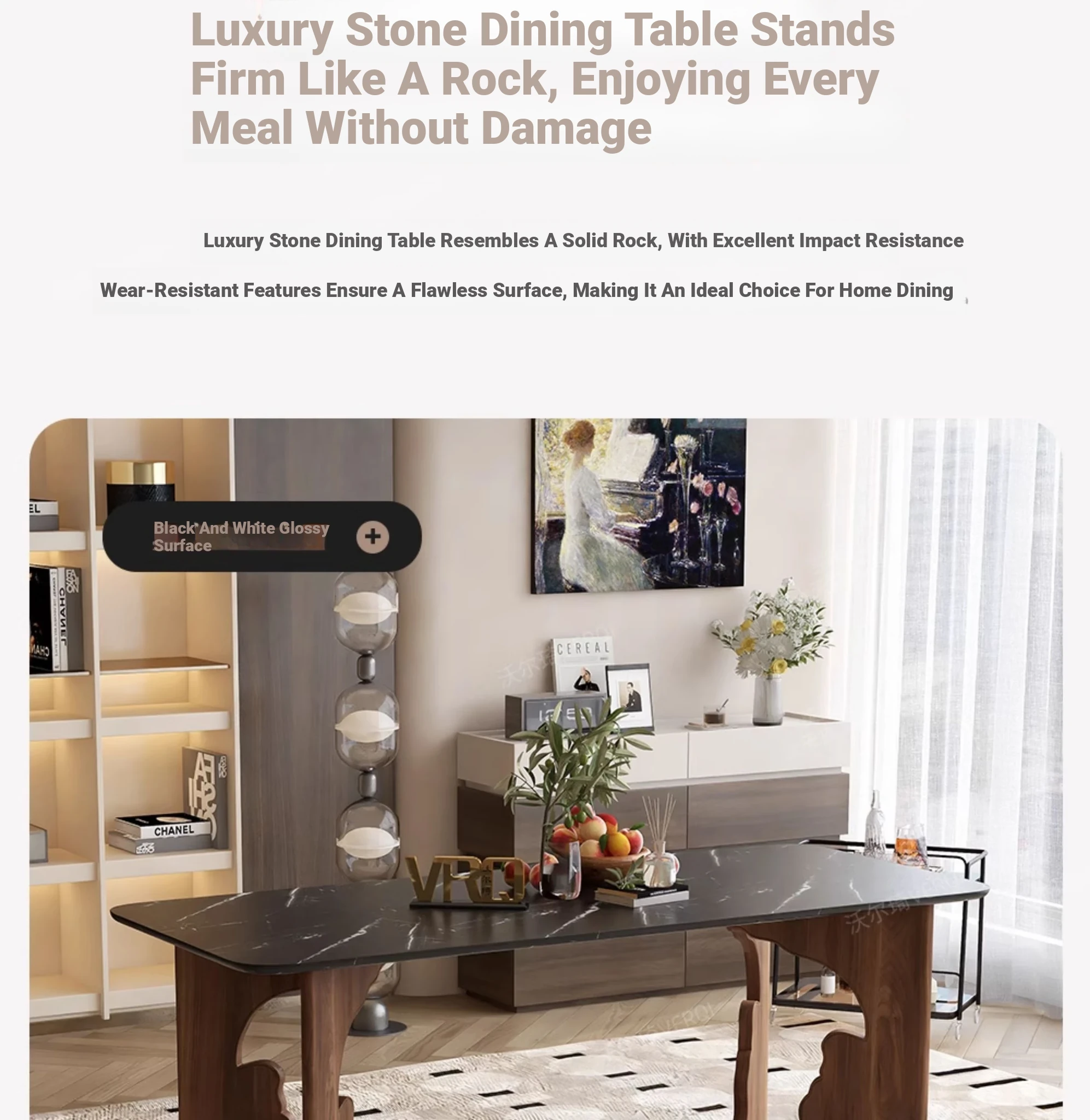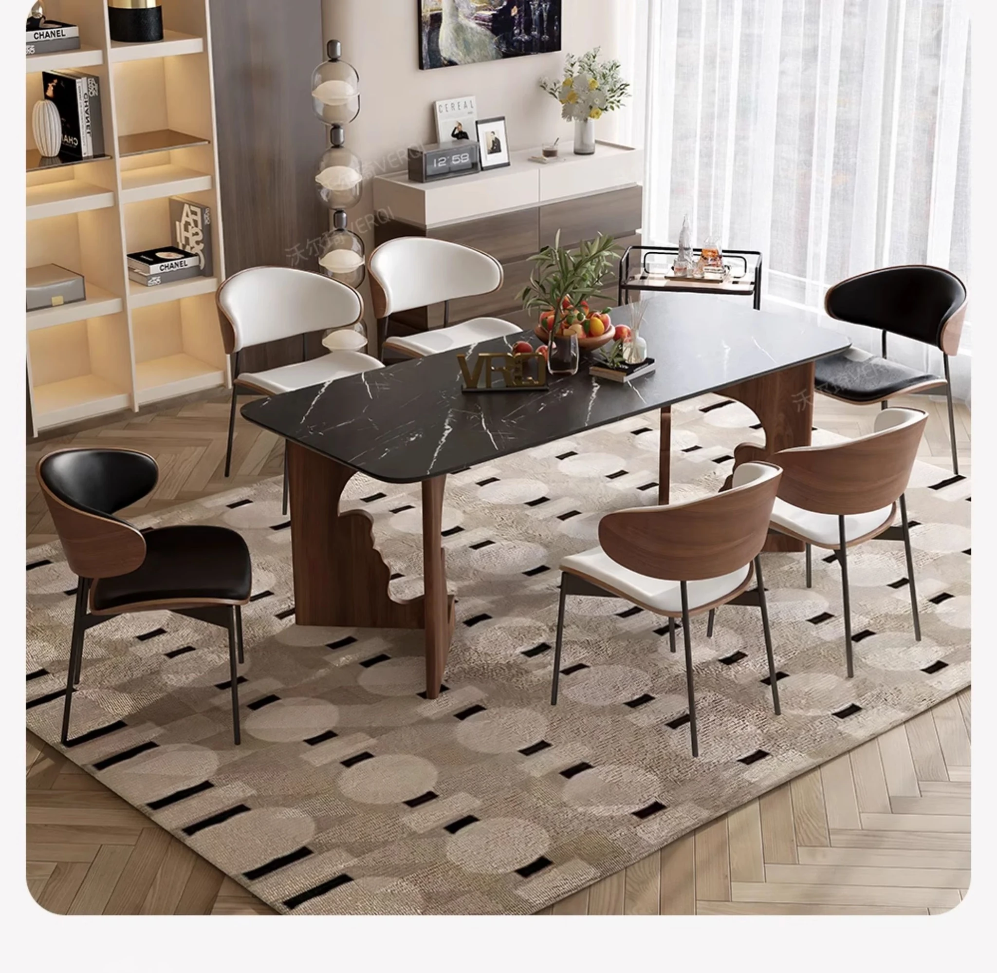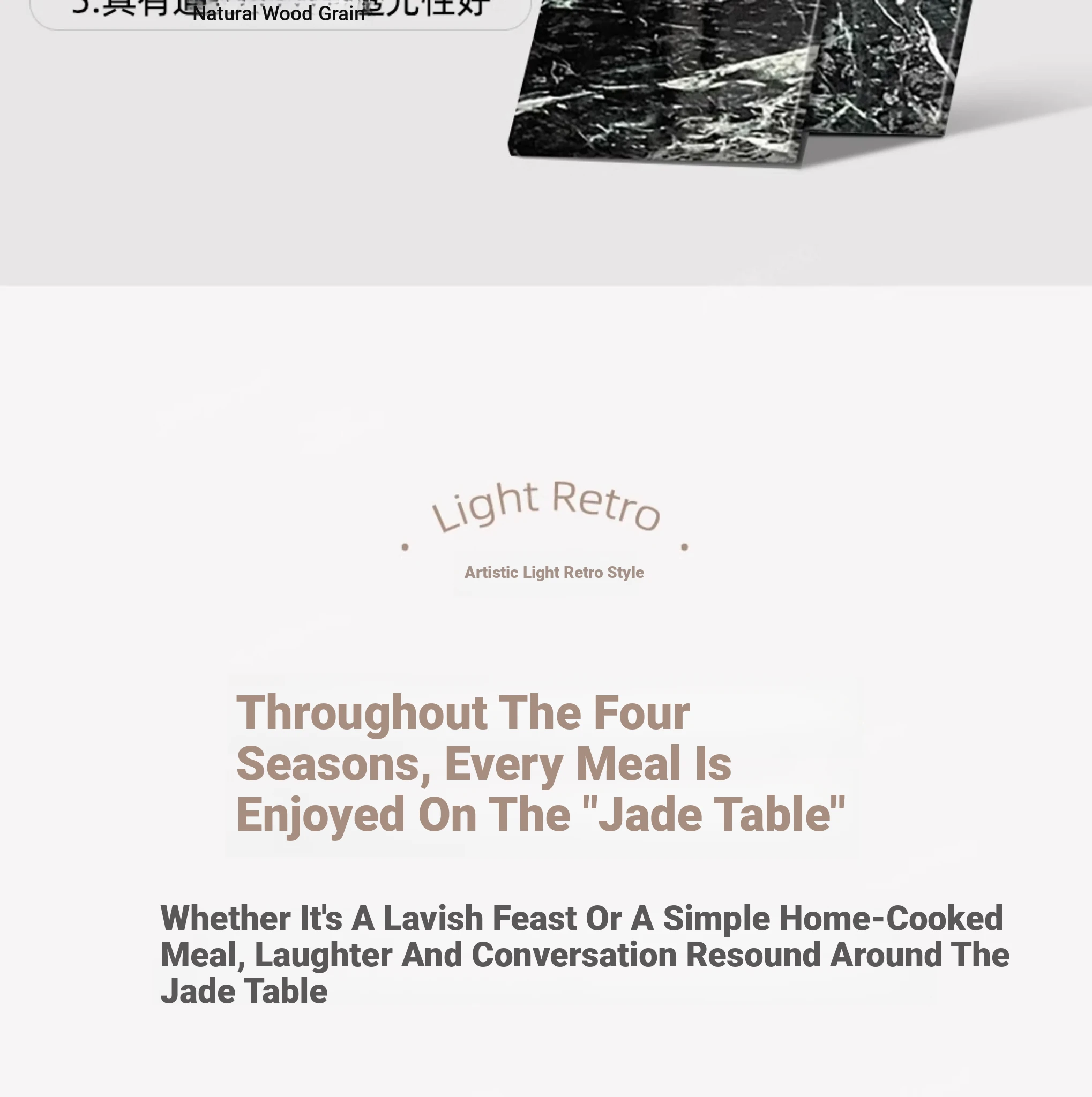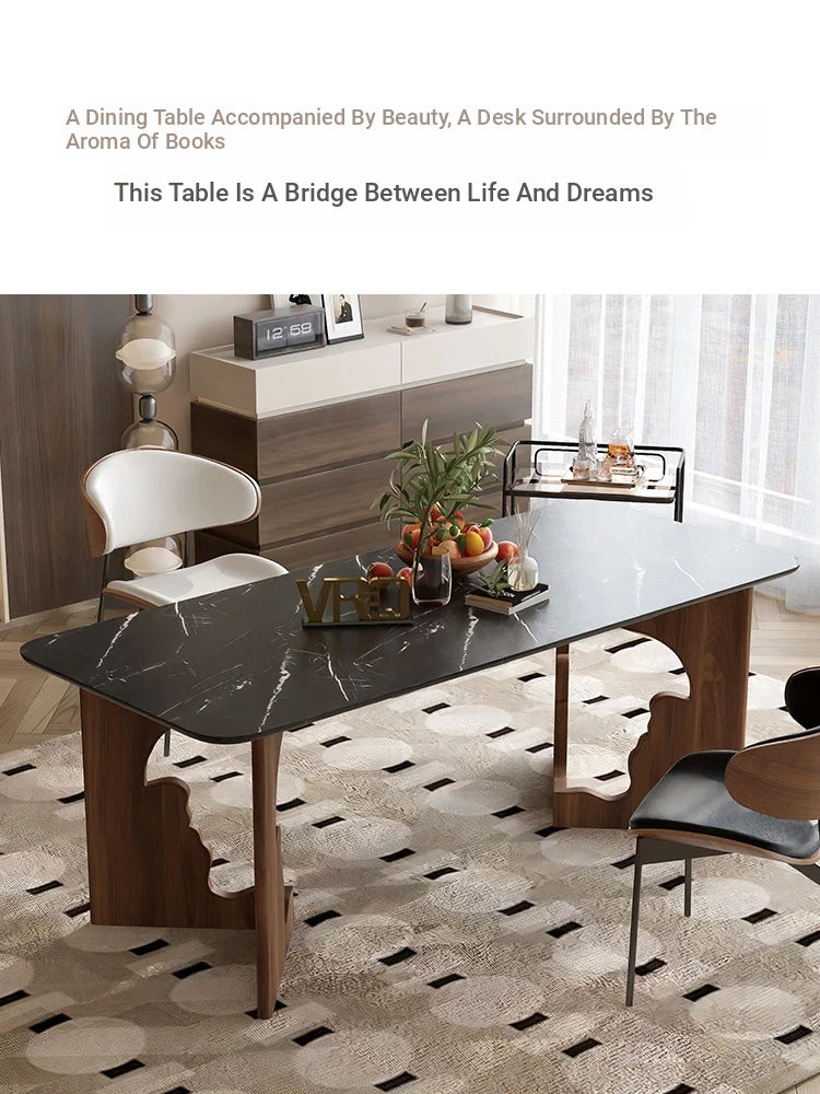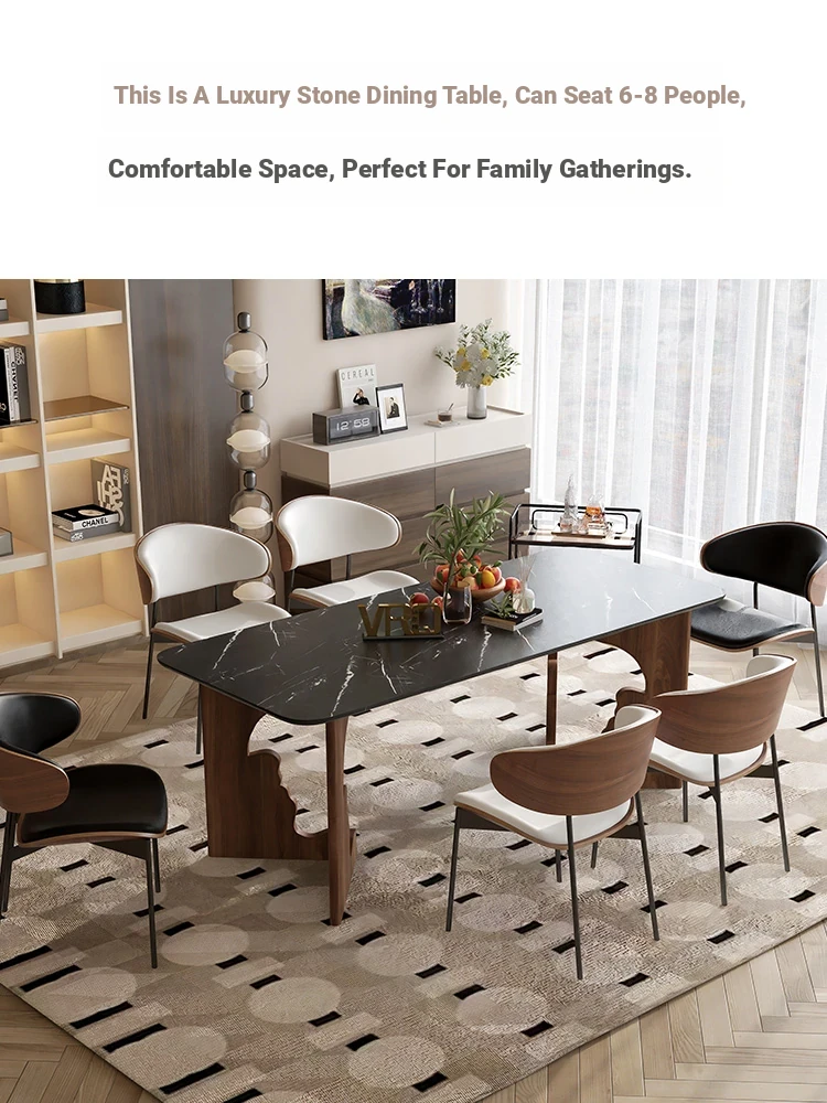 Walqi Luxury Stone Solid Wood Dining Table - Vintage Style Rectangular Dining Table Set with Modern Chairs for Living Room