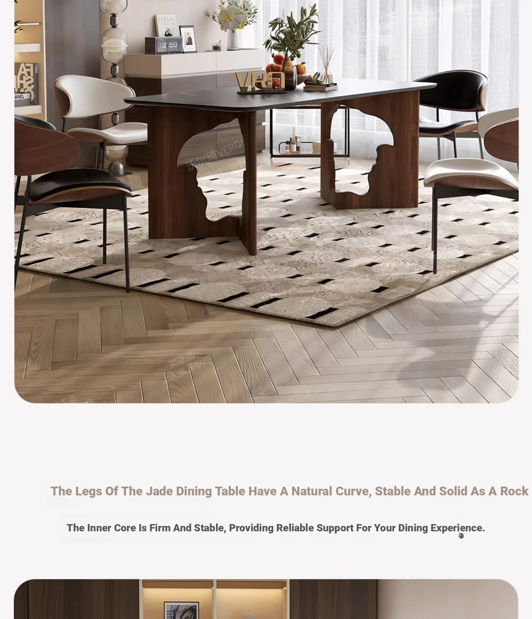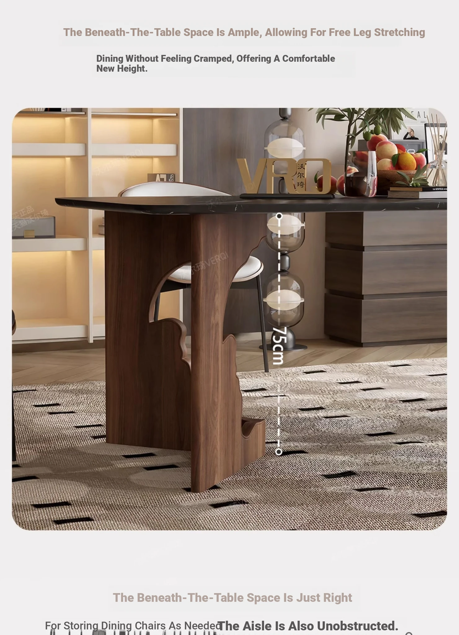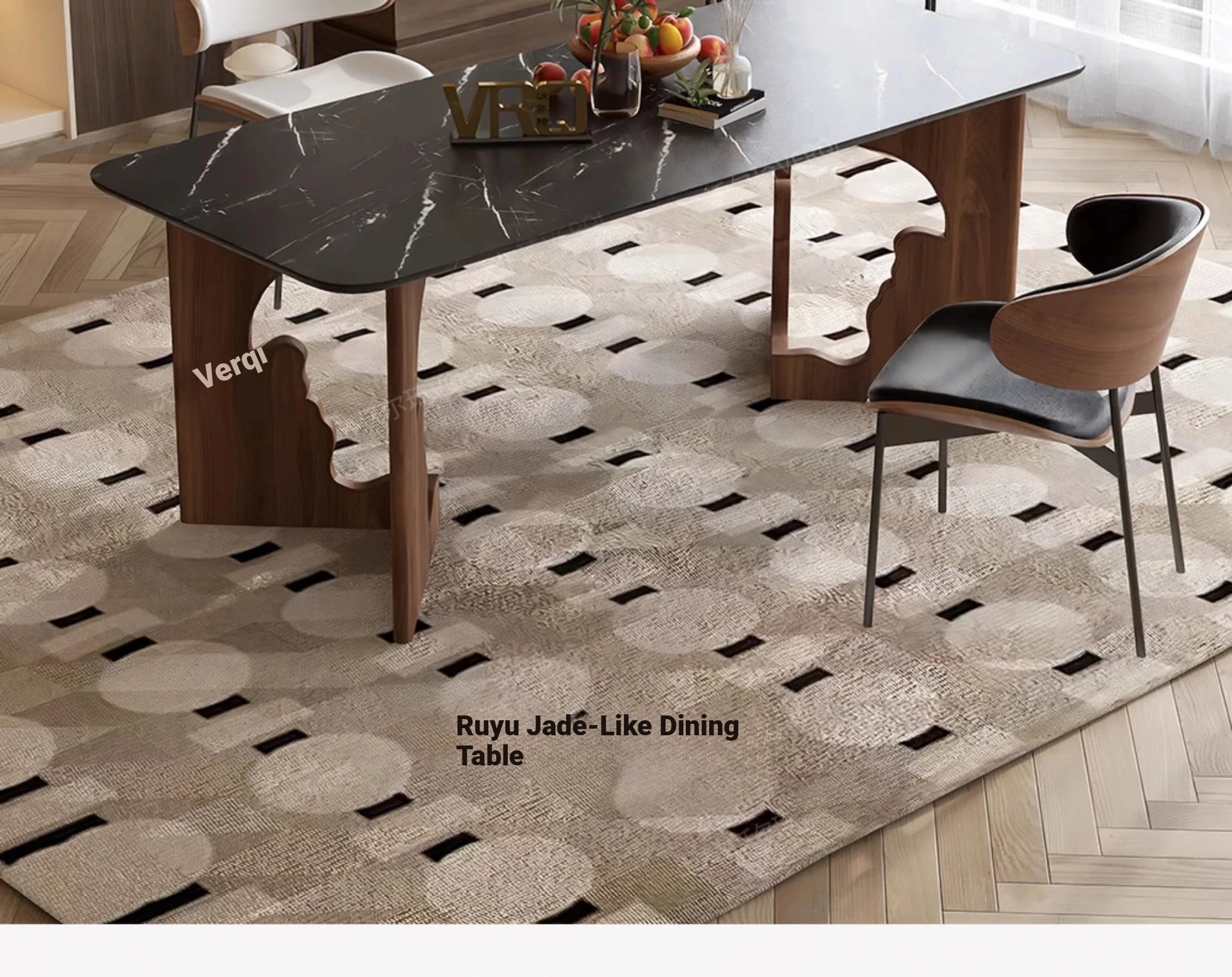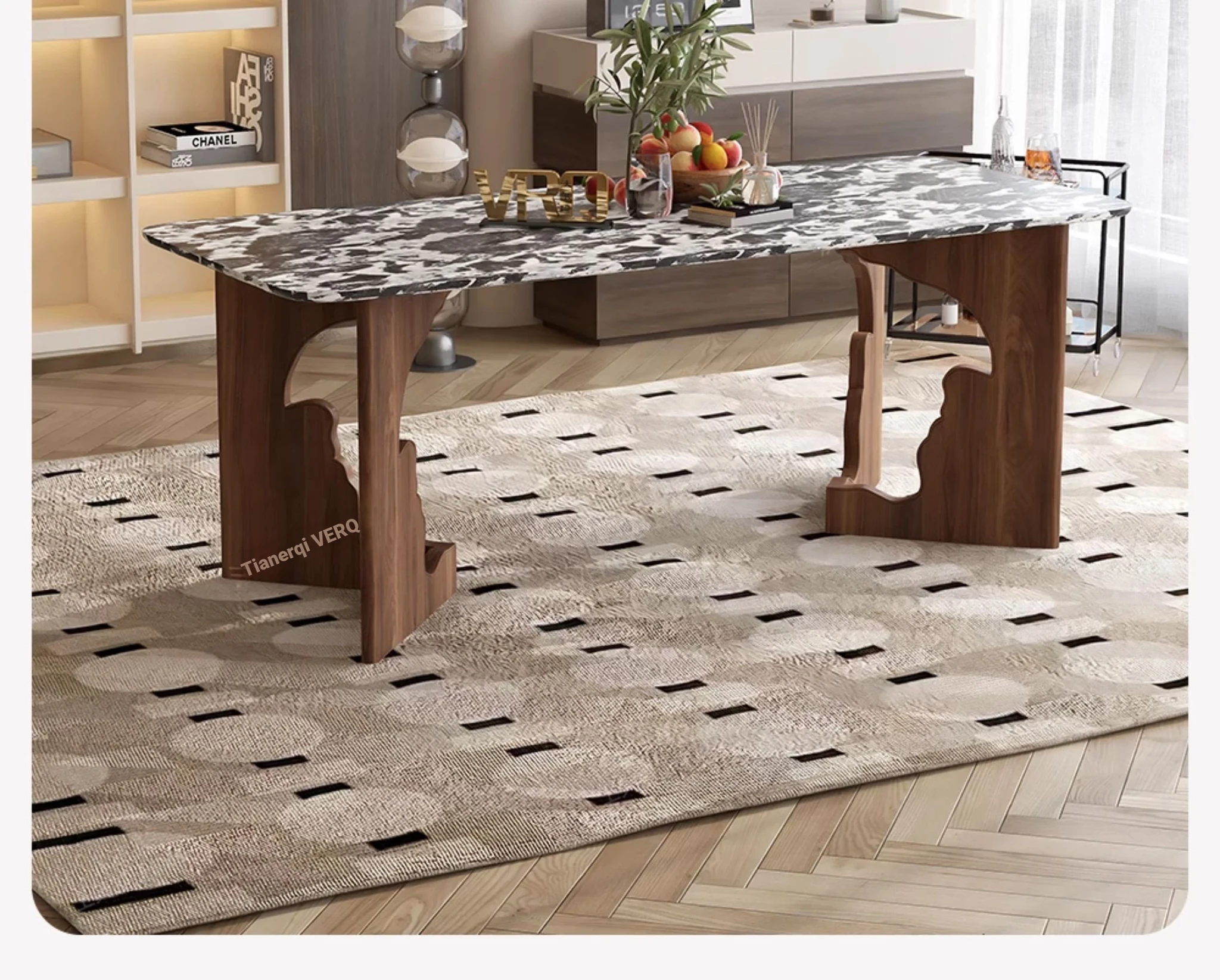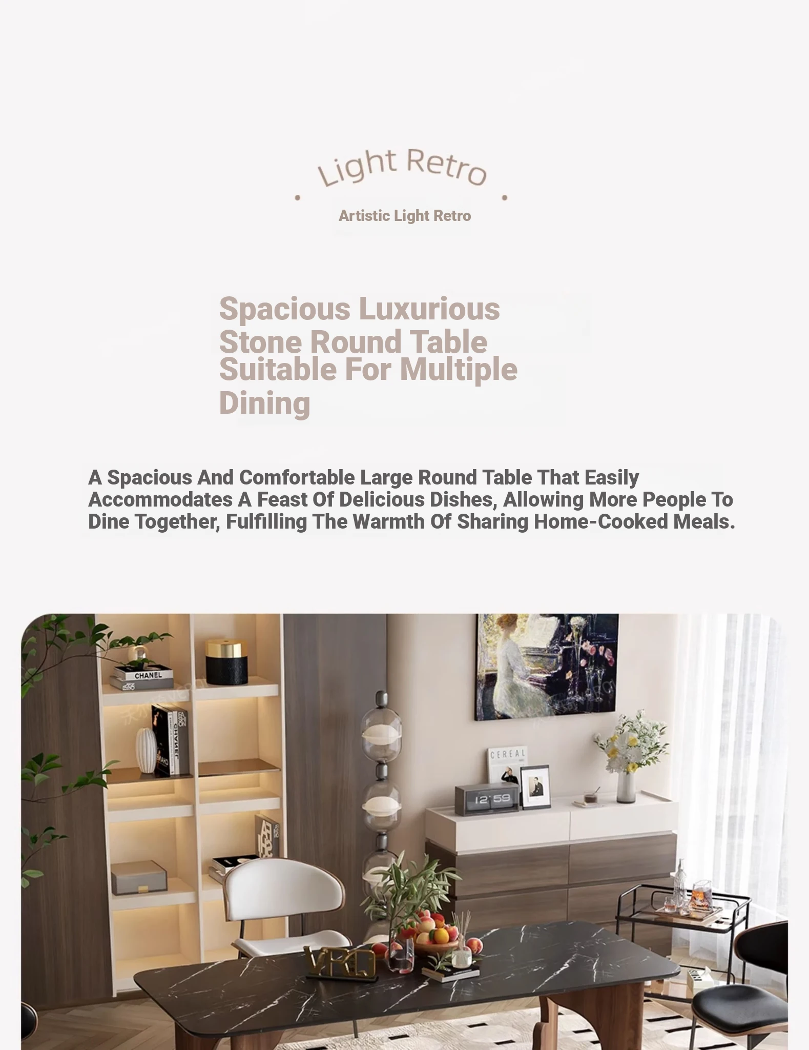 Walqi Luxury Stone Solid Wood Dining Table - Vintage Style Rectangular Dining Table Set with Modern Chairs for Living Room