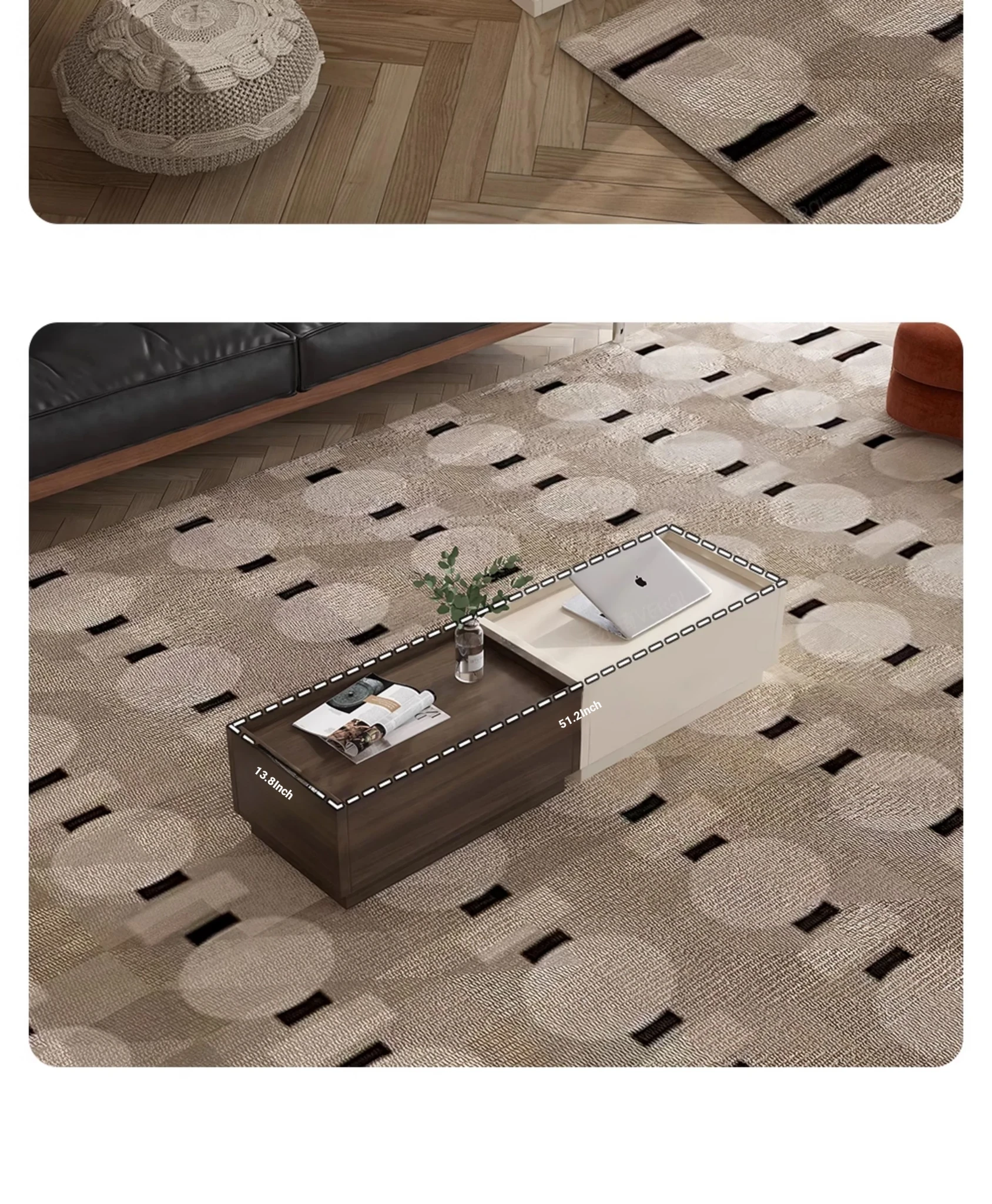 【 13.78in 】Narrow Coffee Table