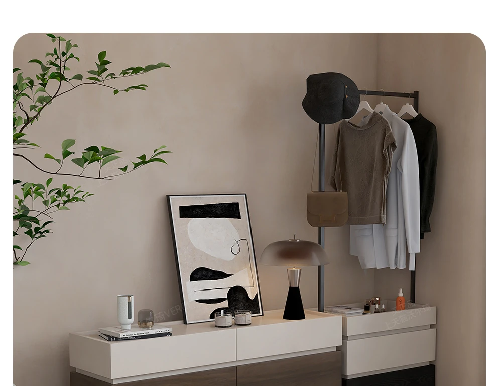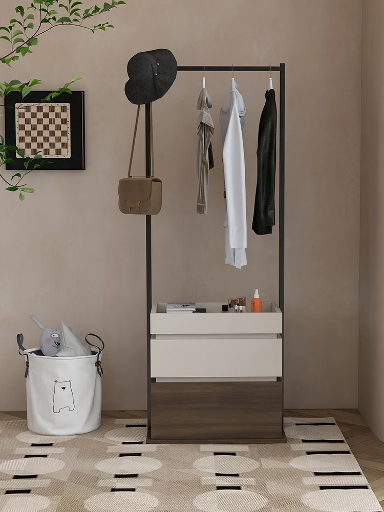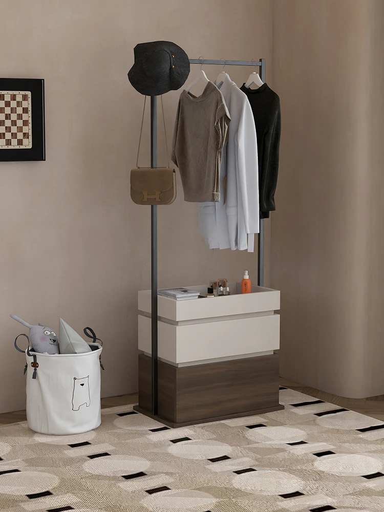Walqi Solid Wood Coat Rack and Nightstand Combo – Minimalist Freestanding Wardrobe Organizer and Bedside Storage Cabinet for Small Bedrooms
