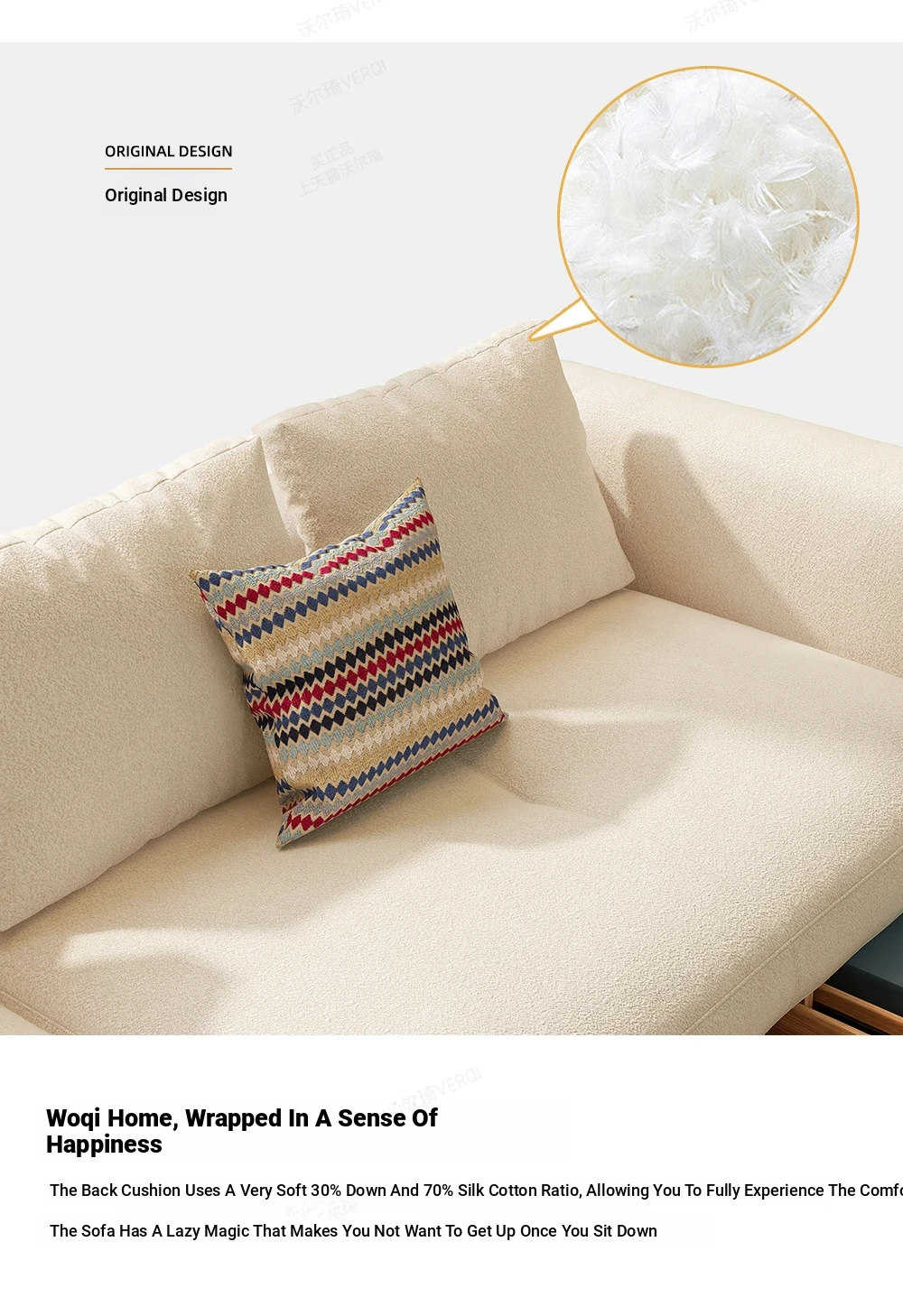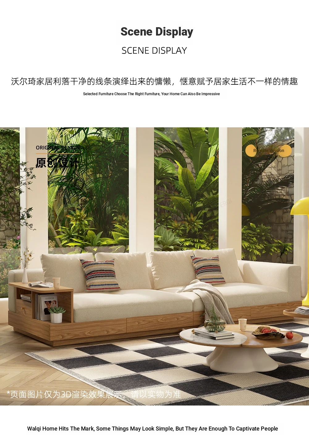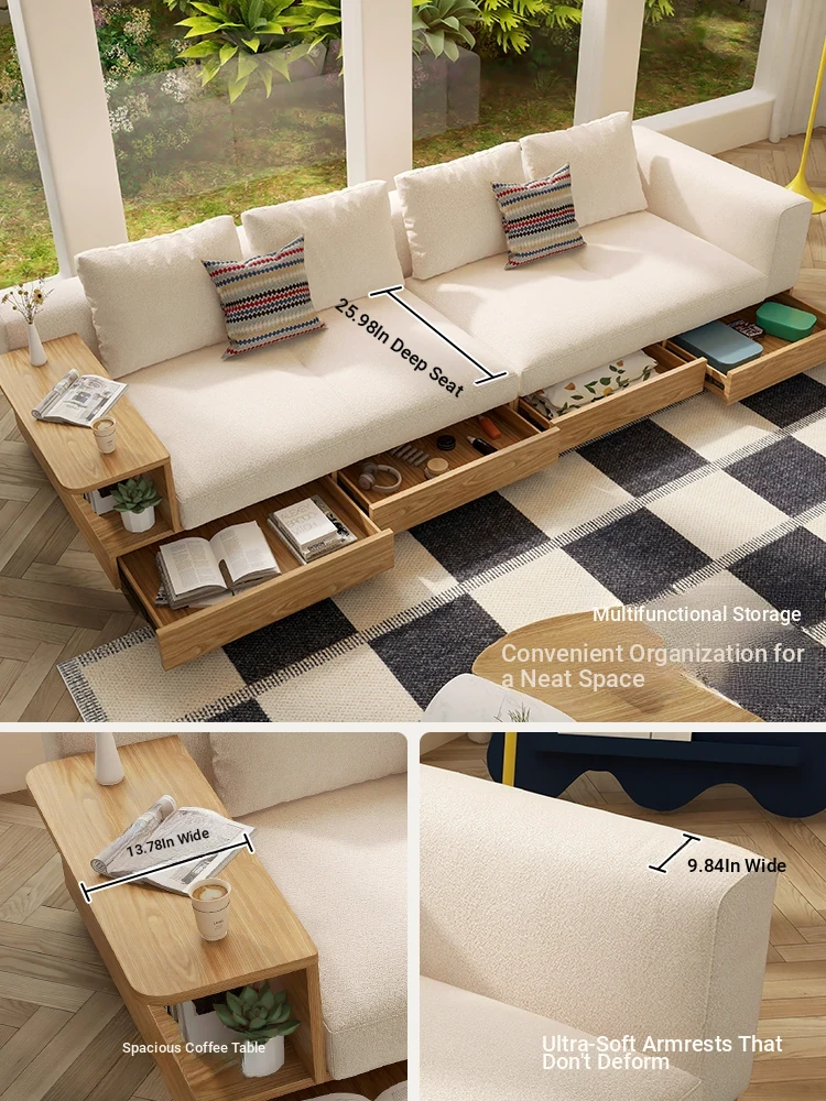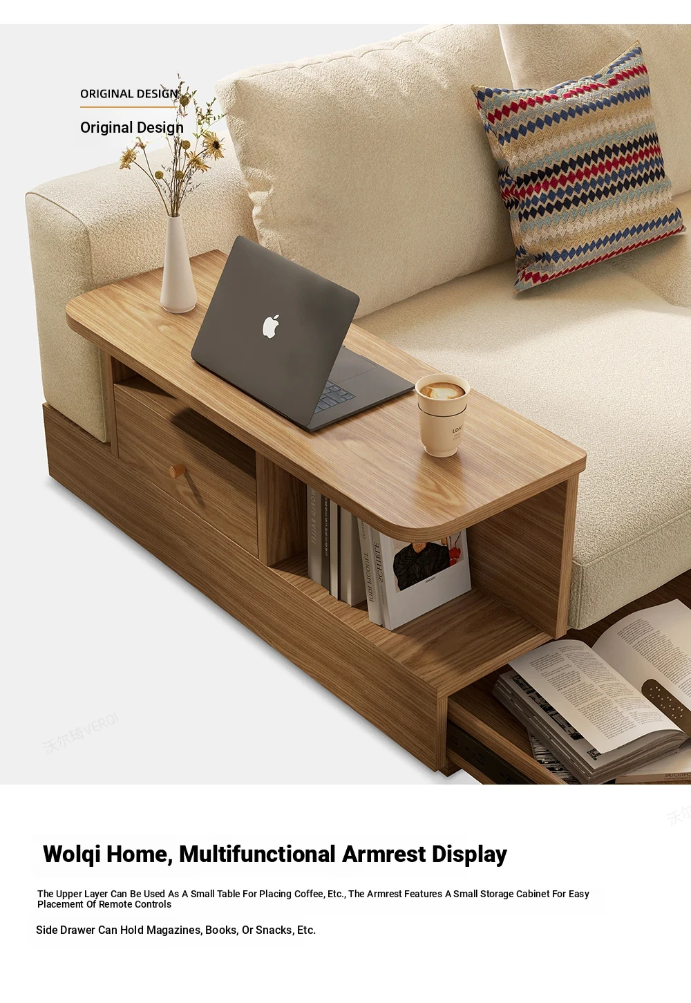 Walqi Solid Wood Konali Fabric Sofa with Drawer Storage - Japanese Style, Perfect for Small Living Rooms, Removable and Washable, Elegant and Functional Design.