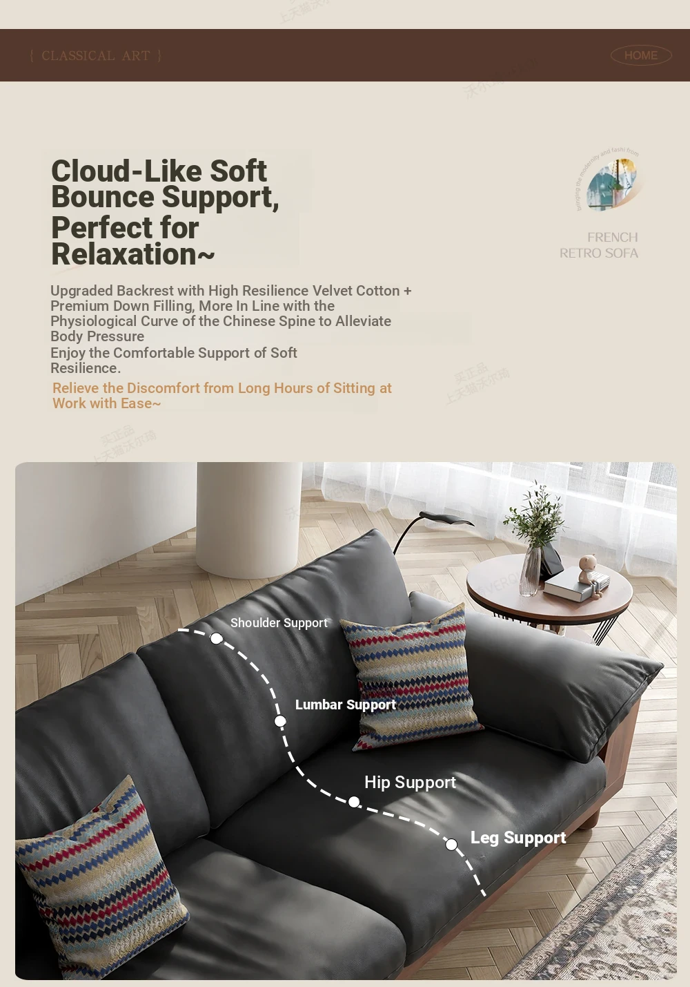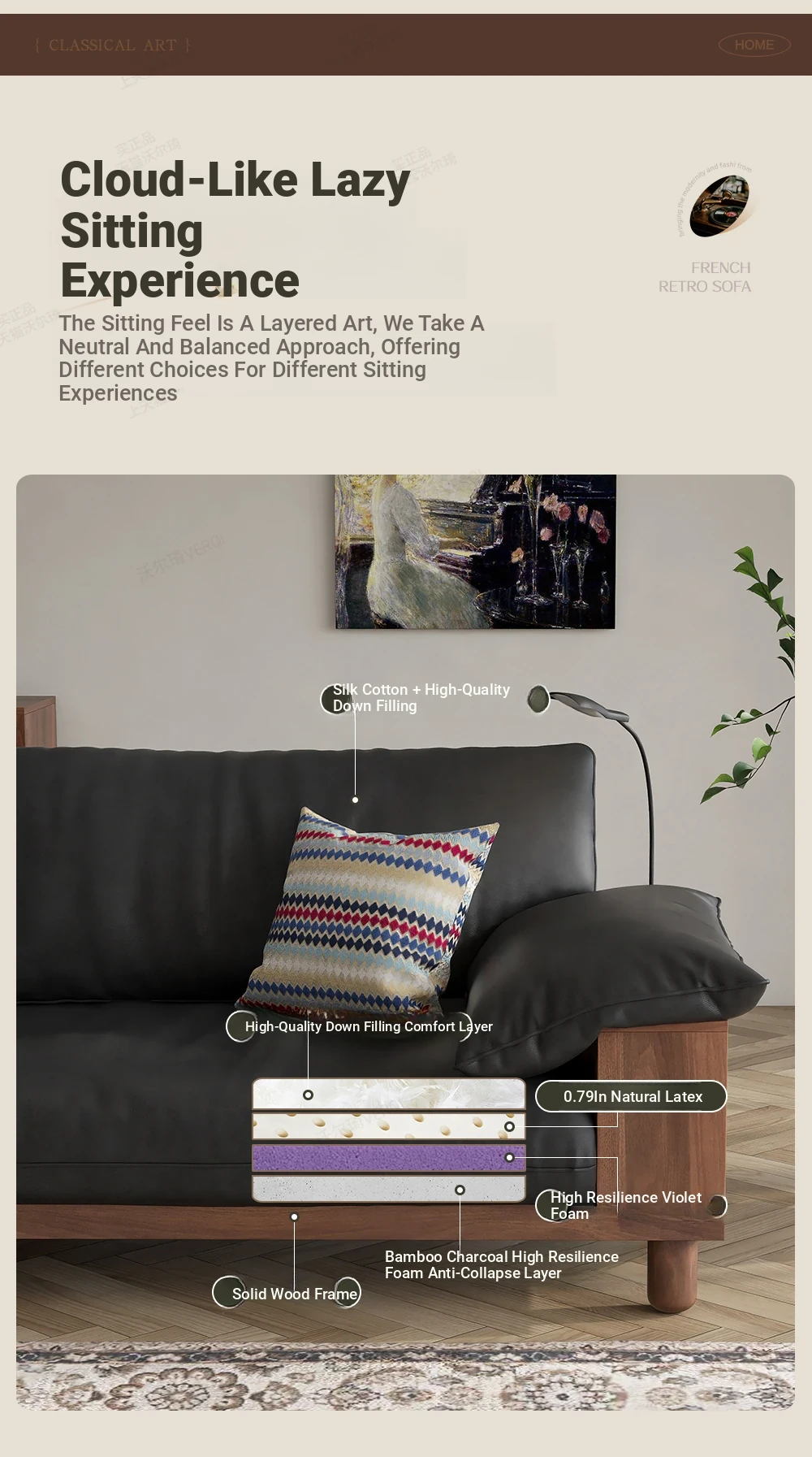 Thickened yellow cowhide [down LaTeX + bamboo charcoal sponge seat bag] walnut color frame