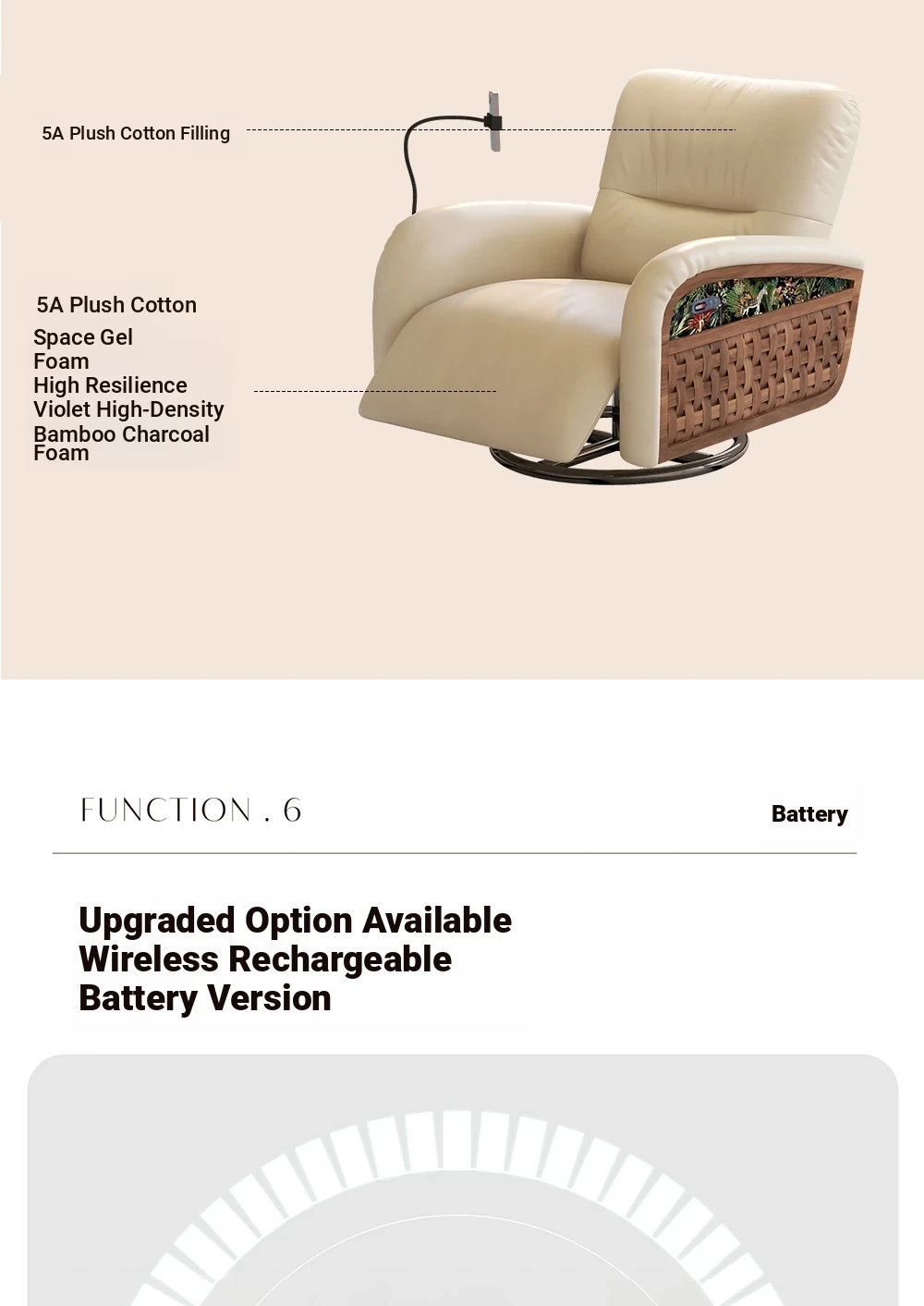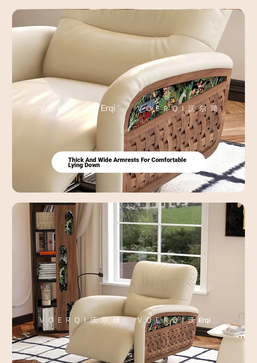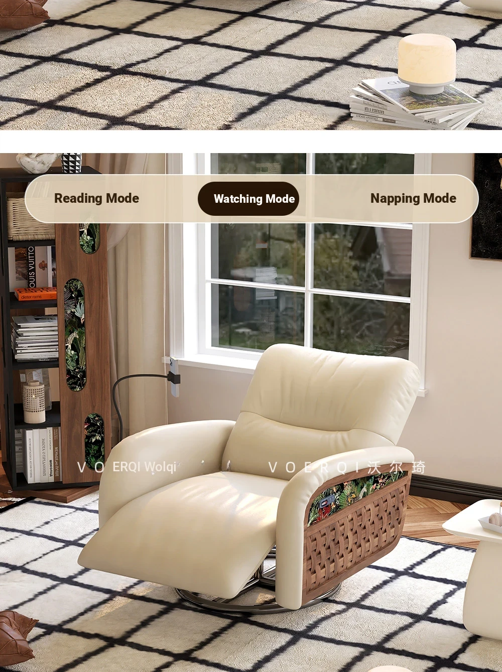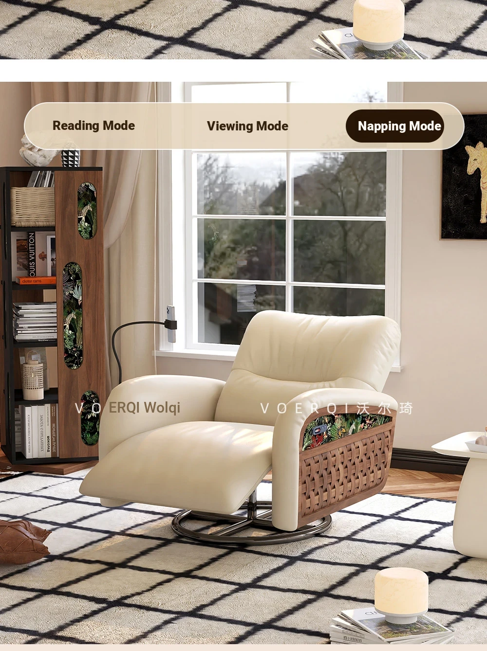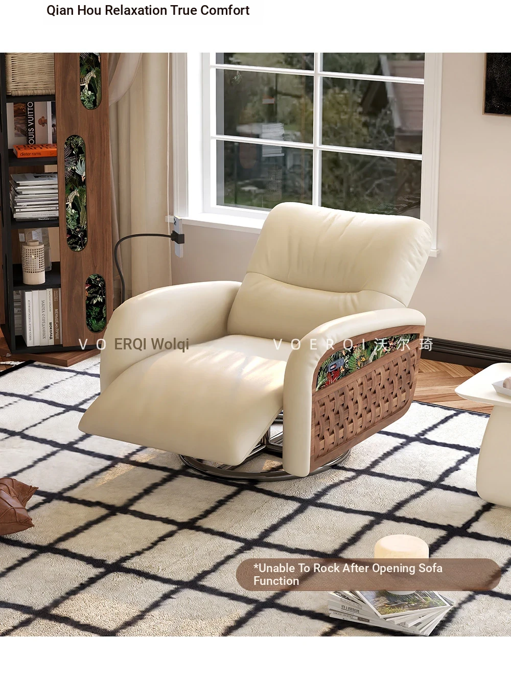 Wolqi Vintage Rattan Single Sofa Chair - Electric Rotating Recliner, Multi-Functional Leisure Rocking Chair for Relaxation and Sleeping