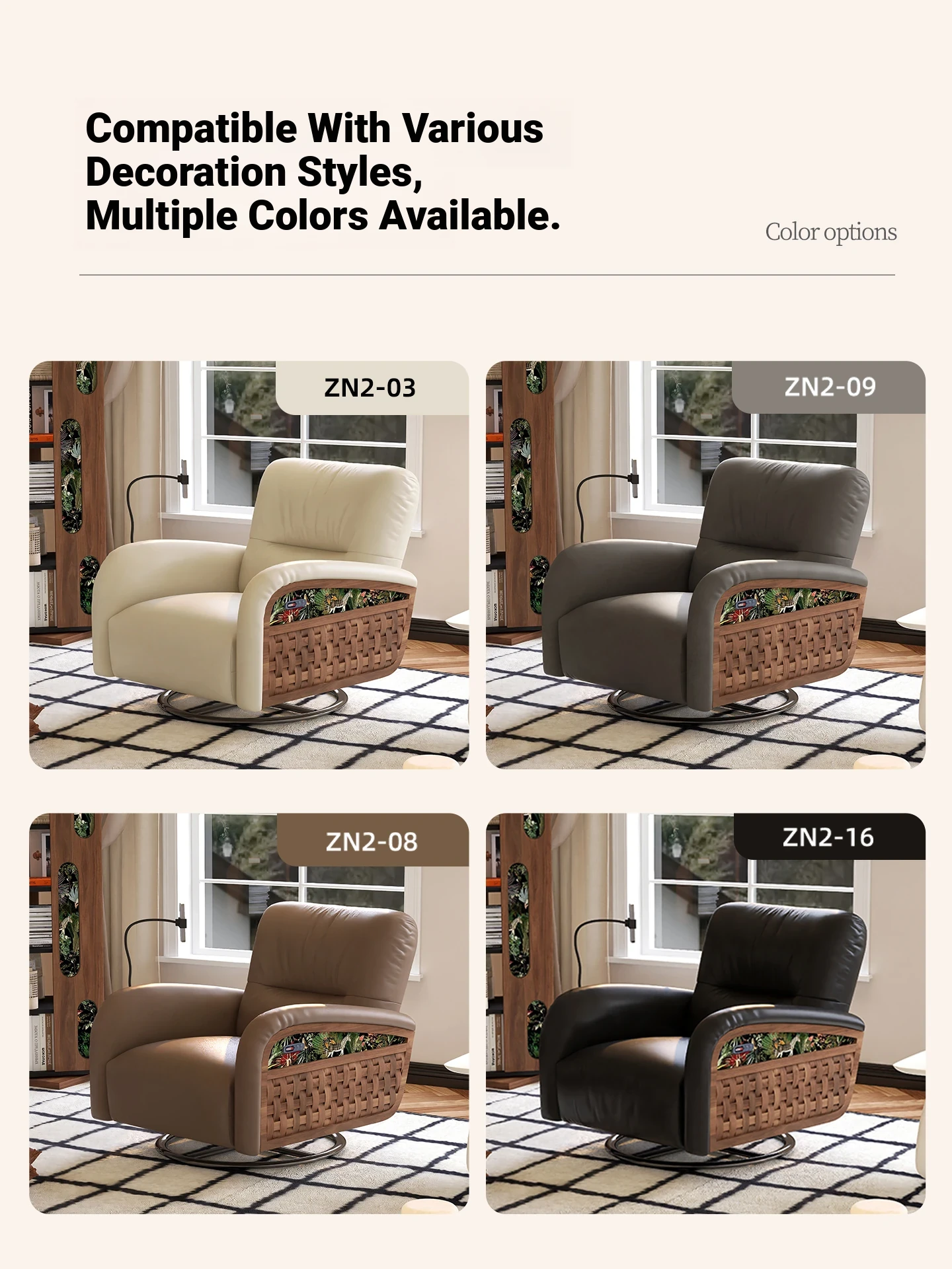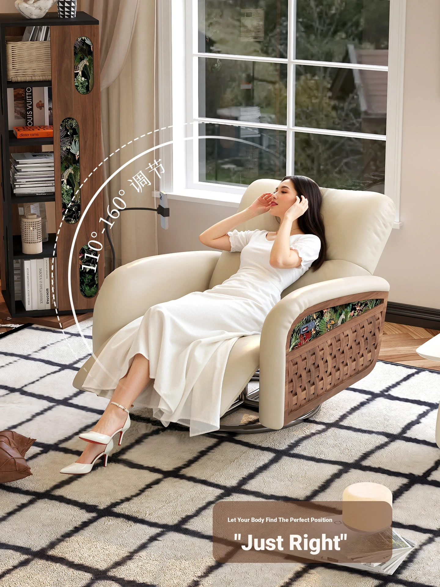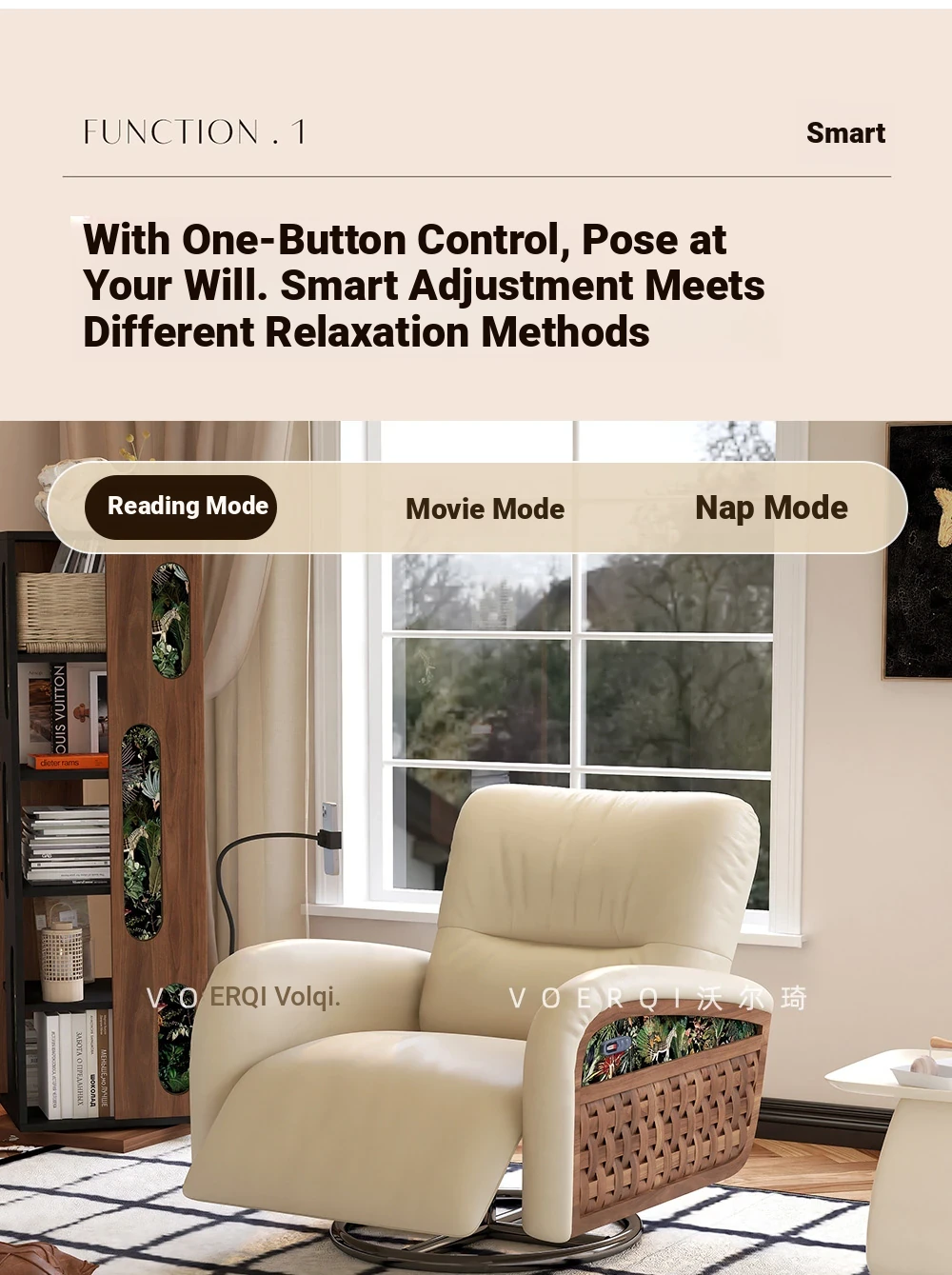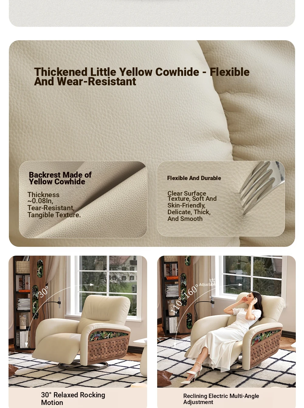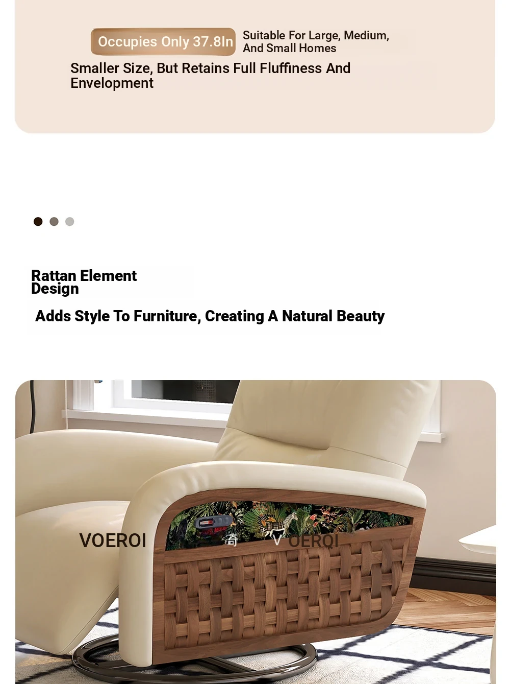 Wolqi Vintage Rattan Single Sofa Chair - Electric Rotating Recliner, Multi-Functional Leisure Rocking Chair for Relaxation and Sleeping