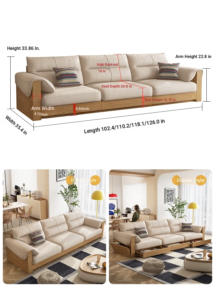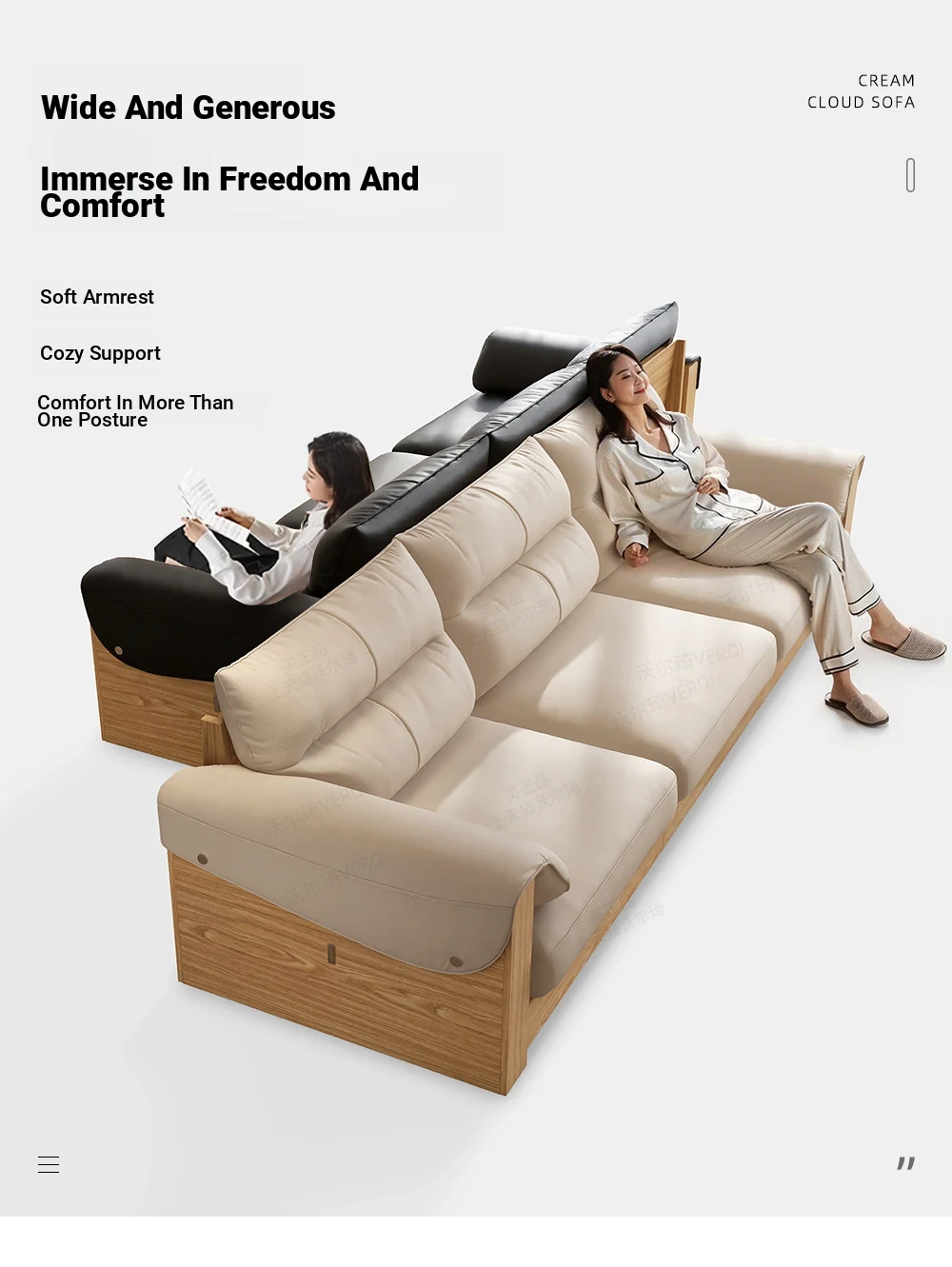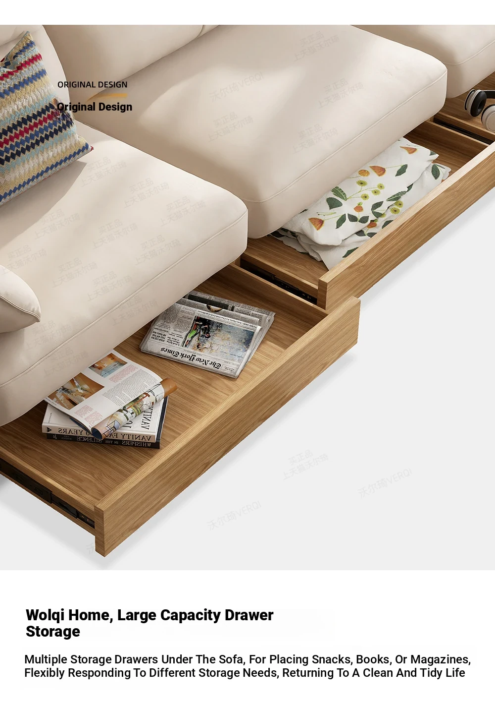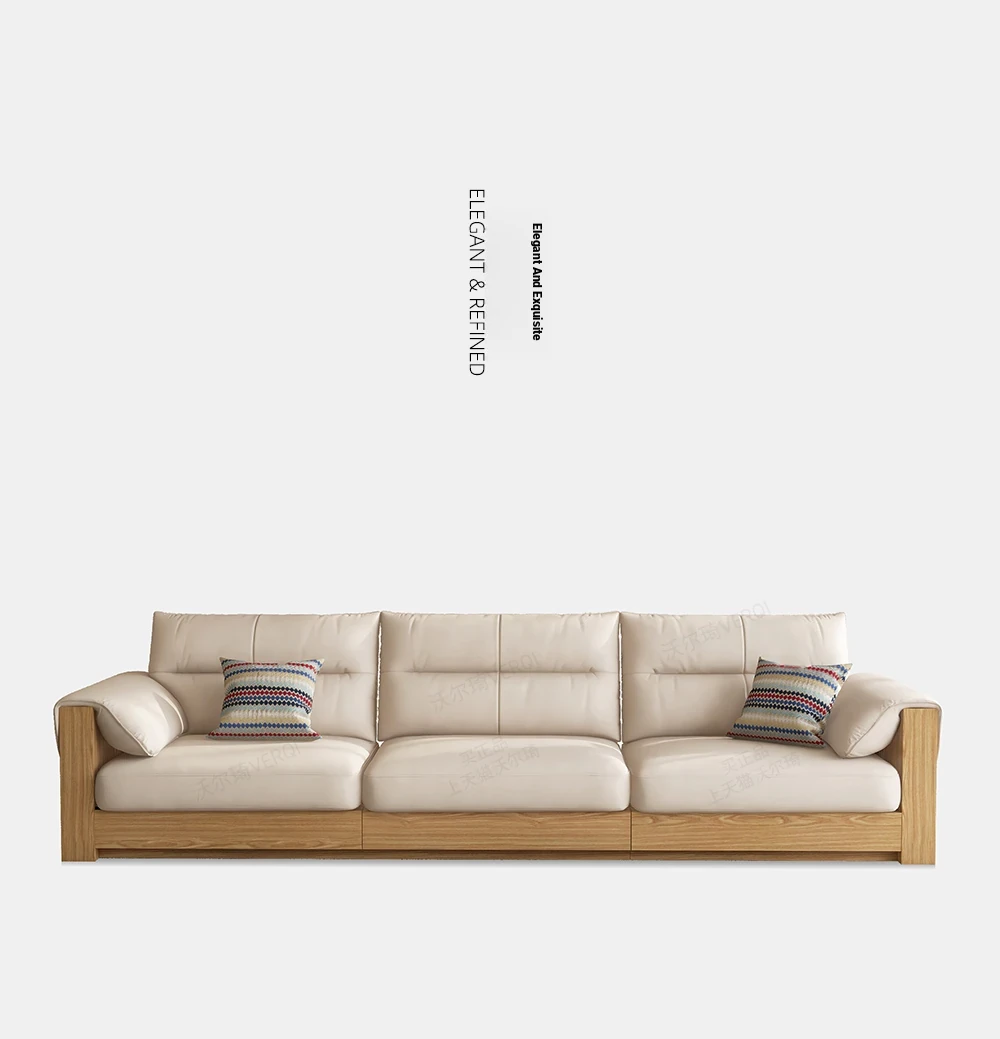 Woqi Japanese Style Solid Wood Sofa for Small Spaces - Elegant Elephant Ear Design with Real Leather and Multi-functional Storage Solutions