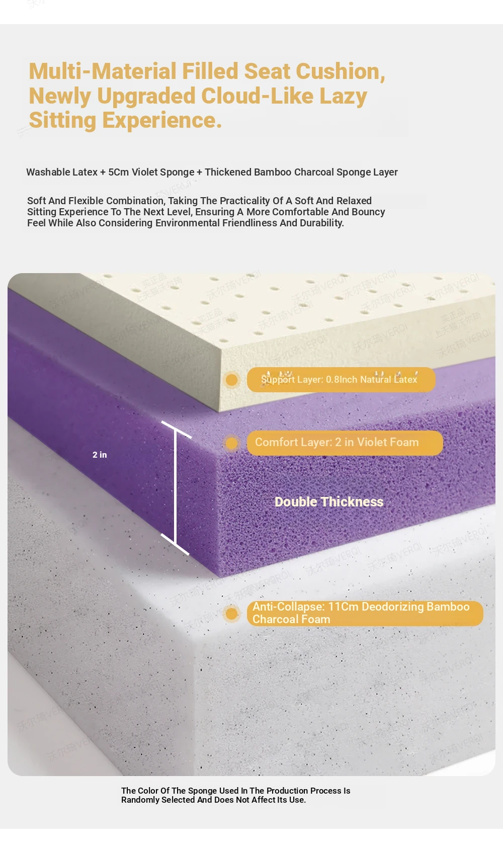 Thickened small yellow cowhide [latex Violet bamboo charcoal sponge seat bag + log frame]]