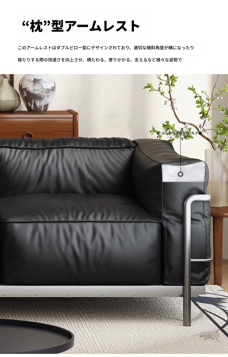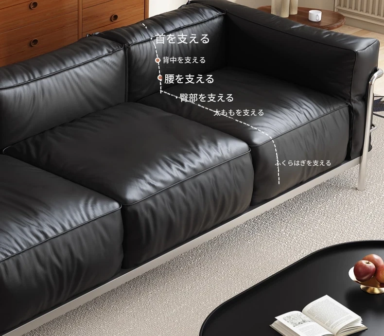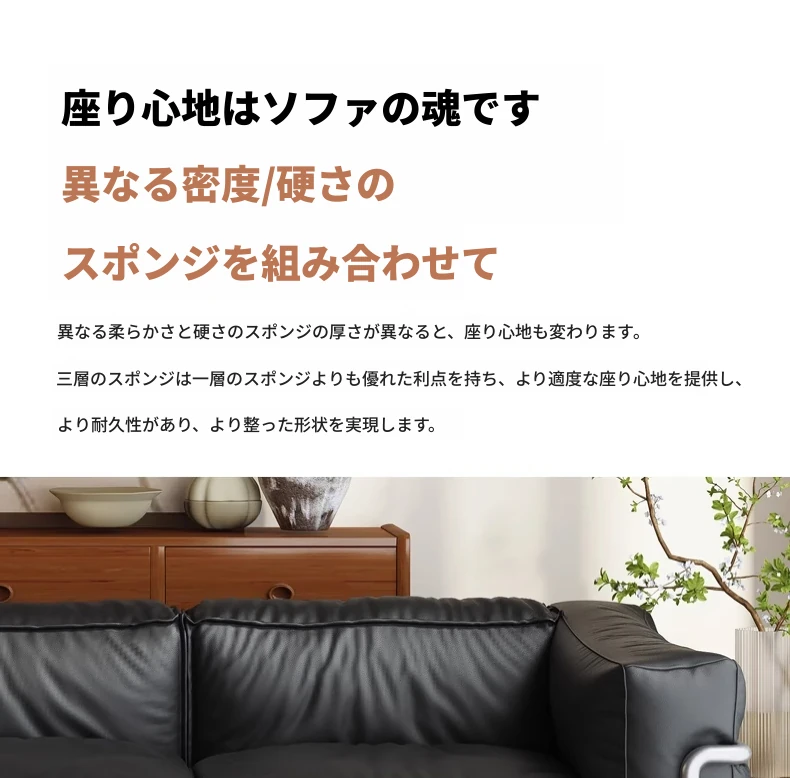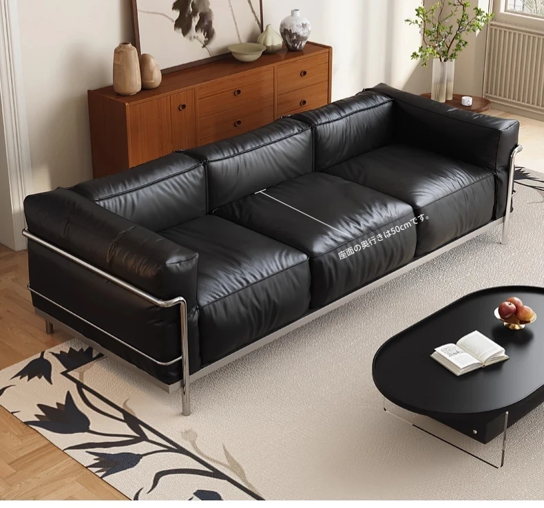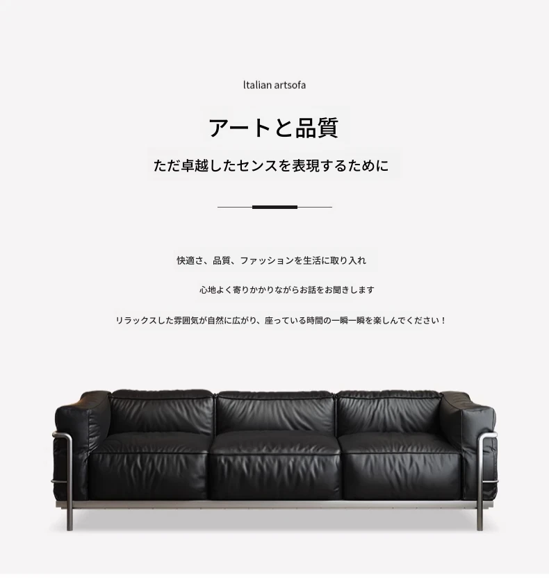 2025年新作!イタリアンミニマリズム本革ソファー - 高級感溢れる直線デザイン、リビングルームや小型住宅にぴったりなラグジュアリーソファ!