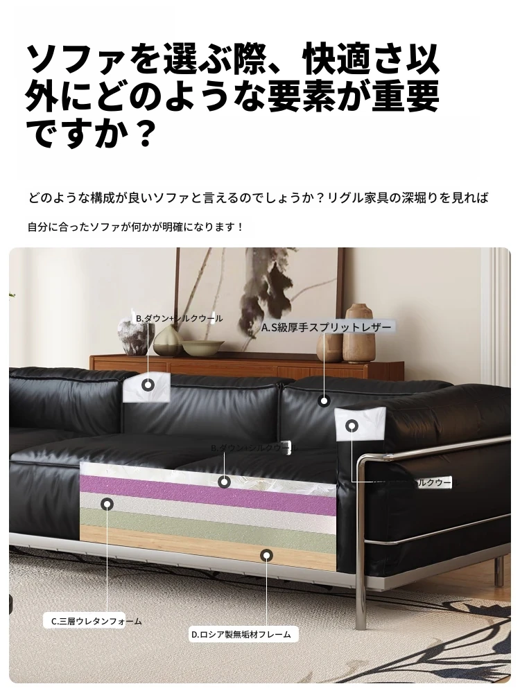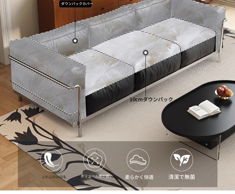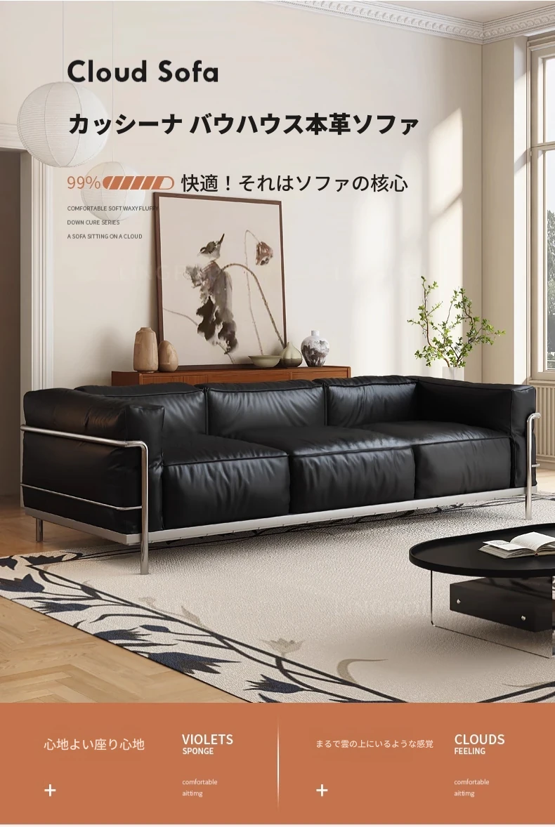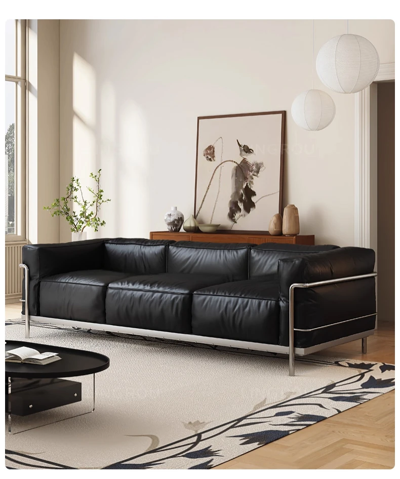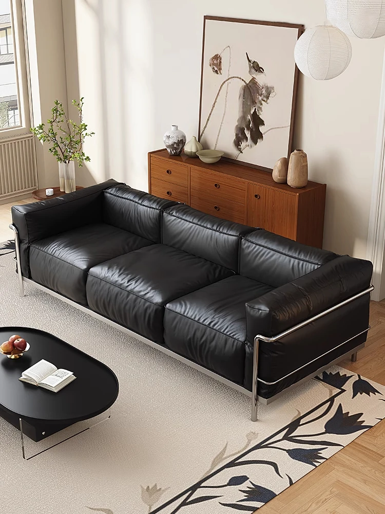 2025年新作!イタリアンミニマリズム本革ソファー - 高級感溢れる直線デザイン、リビングルームや小型住宅にぴったりなラグジュアリーソファ!