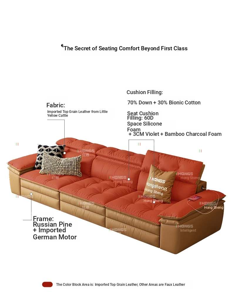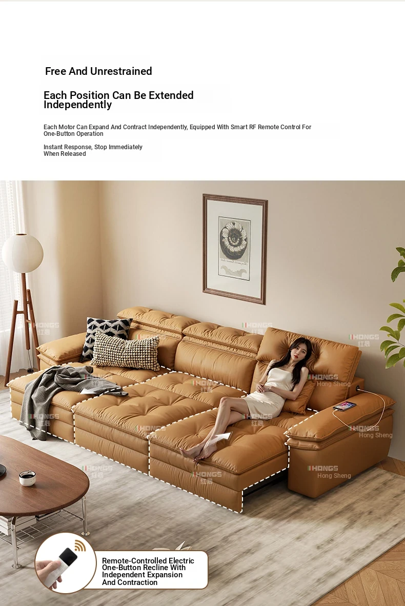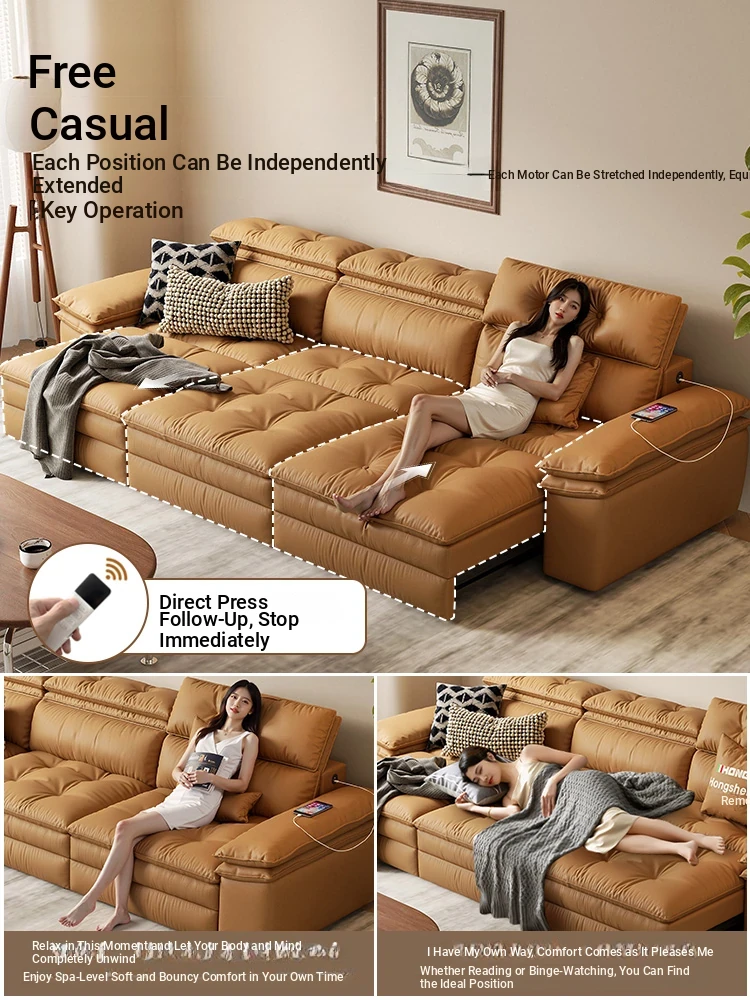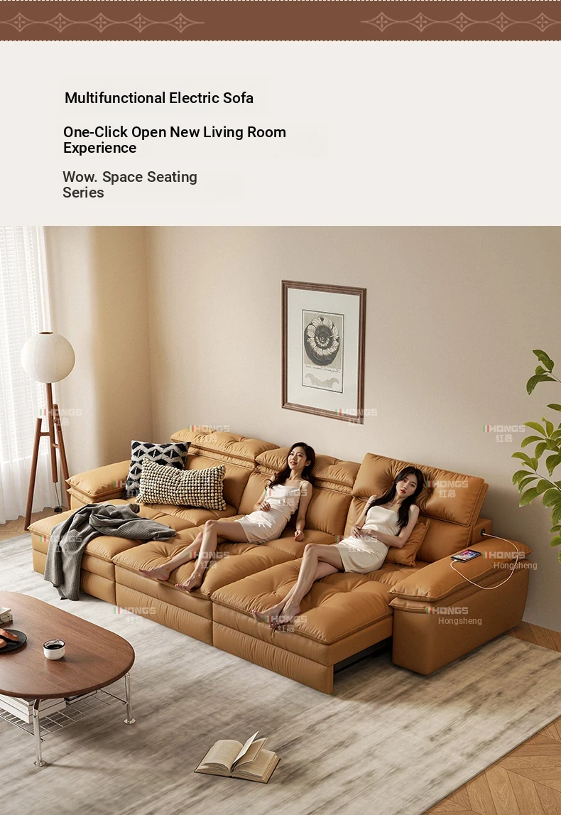 2025 New Vintage Genuine Leather Sofa - Luxury Multi-Functional Electric Reclining Sofa for Living Room, Comfortable 3-Seater Design