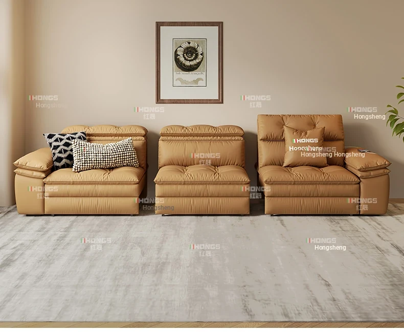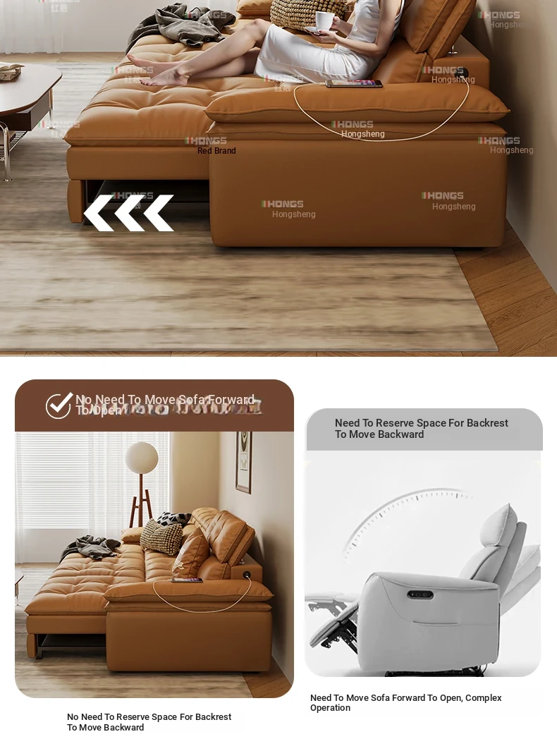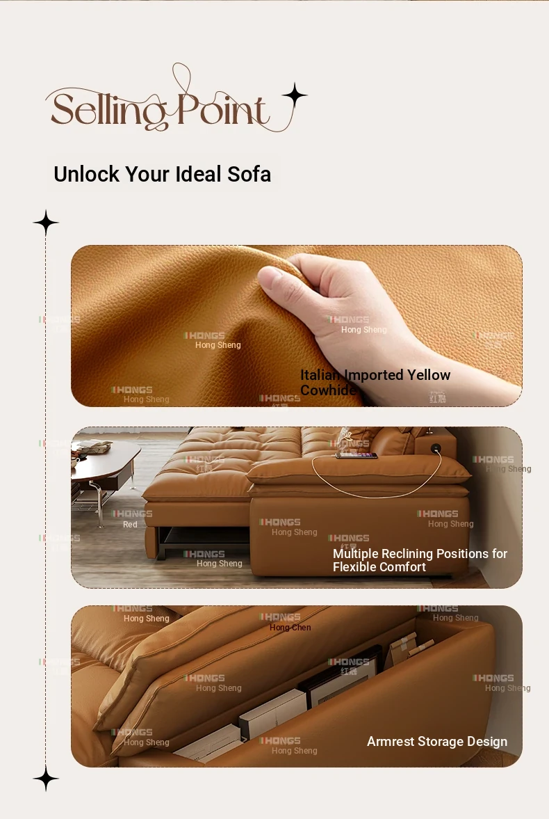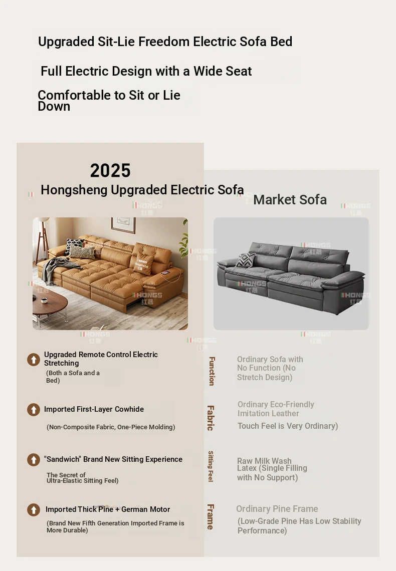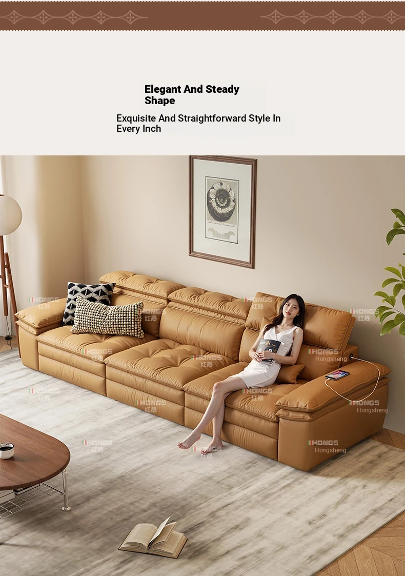 2025 New Vintage Genuine Leather Sofa - Luxury Multi-Functional Electric Reclining Sofa for Living Room, Comfortable 3-Seater Design