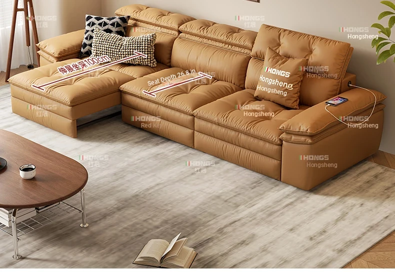 [Fully wrapped Import top layer small yellow cowhide] 82.68in double electric