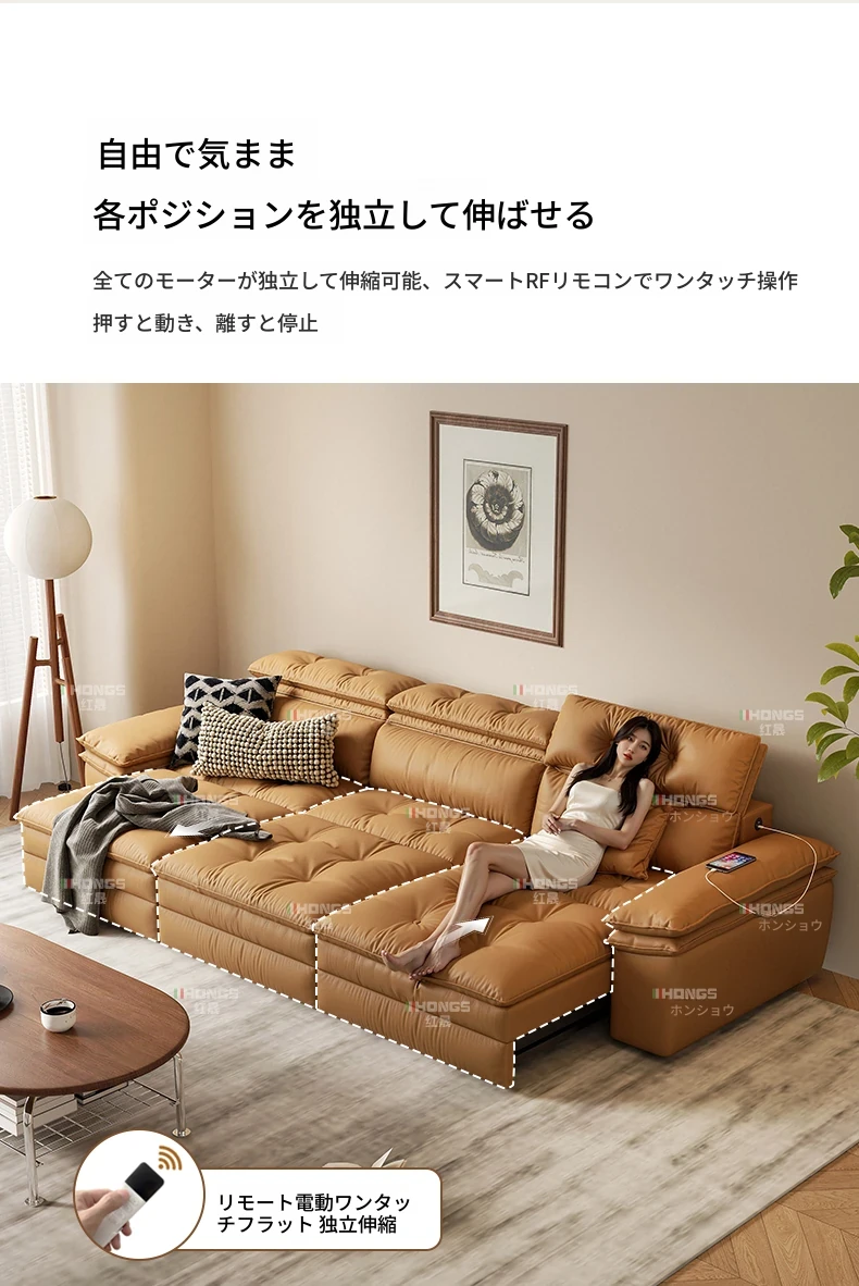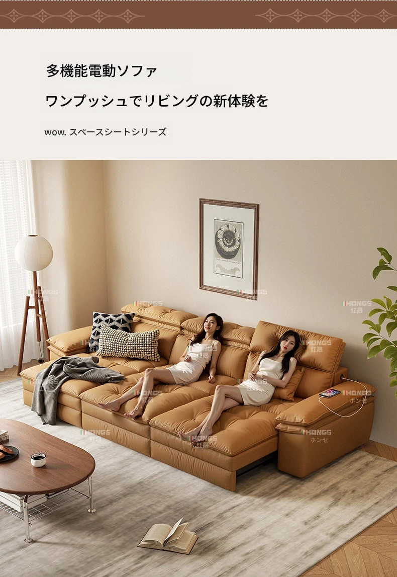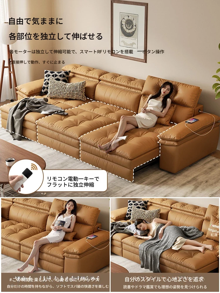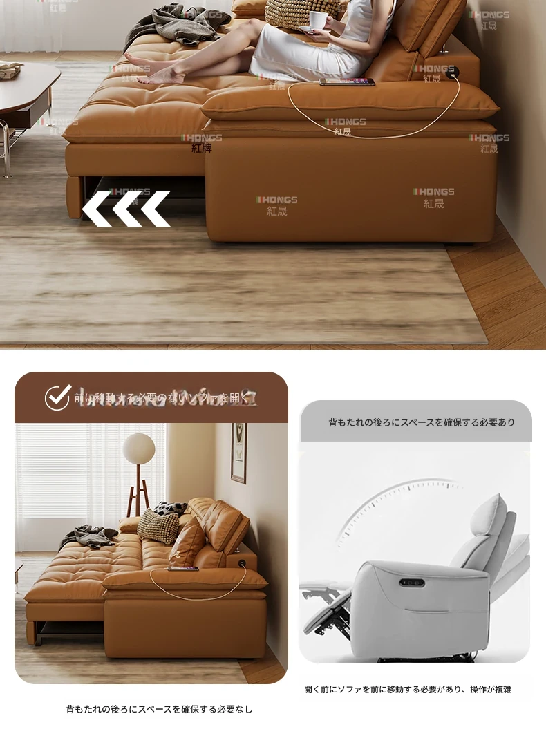 2025年新作!中古風真皮ソファー - 高級感溢れるリビングにぴったりな多機能伸縮電動ソファー(三人掛け)!快適さとスタイルを兼ね備えた、あなたの理想の空間を演出します。
