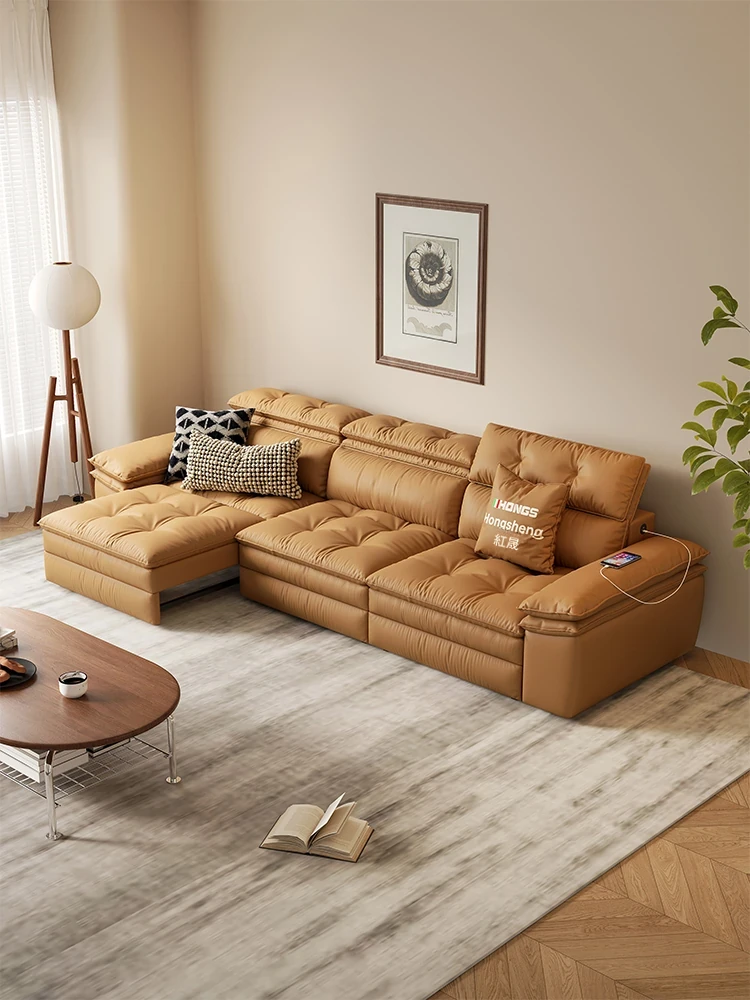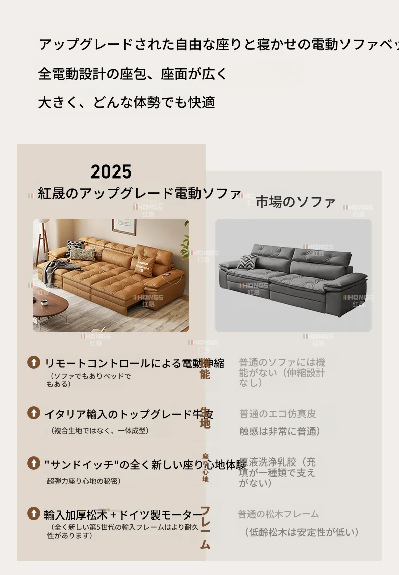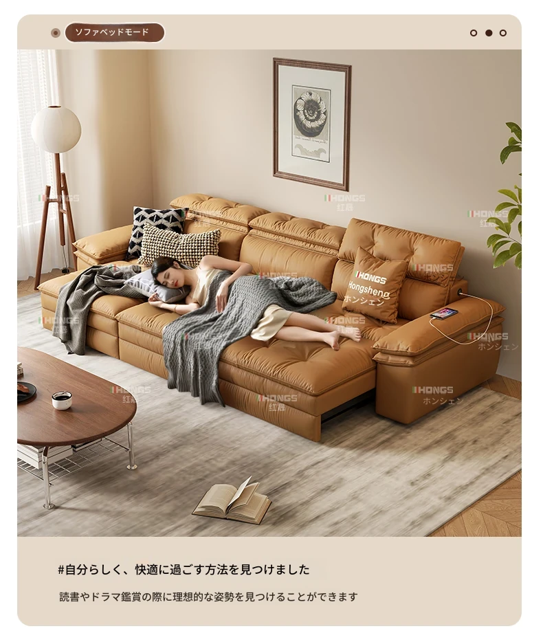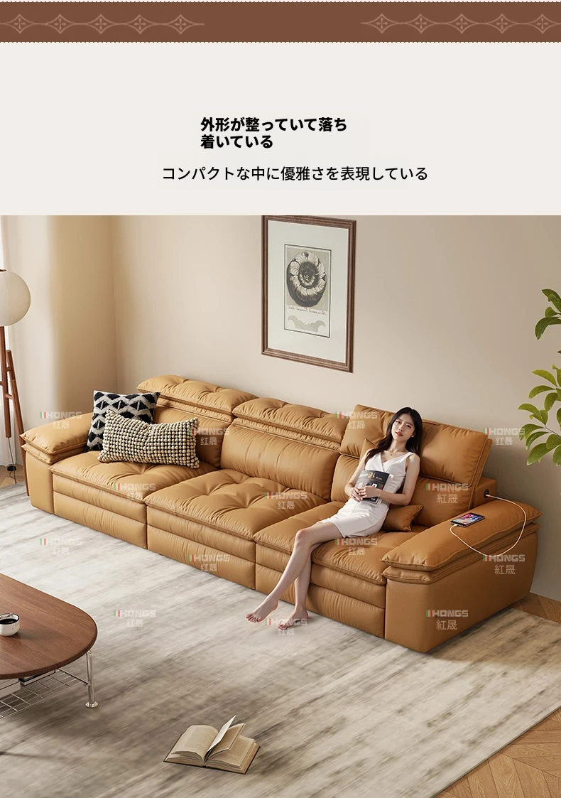 2025年新作!中古風真皮ソファー - 高級感溢れるリビングにぴったりな多機能伸縮電動ソファー(三人掛け)!快適さとスタイルを兼ね備えた、あなたの理想の空間を演出します。