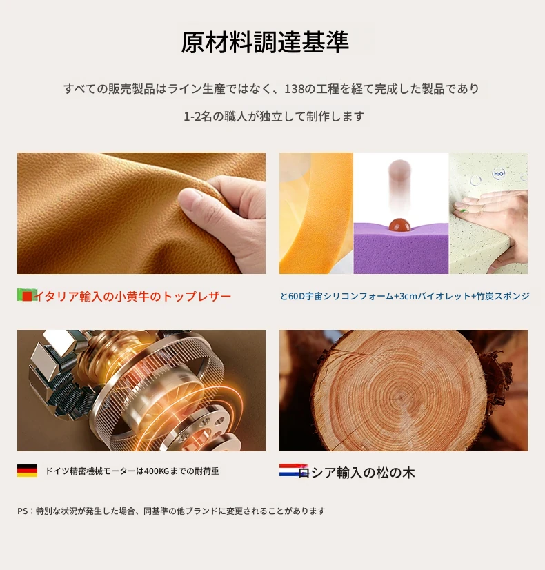 【接触面は輸入の一等牛革】2.10m ダブル電動