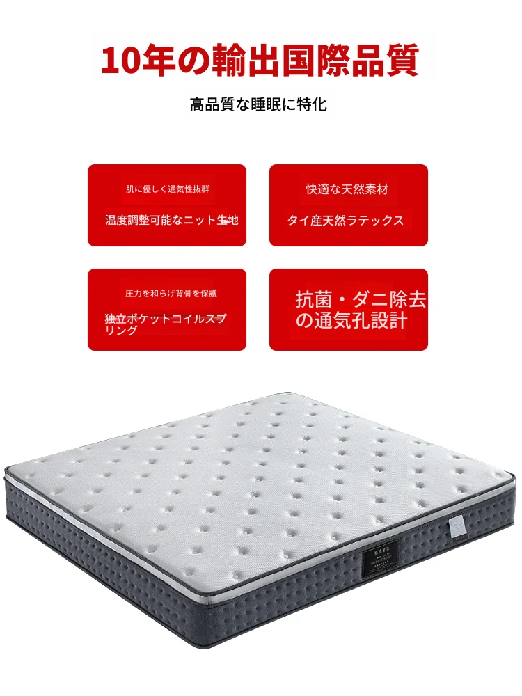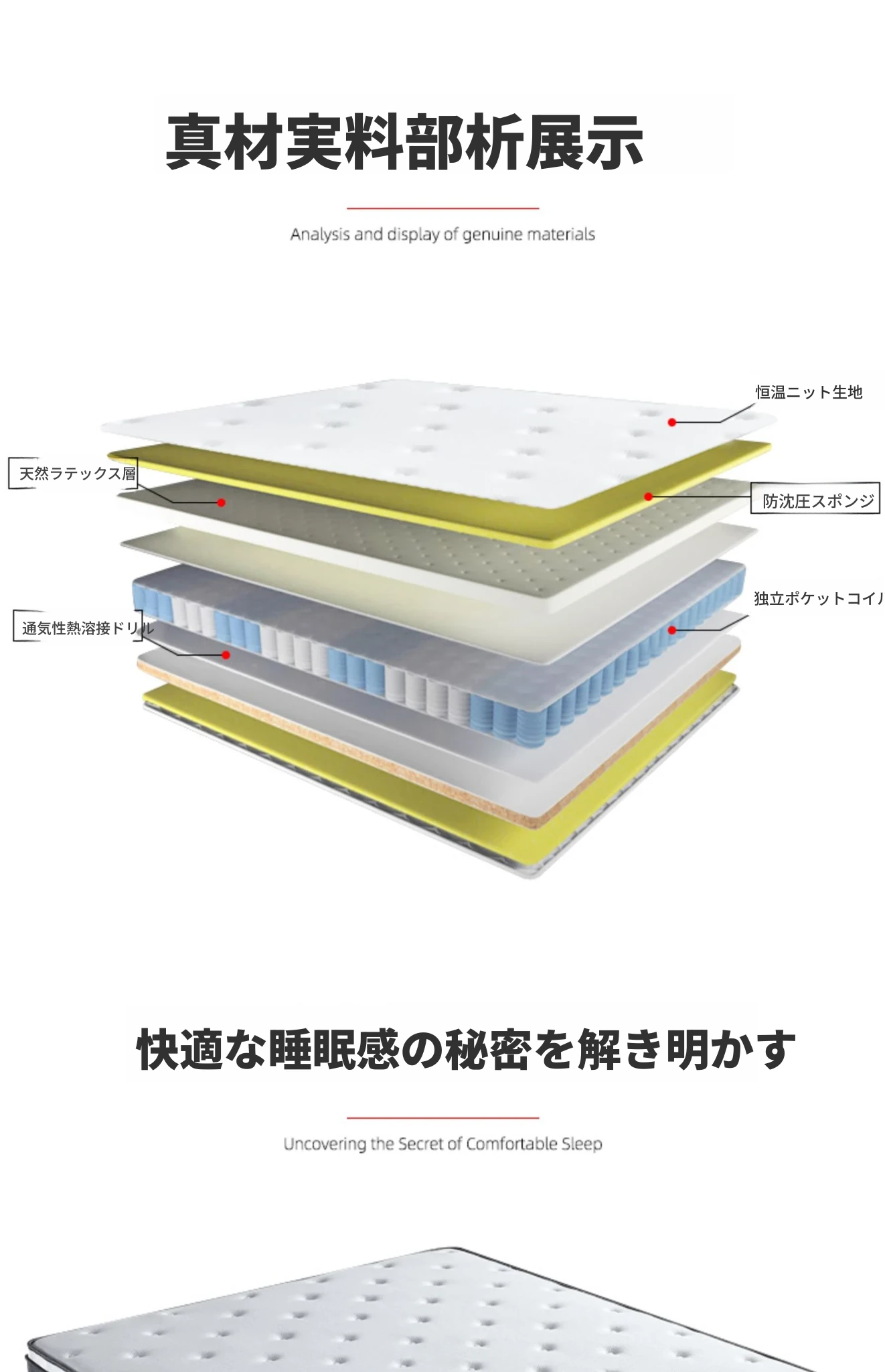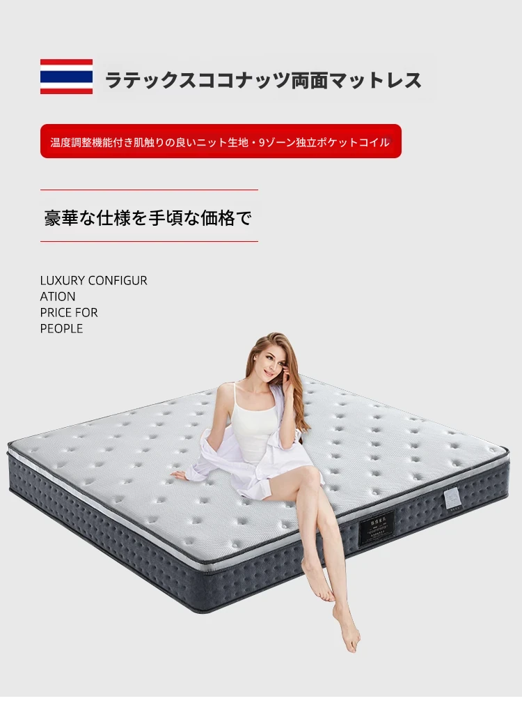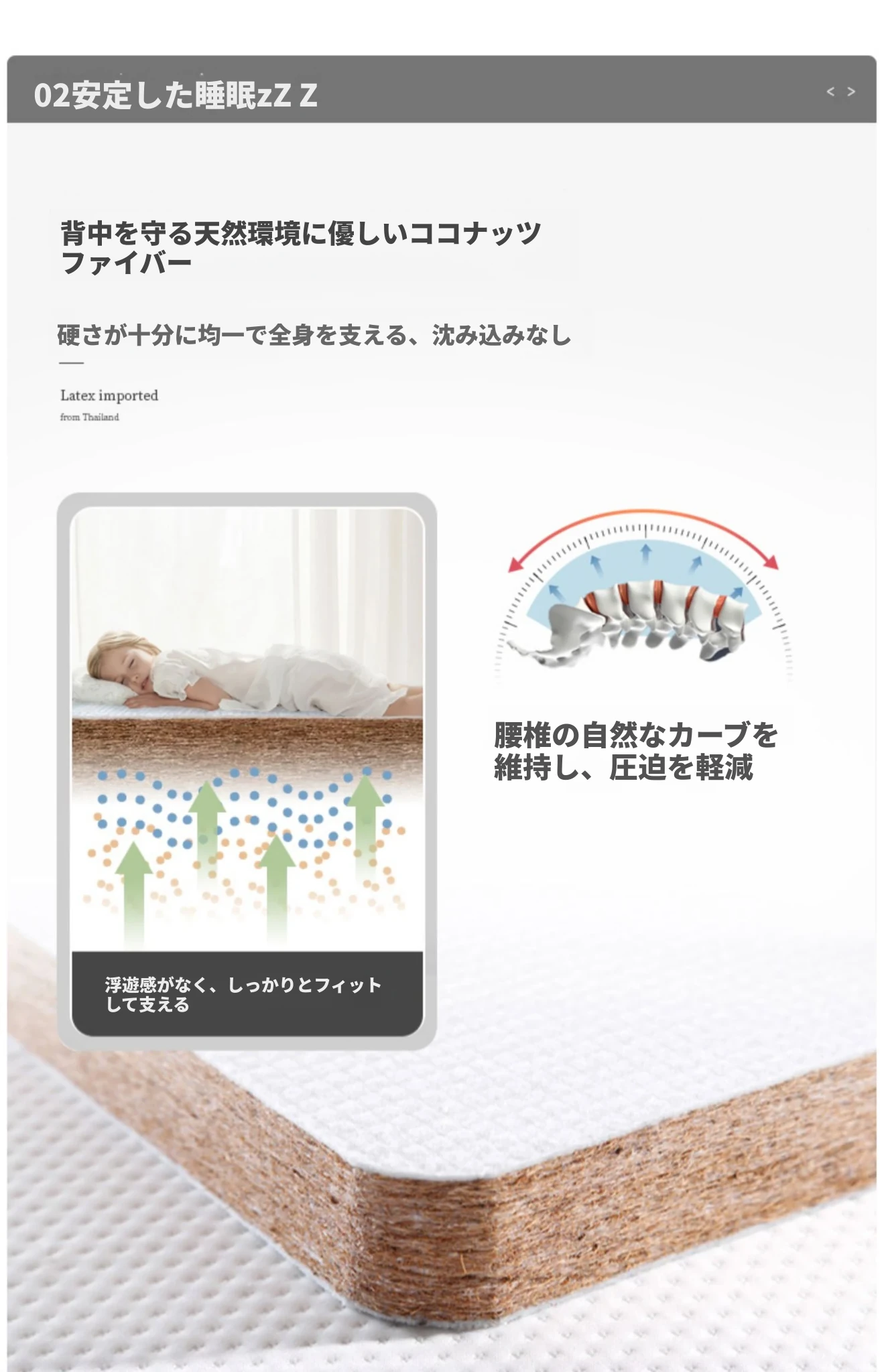 七つ星級天然ラテックス&ココナッツマットレス - 一面は柔らかく、もう一面は硬め、温度調整可能なニット生地使用で快適な眠りをサポート!