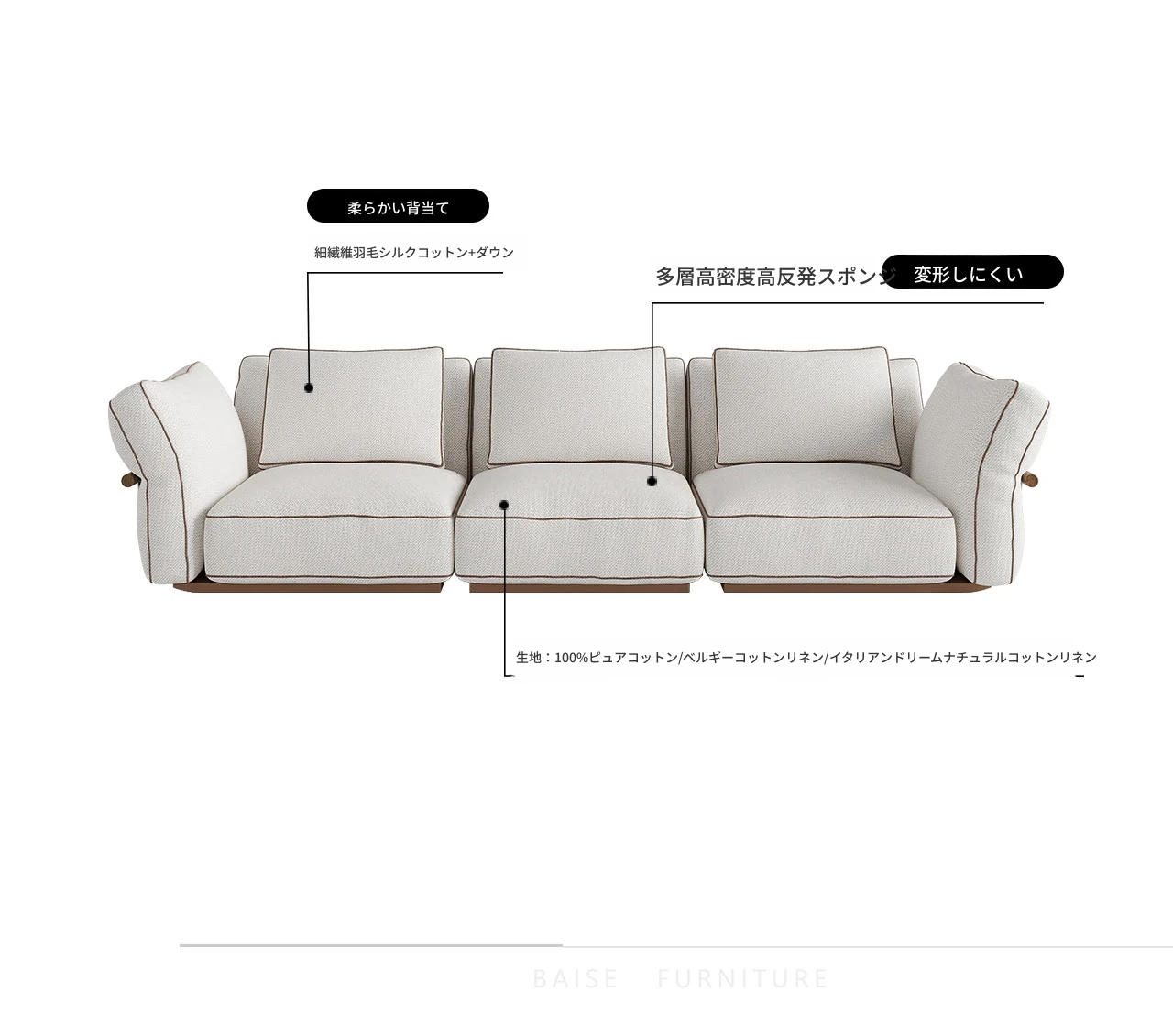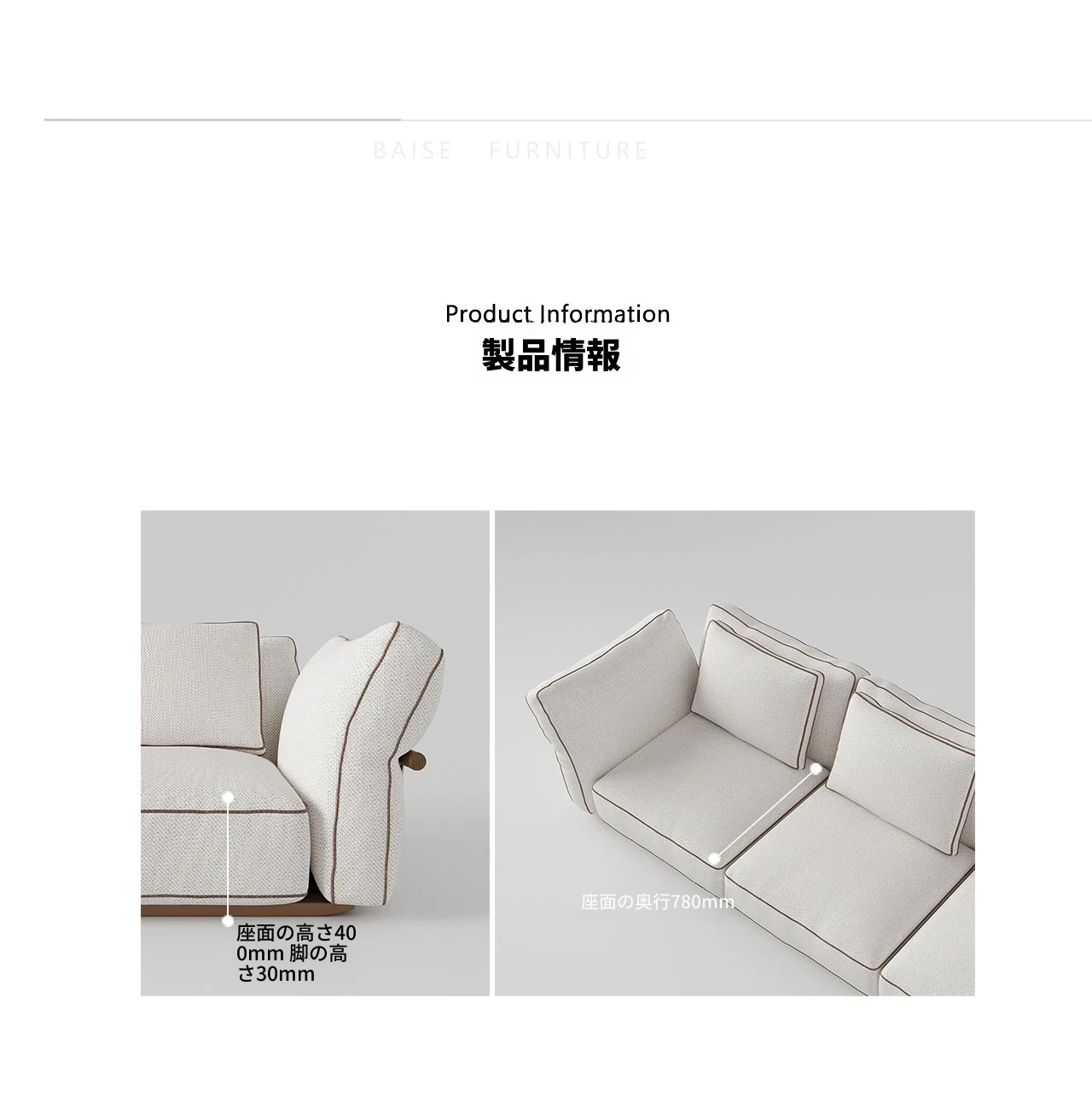 バイセ 侘寂スタイルの布製ソファ モダンでシンプルなデザイン イタリアンミニマリズムのリビング用ソファ 家庭にぴったりの快適な布製ソファ