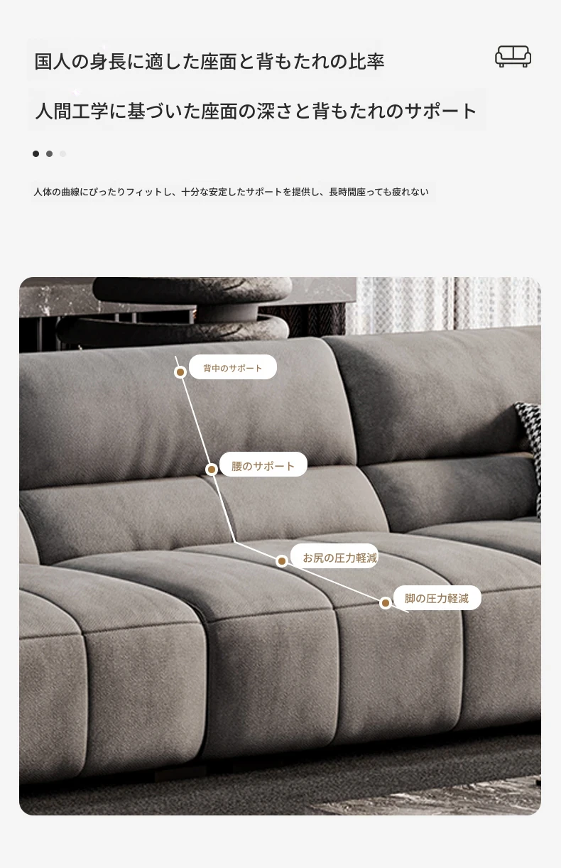 バクスター小象の耳が可愛い布製ソファ|リビングにぴったりなピアノキー風デザイン|イタリアンミニマルスタイルで軽やかなラグジュアリーを演出|優雅なコーナーソファで、くつろぎのひとときをお楽しみください!