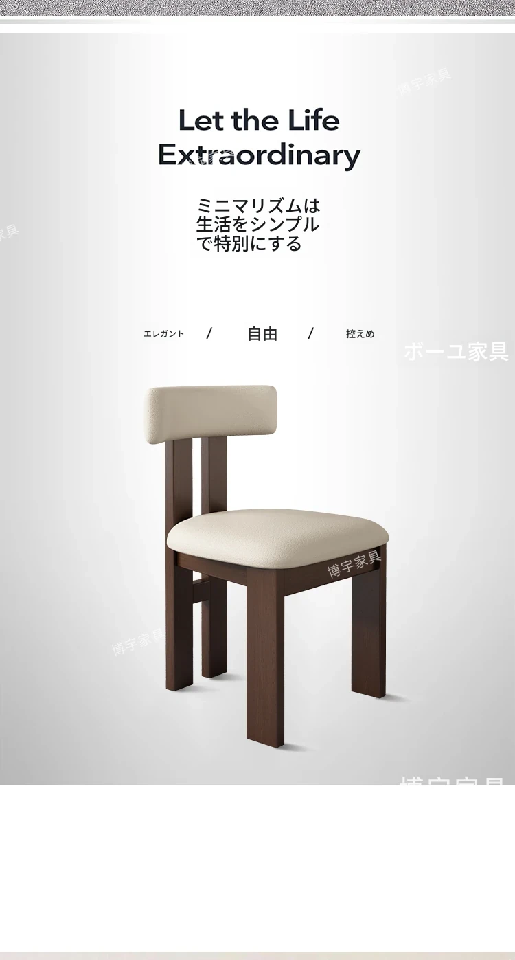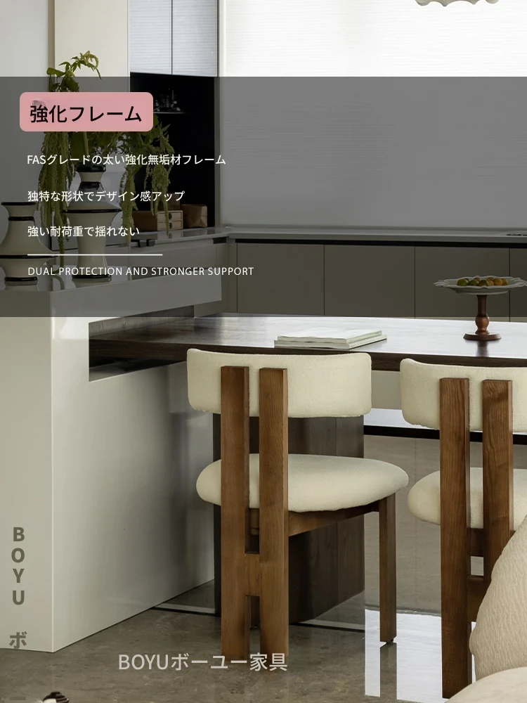 博宇家具の北欧スタイル、ホワイトアッシュ無垢材製の人気キャットグラブチェア。シンプルで洗練された侘寂風のデザイン、居心地の良い背もたれ付き。家庭にぴったりのモダンなダイニングチェアをお楽しみください!
