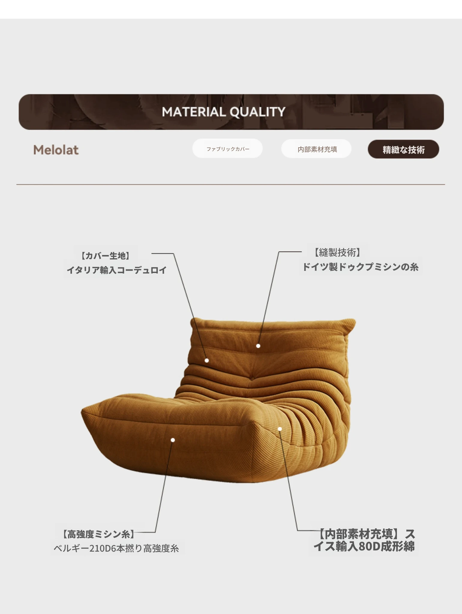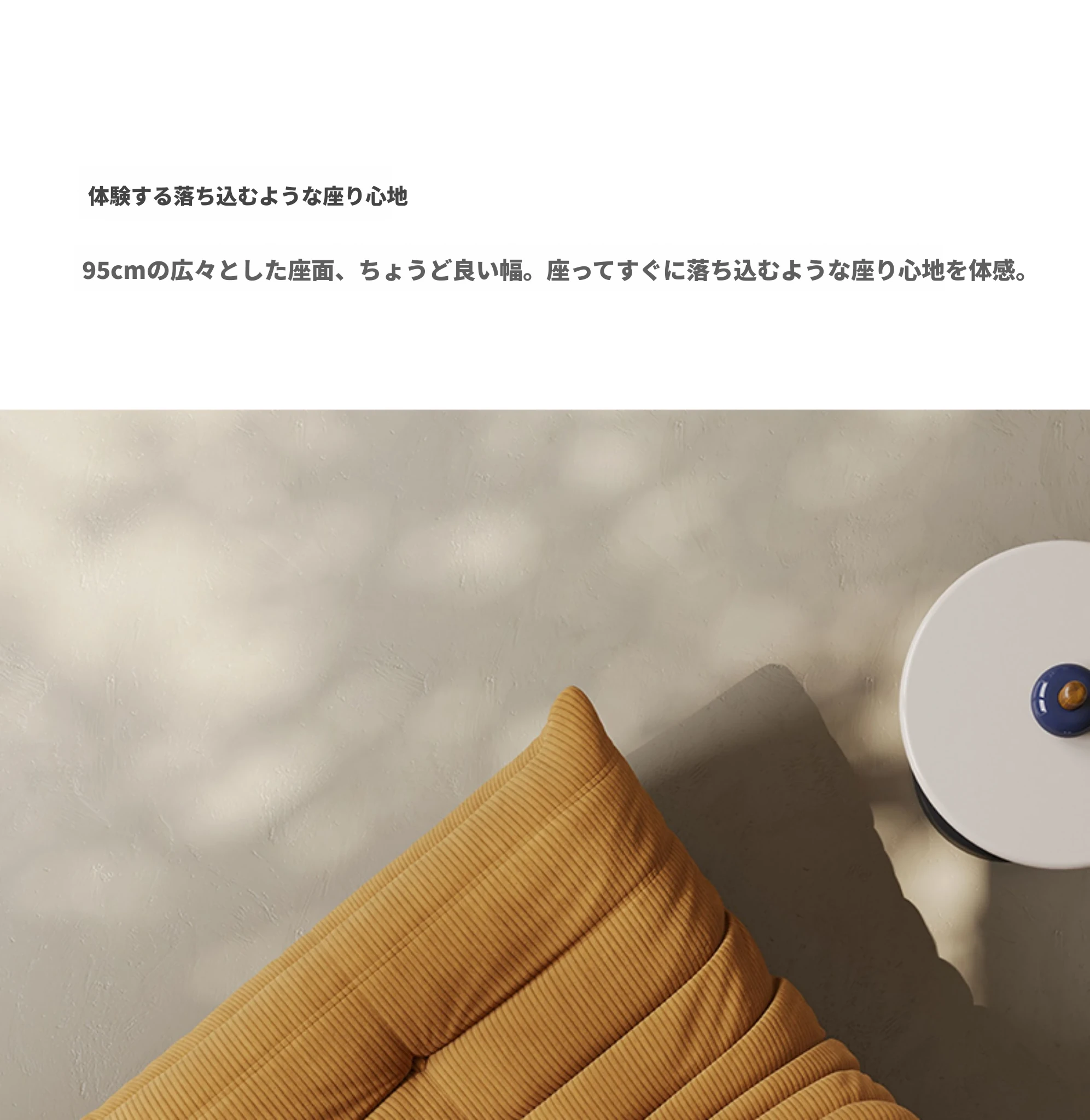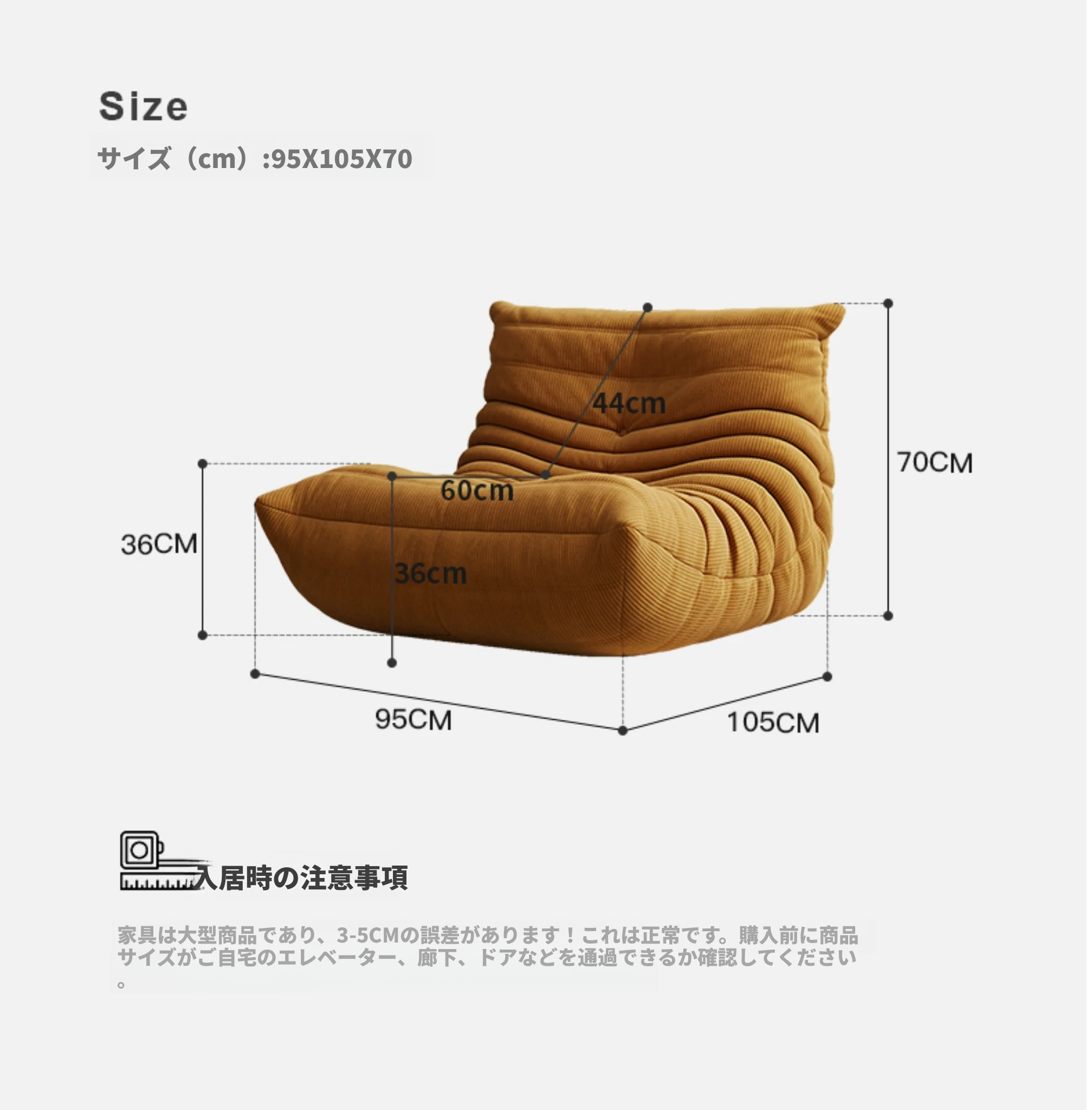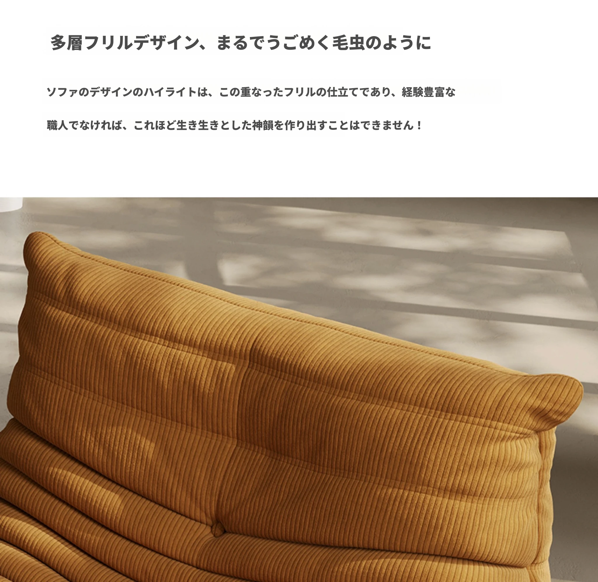 ふわふわ毛虫ソファTogo|現代的なリビングやバルコニーにぴったり!リラックスできるラウンジチェア|寝転がっても、眠ってもOK!クリーミーな風合いの1人用ソファで、心地よいひとときをお楽しみください。