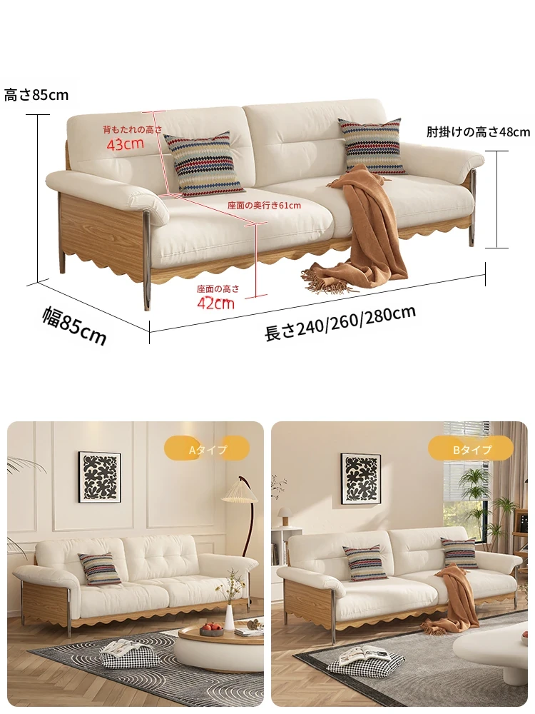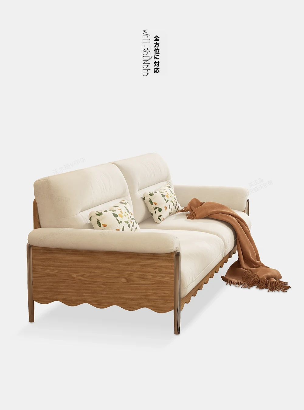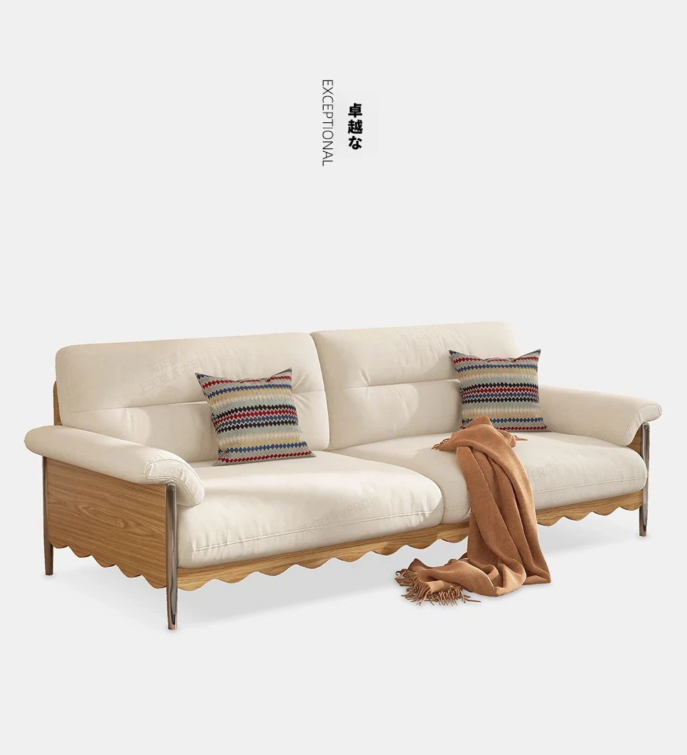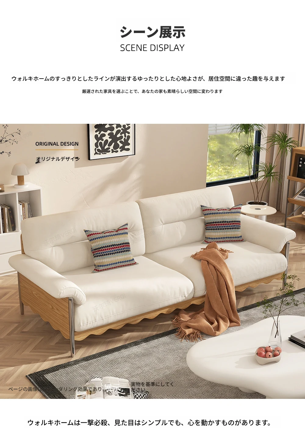 クラウド天然木製ソファー - クリームカラーのナチュラル風、和風デザインのコンパクトなリビング向け。レトロな直線デザイン、取り外し洗濯可能な生地、猫の爪にも強い!おしゃれで快適な空間を演出します。