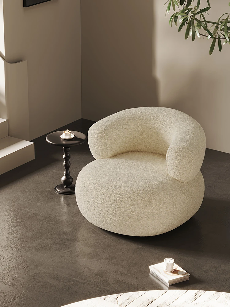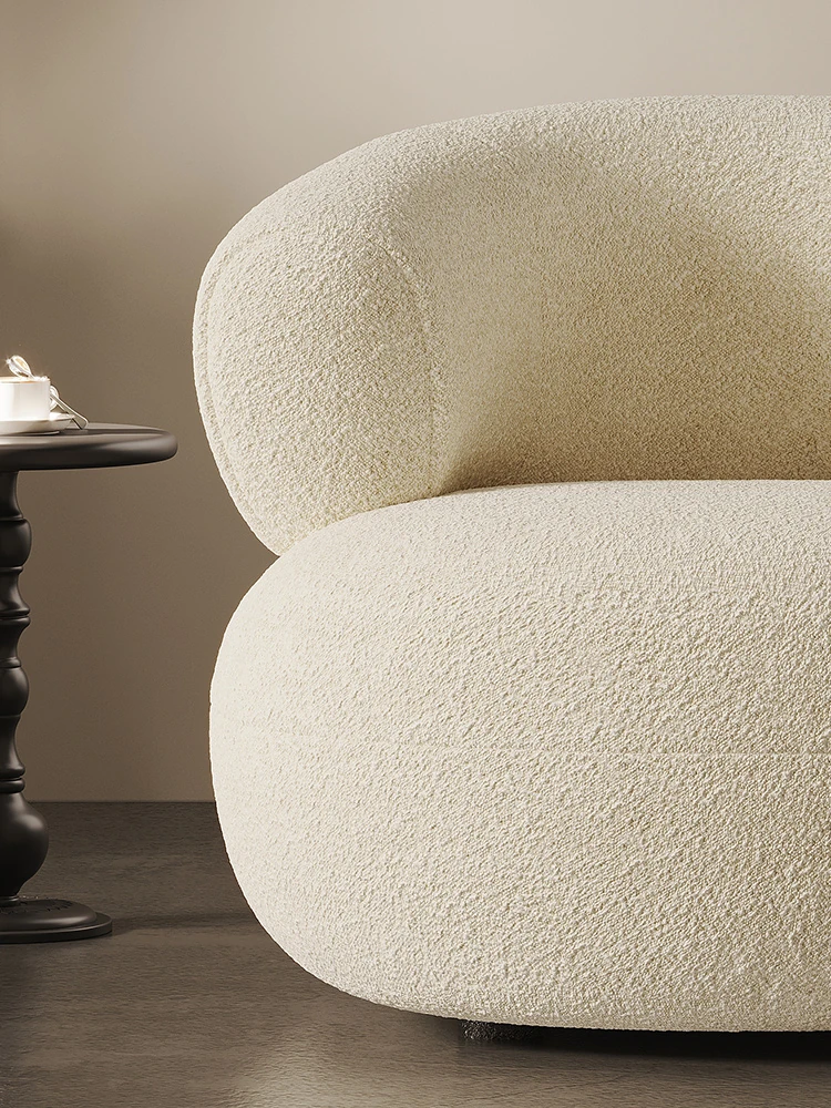 クリーム風ホワイトアーチ型ラムファー一人用ソファ デザイナーのクリエイティブU型ネット人気ラムファー小ソファで、居心地の良い空間を演出!おしゃれであたたかみのあるデザインが魅力です。