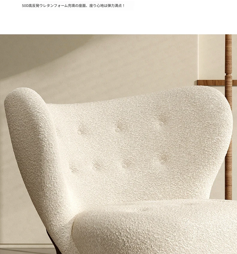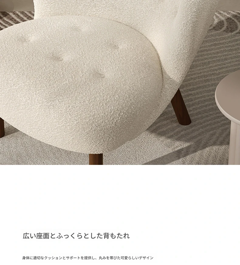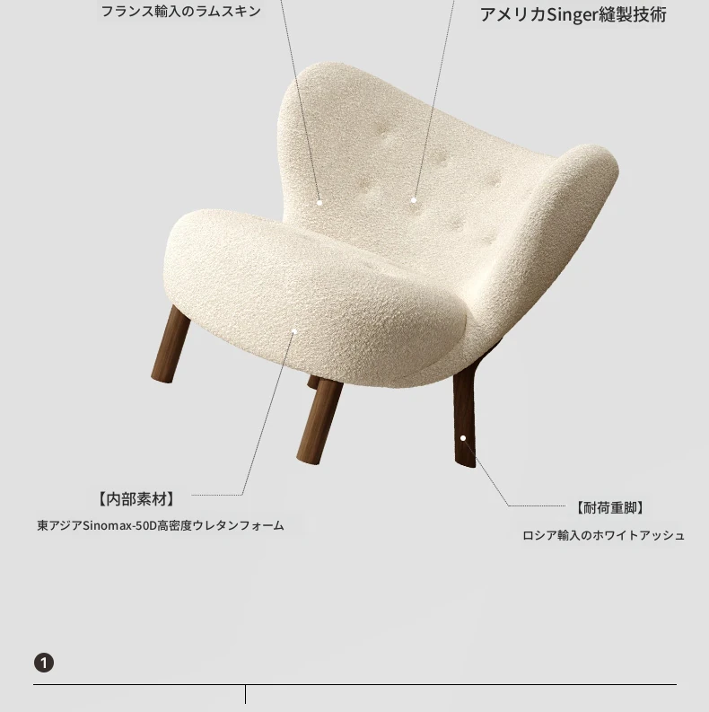 デンマークデザインのラムスキンレトロクリーム風一人掛けソファ、インスタ映えするリビングのラウンジチェア、リラックスしてくつろげる完璧なアイテム!