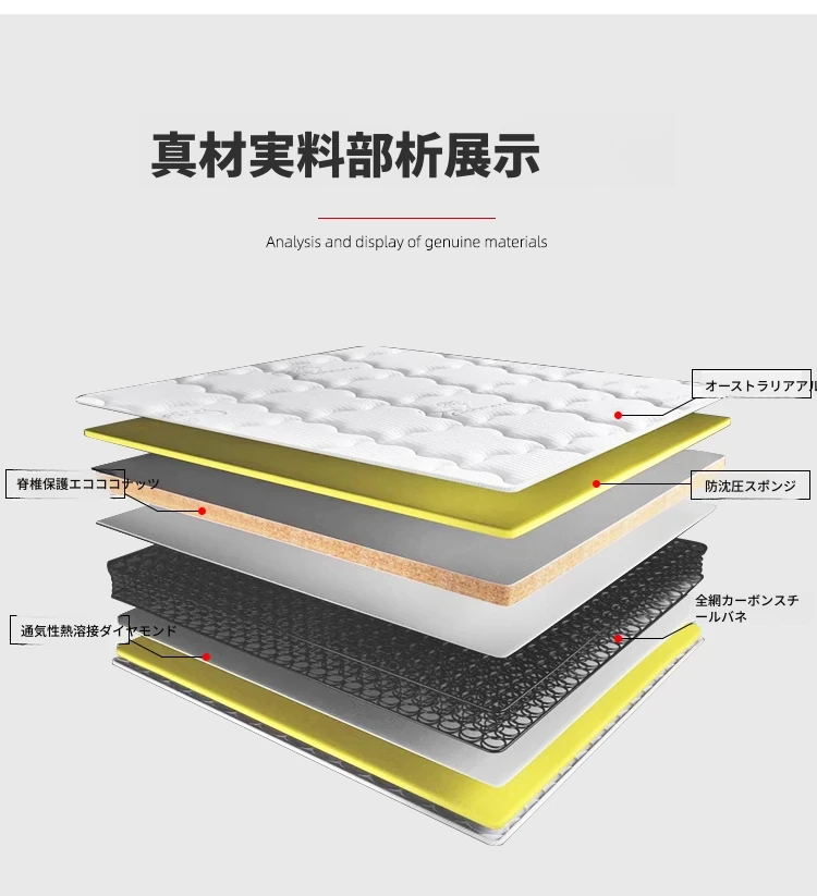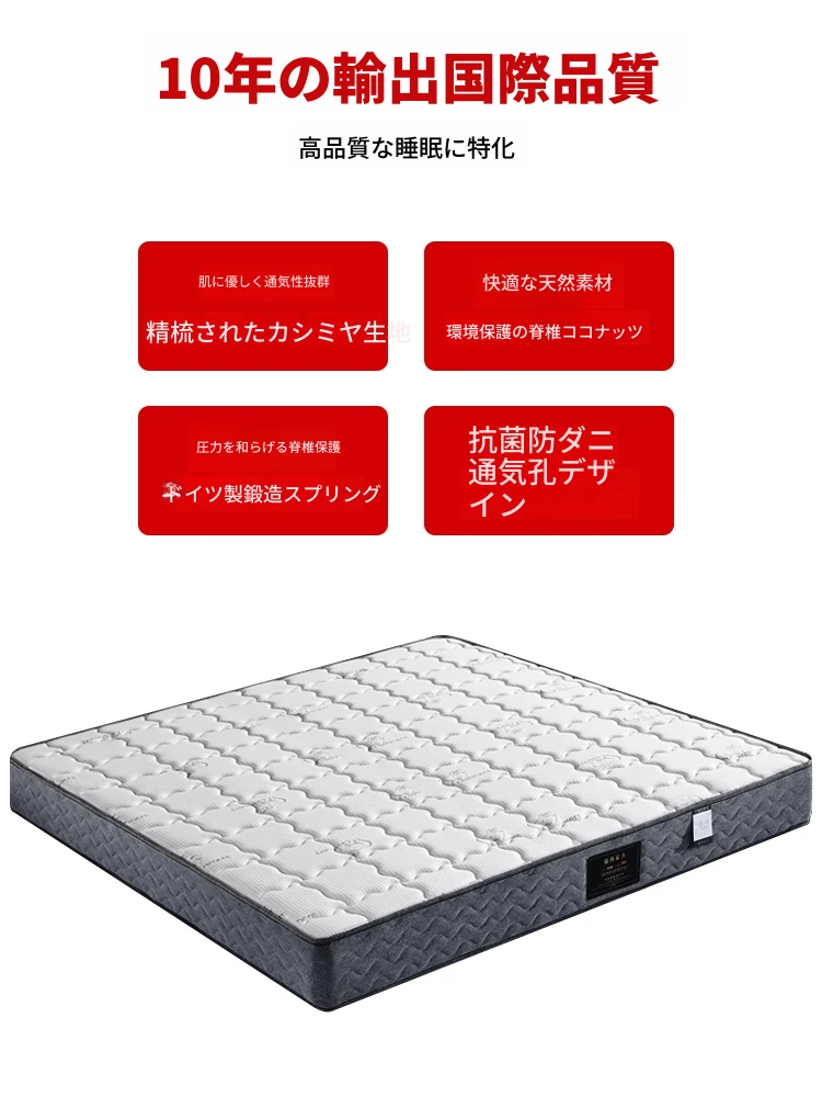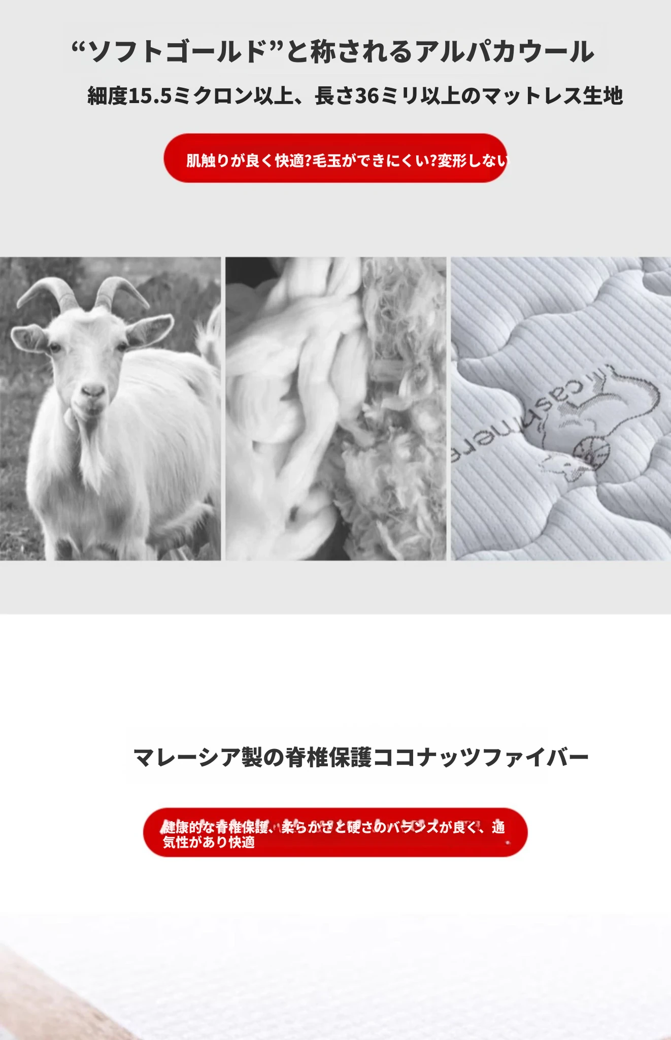 エコなココナッツファイバー使用!山羊の毛で作られた背中を守るマットレス、1.5m・1.8mの全ネットスプリング仕様。快適な睡眠と健康的な姿勢をサポート!