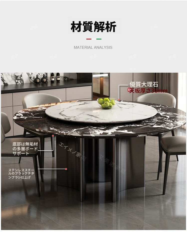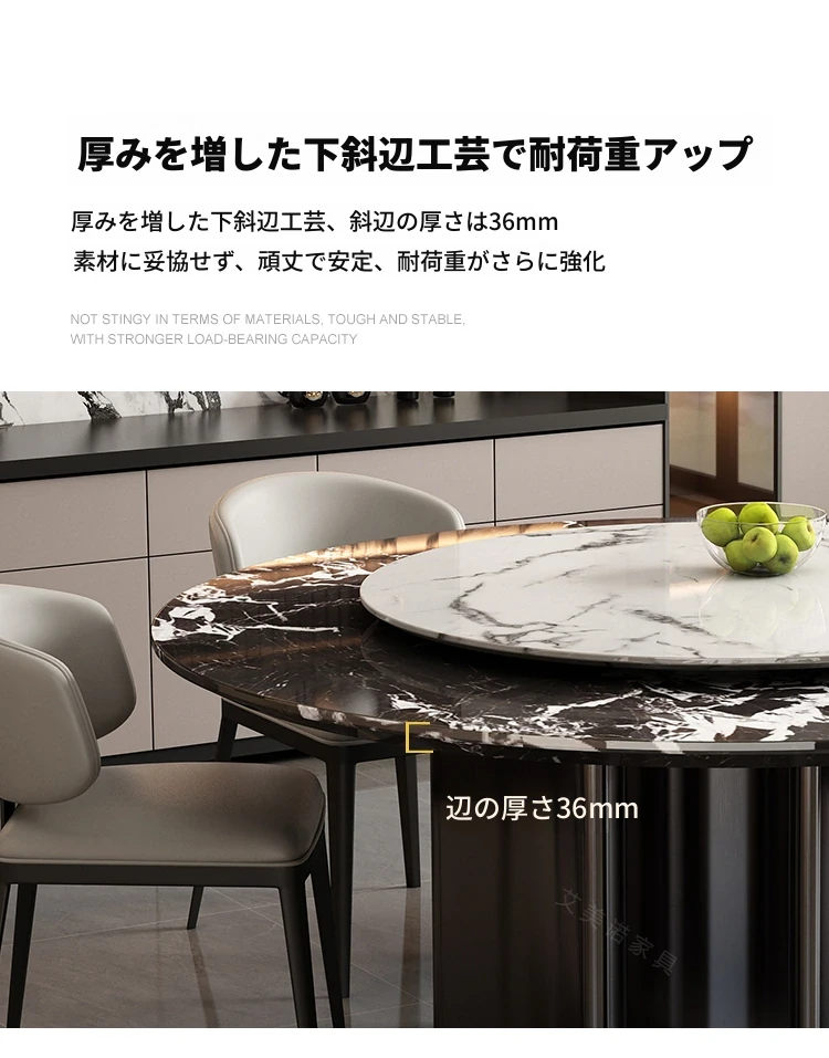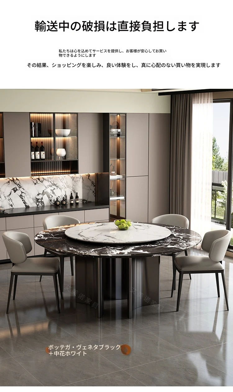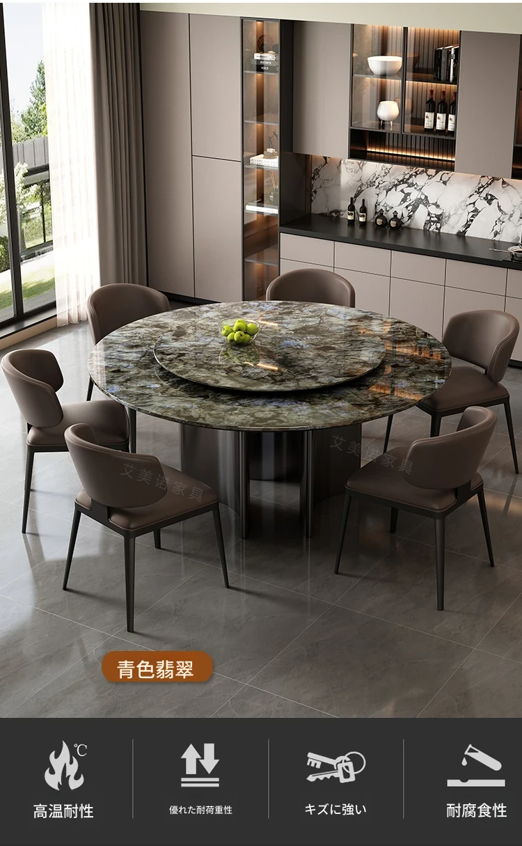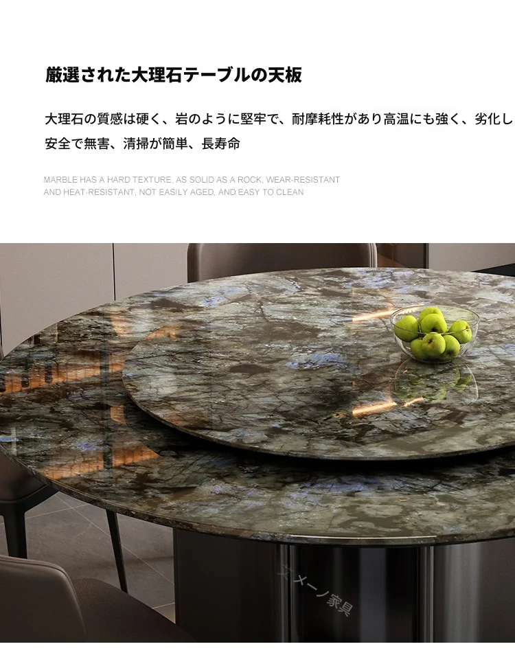 ラグジュアリー大理石ダイニングテーブル&チェアセット - コンパクトなサイズにぴったりな1.8m円形テーブル、回転式プレート付き。高級ヴィラやクラブに最適なスタイリッシュなデザイン!