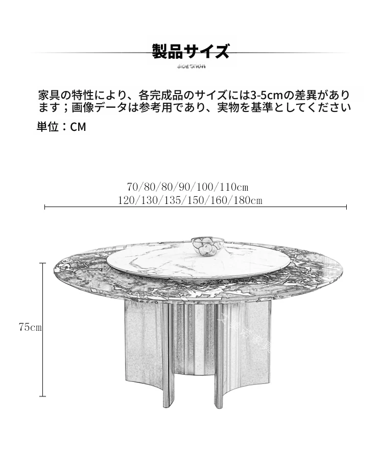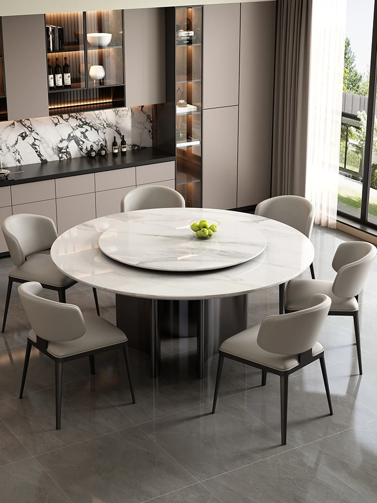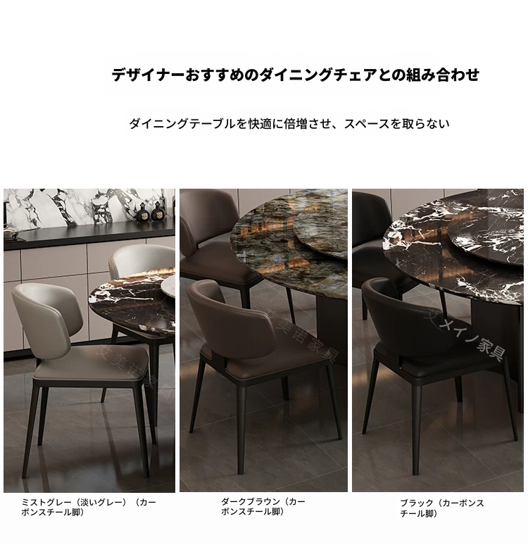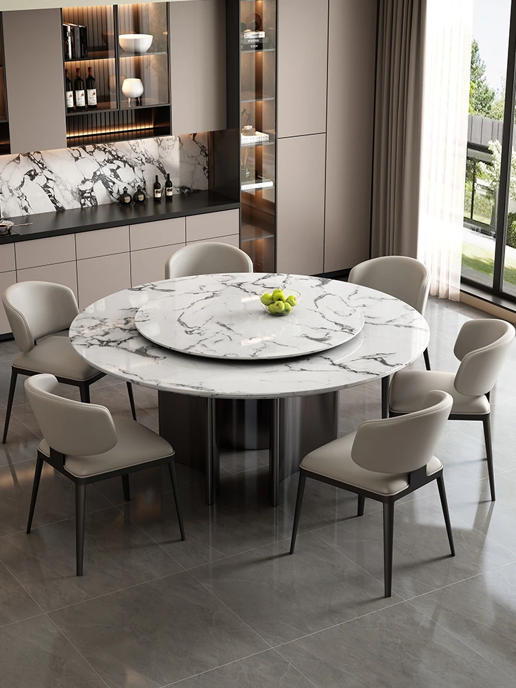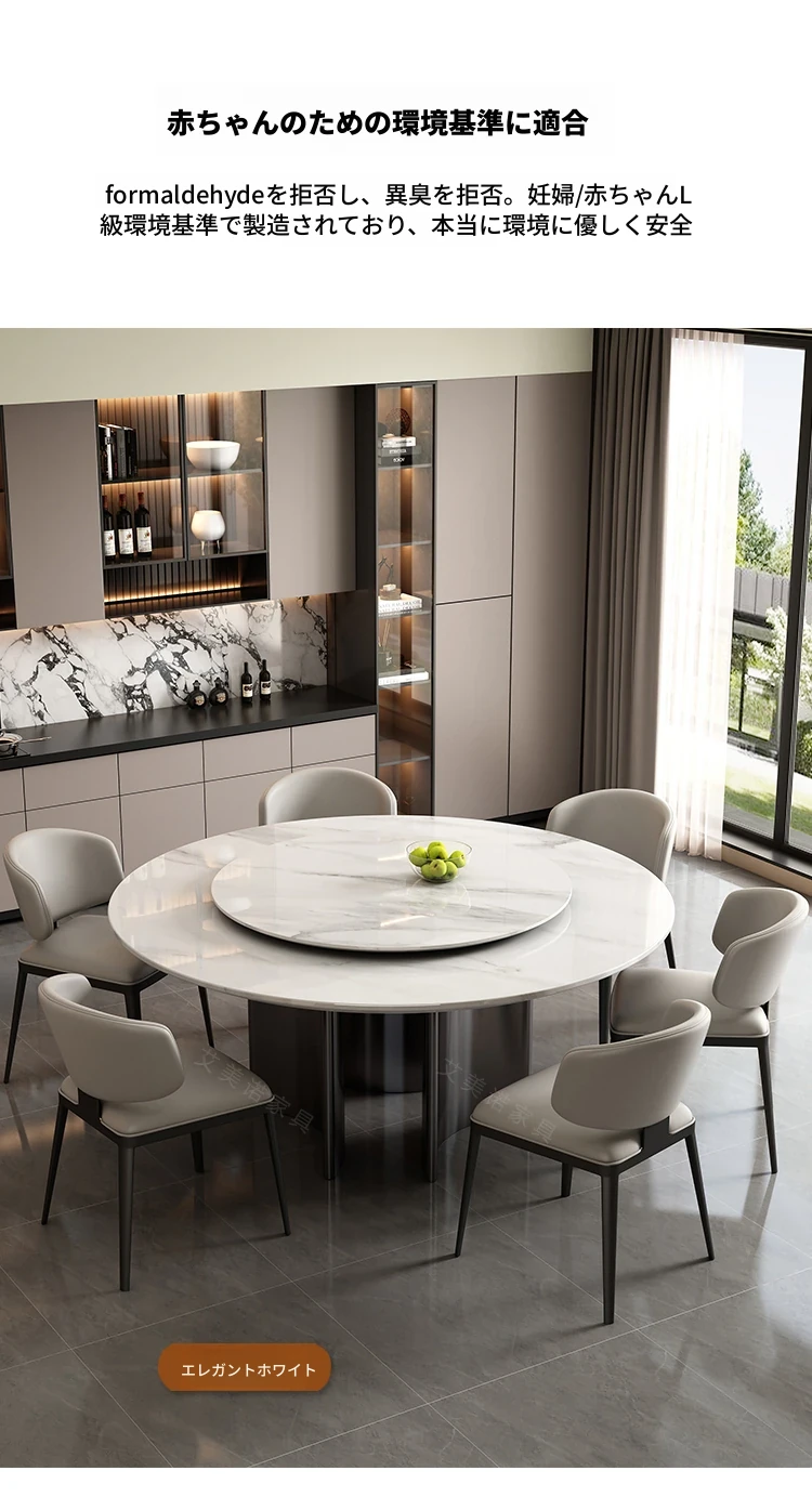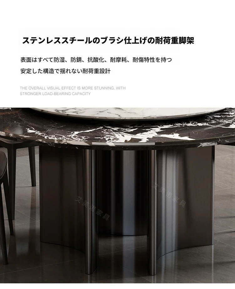 ラグジュアリー大理石ダイニングテーブル&チェアセット - コンパクトなサイズにぴったりな1.8m円形テーブル、回転式プレート付き。高級ヴィラやクラブに最適なスタイリッシュなデザイン!