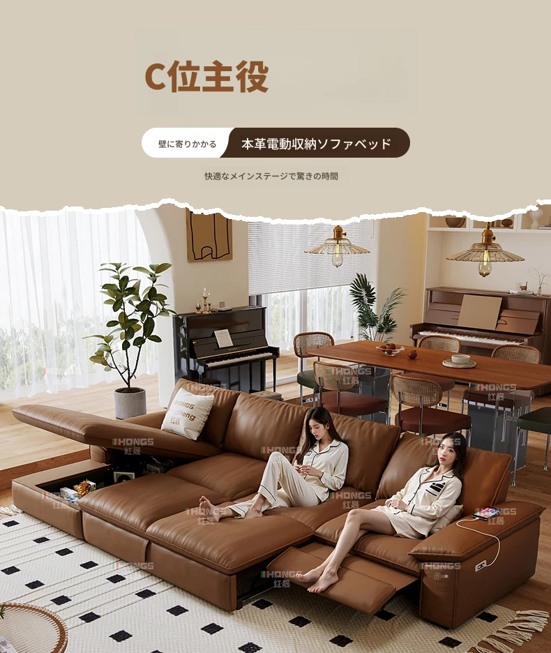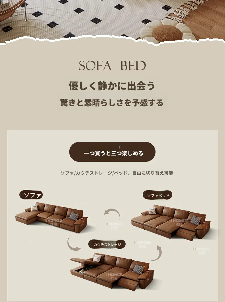 2025年新款!红晟多功能電動ソファ - アメリカンレトロデザインの小型リビング用ソファベッド、折りたたみ式で便利!快適な空間を演出し、あなたのライフスタイルにぴったりです。