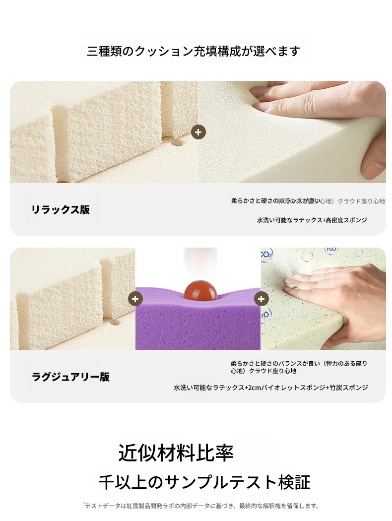 【フラッグシップ版・クラウド座感】3.35m 機能席+二人席+貴妃(60Dシリコンコットン+3CMバイオレットスポンジ+竹炭スポンジ)