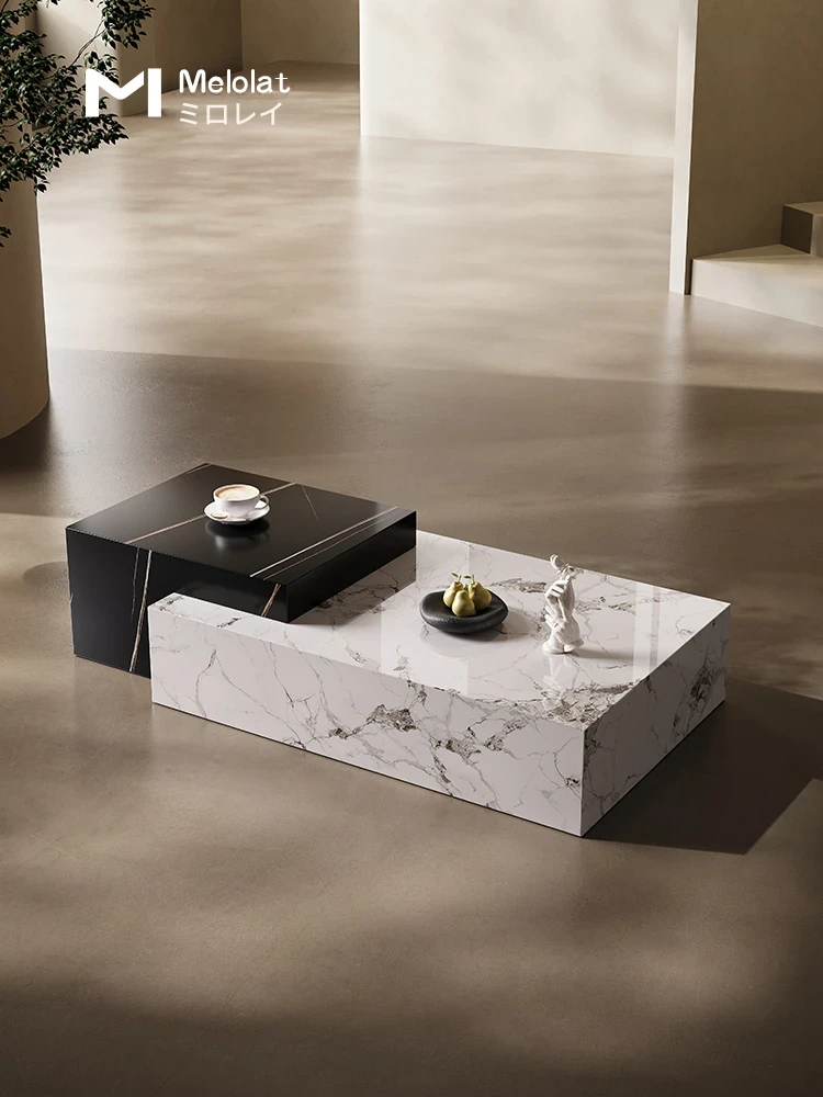 イタリアンミニマリズムの大理石模様コーヒーテーブル - ヴィラの広々としたリビングにぴったりのデザイナーズ北欧モダン家具。シンプルで洗練されたデザインが、あなたの空間を華やかに演出します!