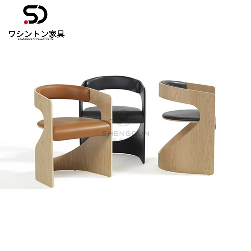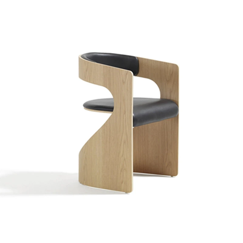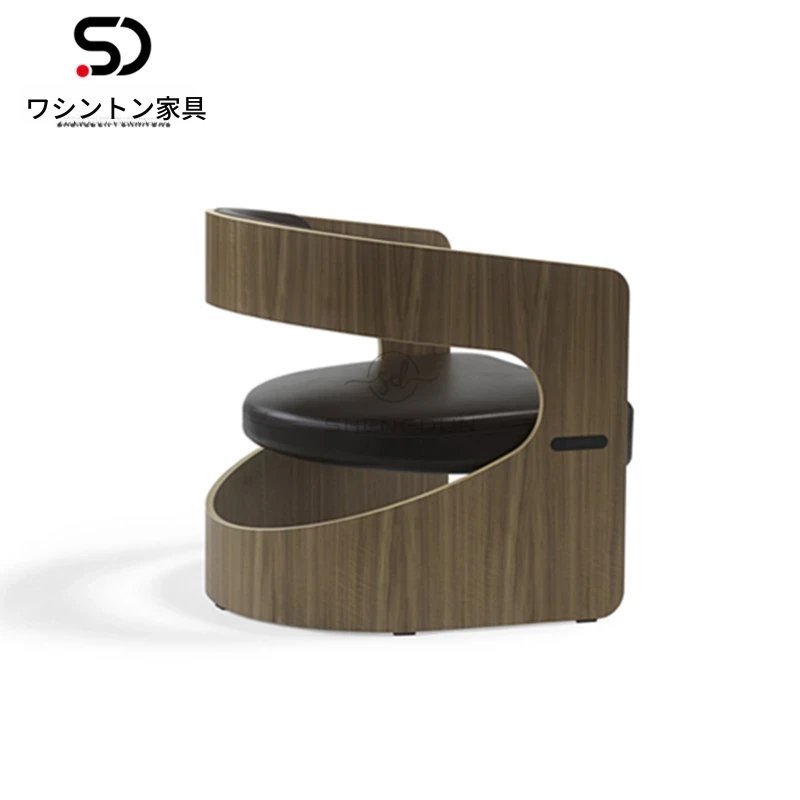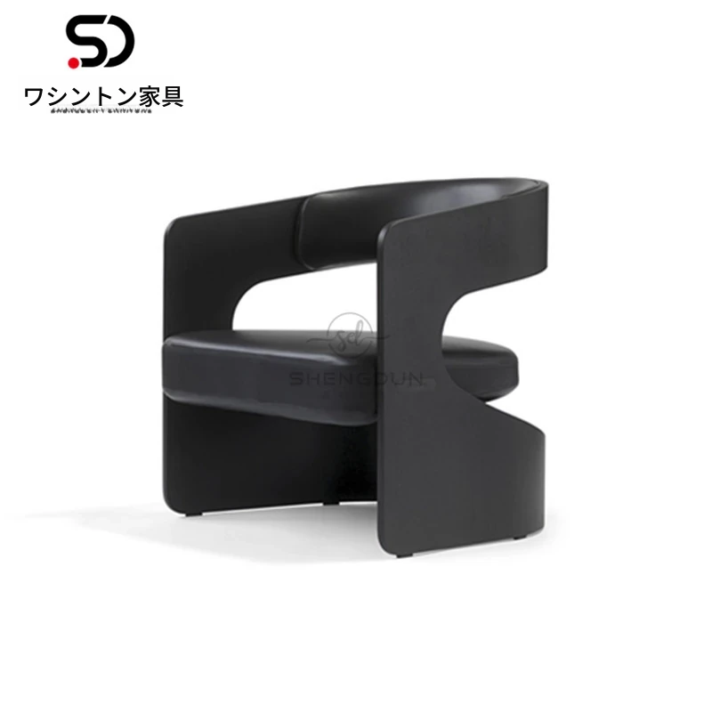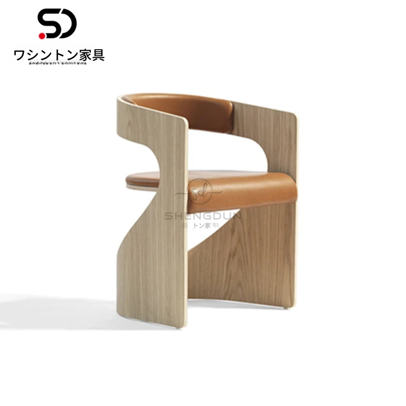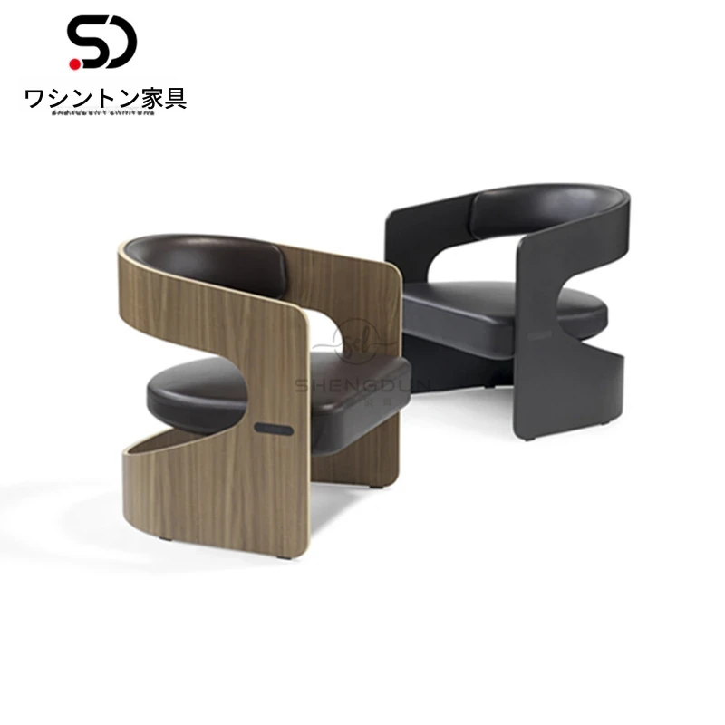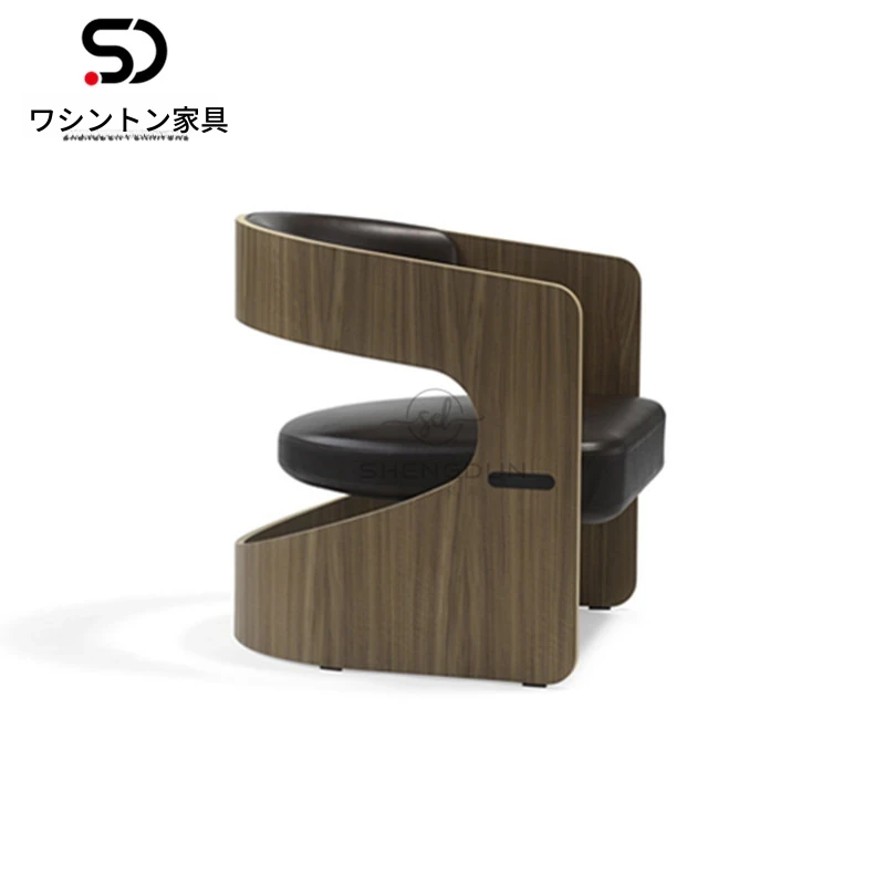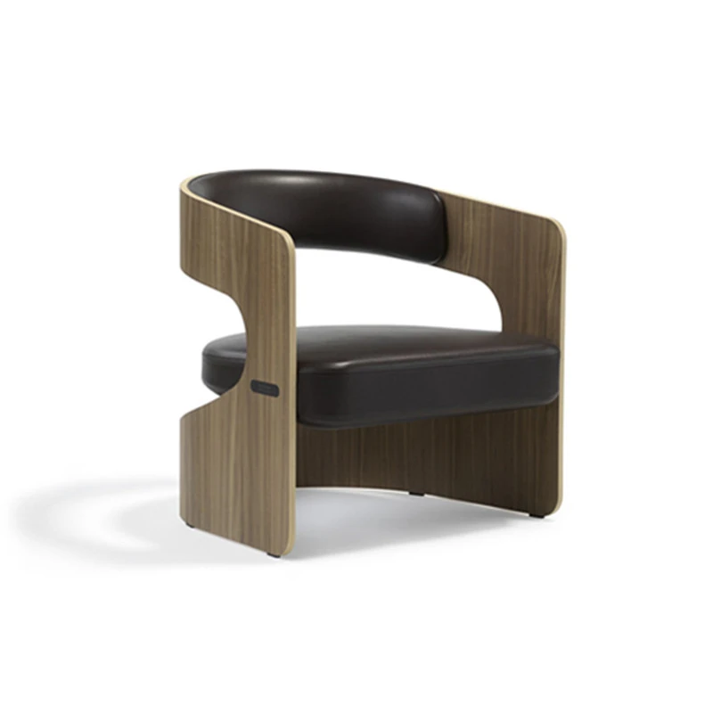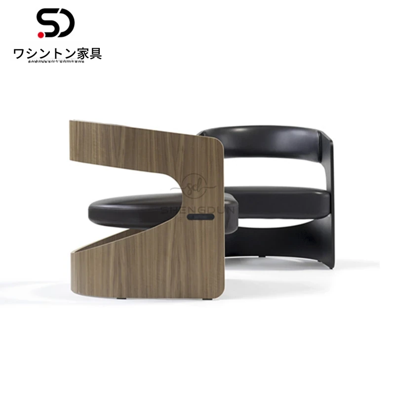 イタリアンスタイルのラグジュアリーな無垢材とレザーのソファチェア - ホテルや民宿、クラブにぴったりのデザイン。北欧風のリラックスチェアで、洗練された空間を演出します。