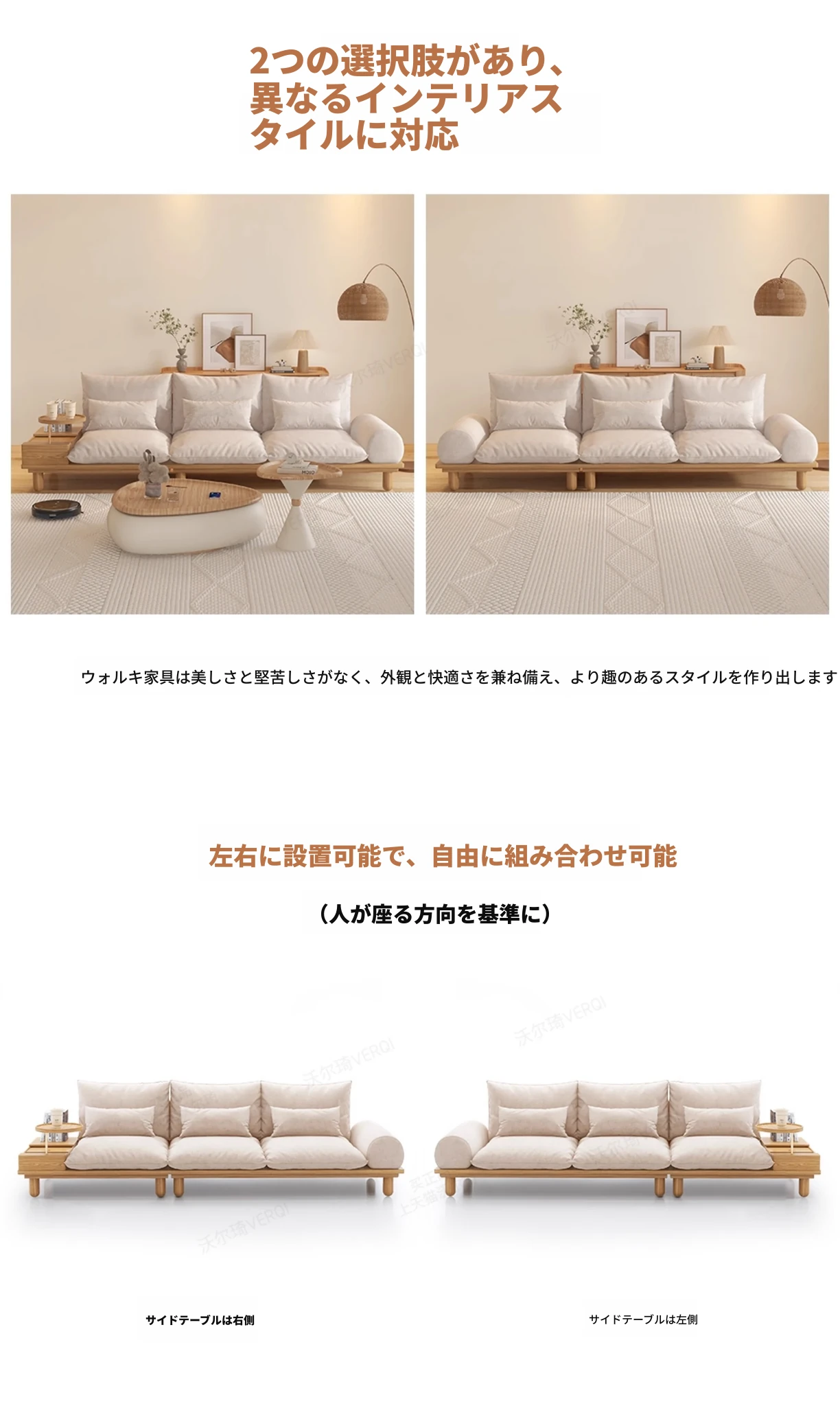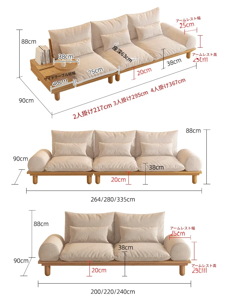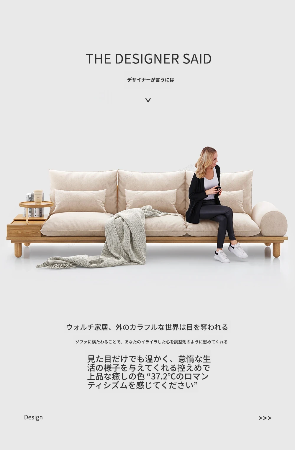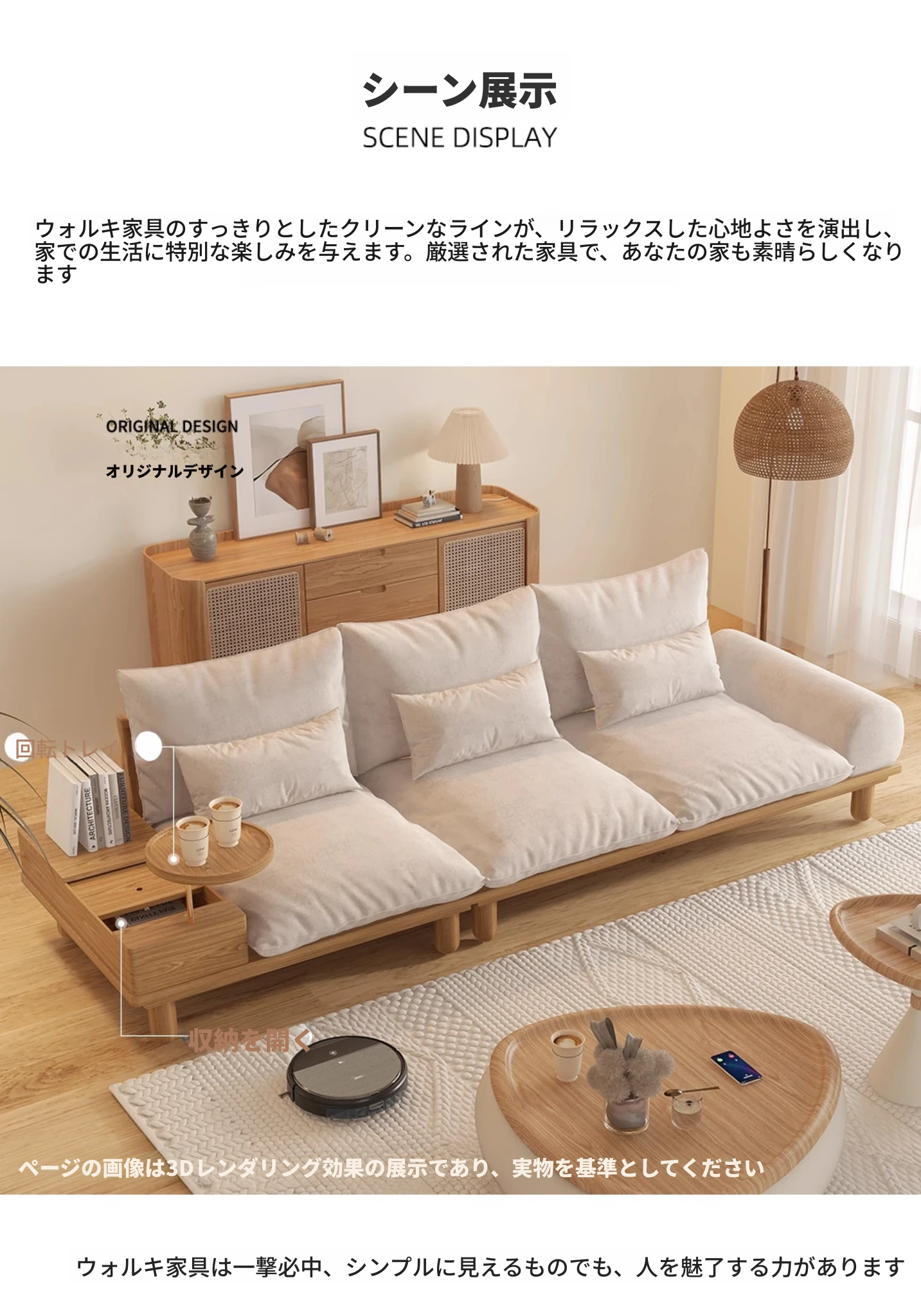 北欧風シンプルデザイン!実木ソファ - 小型リビングに最適な3人掛け、ラテックス布カバー付き、収納機能付き。おしゃれで快適な空間を演出する、モダンなインテリアアイテム!