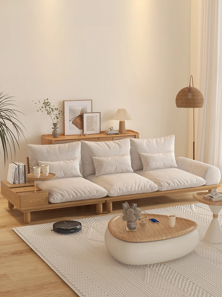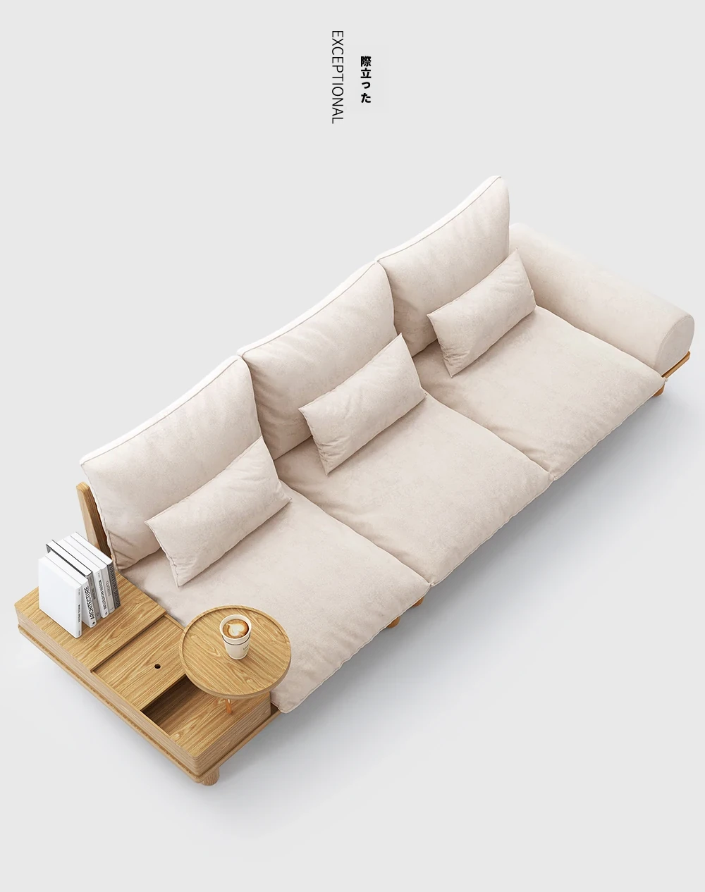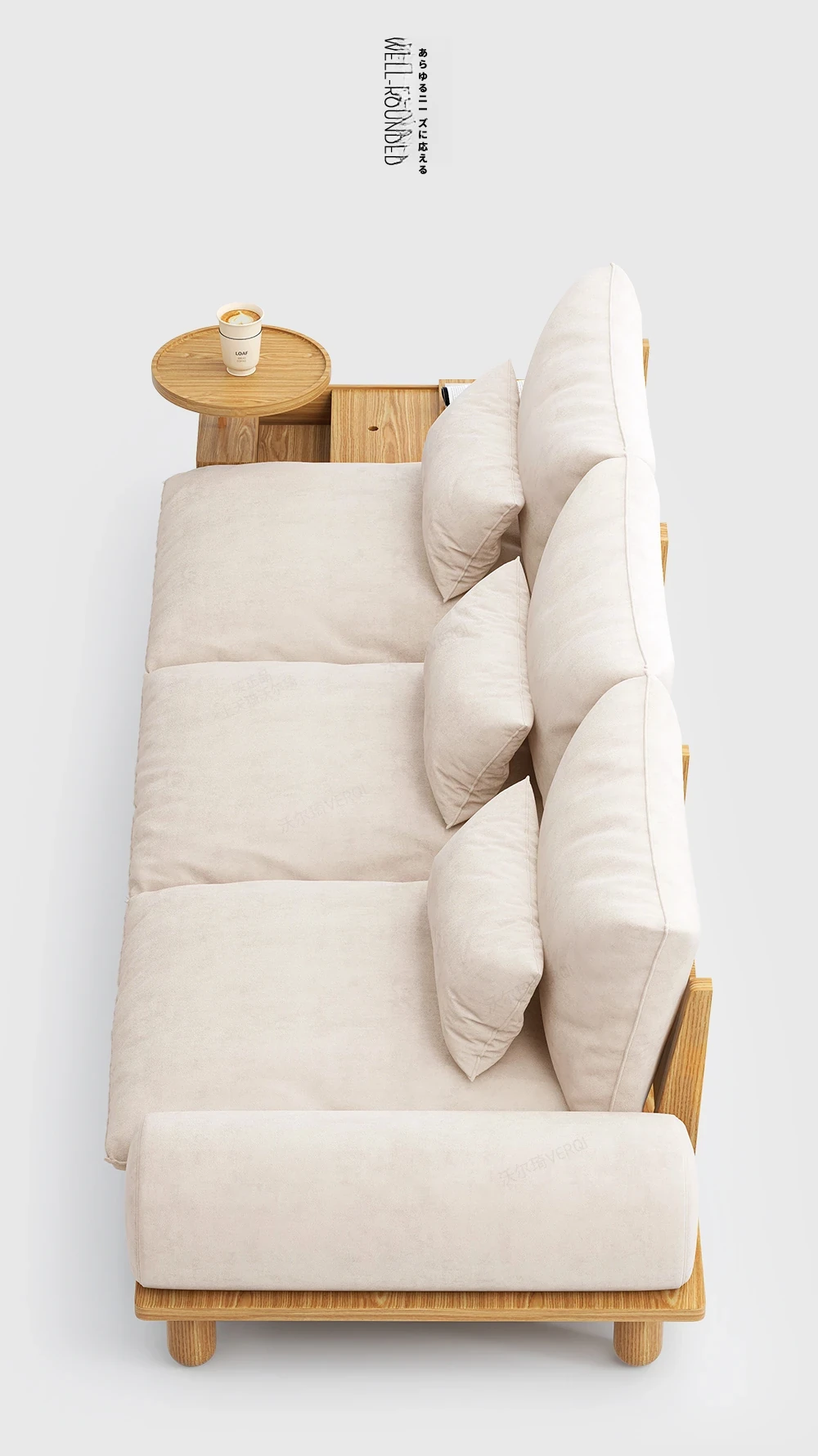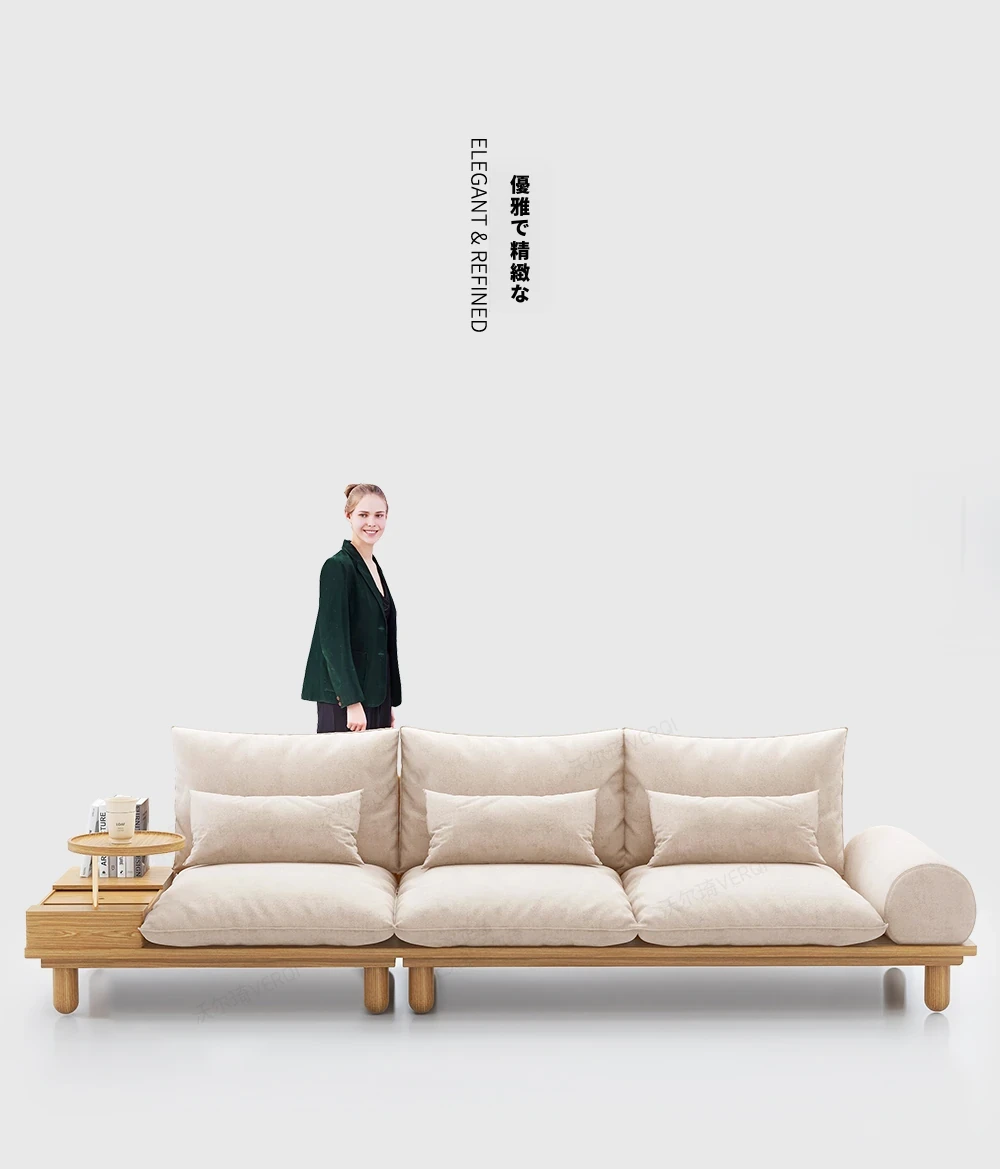 北欧風シンプルデザイン!実木ソファ - 小型リビングに最適な3人掛け、ラテックス布カバー付き、収納機能付き。おしゃれで快適な空間を演出する、モダンなインテリアアイテム!