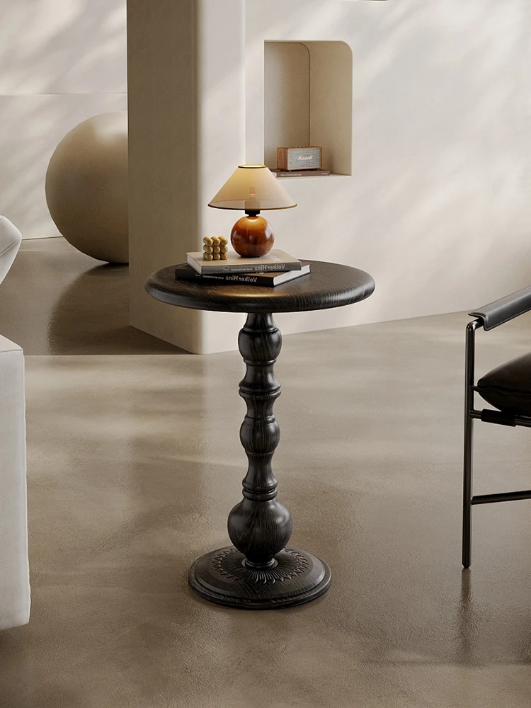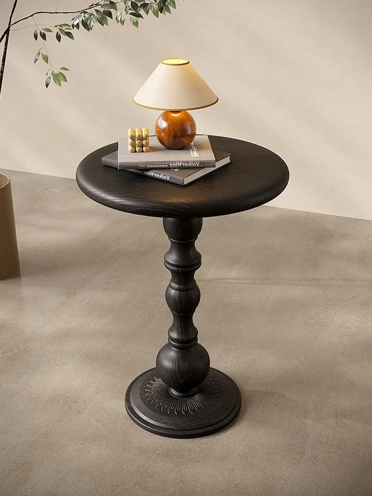 侘寂スタイルの美しいアメリカンエッジサイドテーブル、輸入紅オーク材の円形コーヒーテーブル。環境に優しい輸入塗料使用の小さなティーテーブルで、あなたのリビングに洗練された雰囲気をプラス!