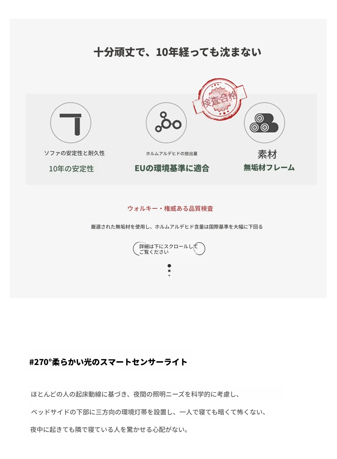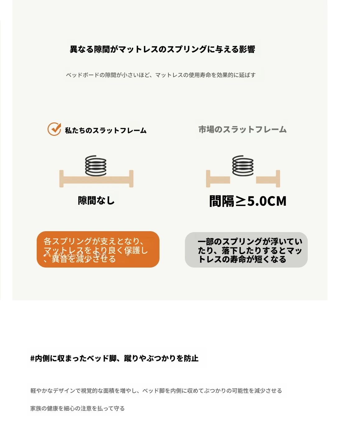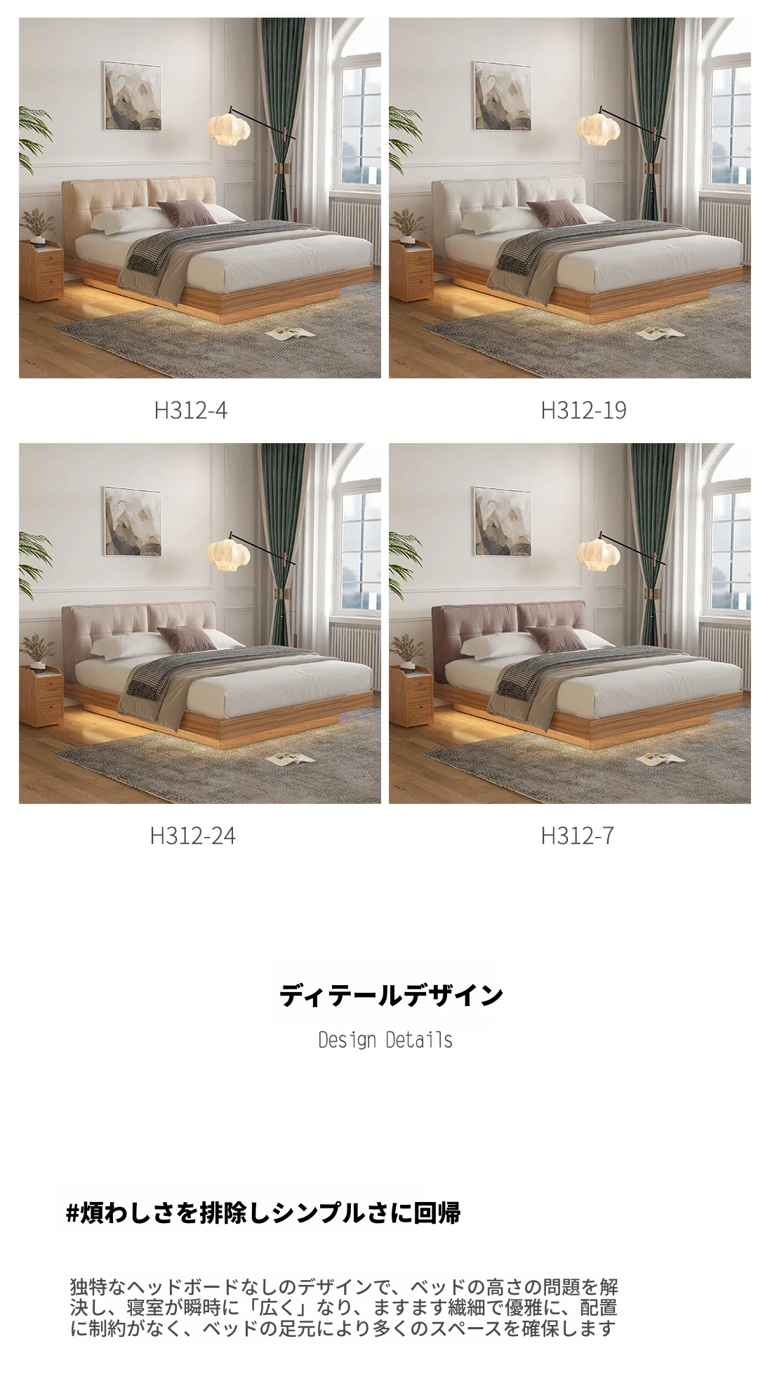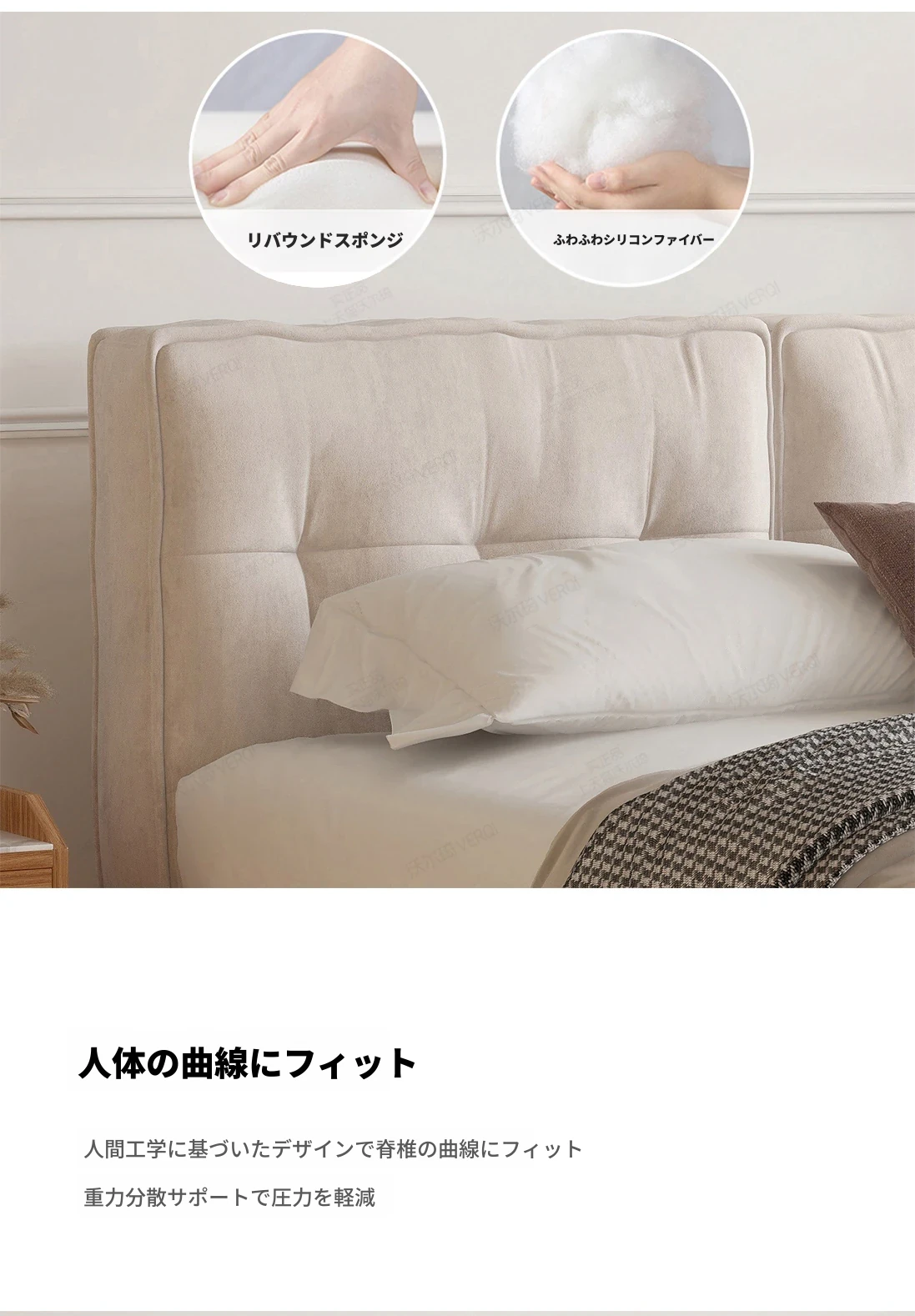 ホワイトアッシュ製の浮遊感ある和風無垢材ベッド - シンプルでモダンなデザイン、小さな部屋にも最適なソフトパッド付き北欧スタイルのダブルベッド。主寝室をおしゃれに演出します!