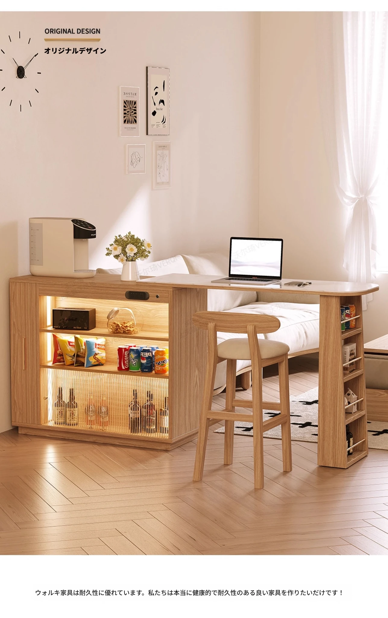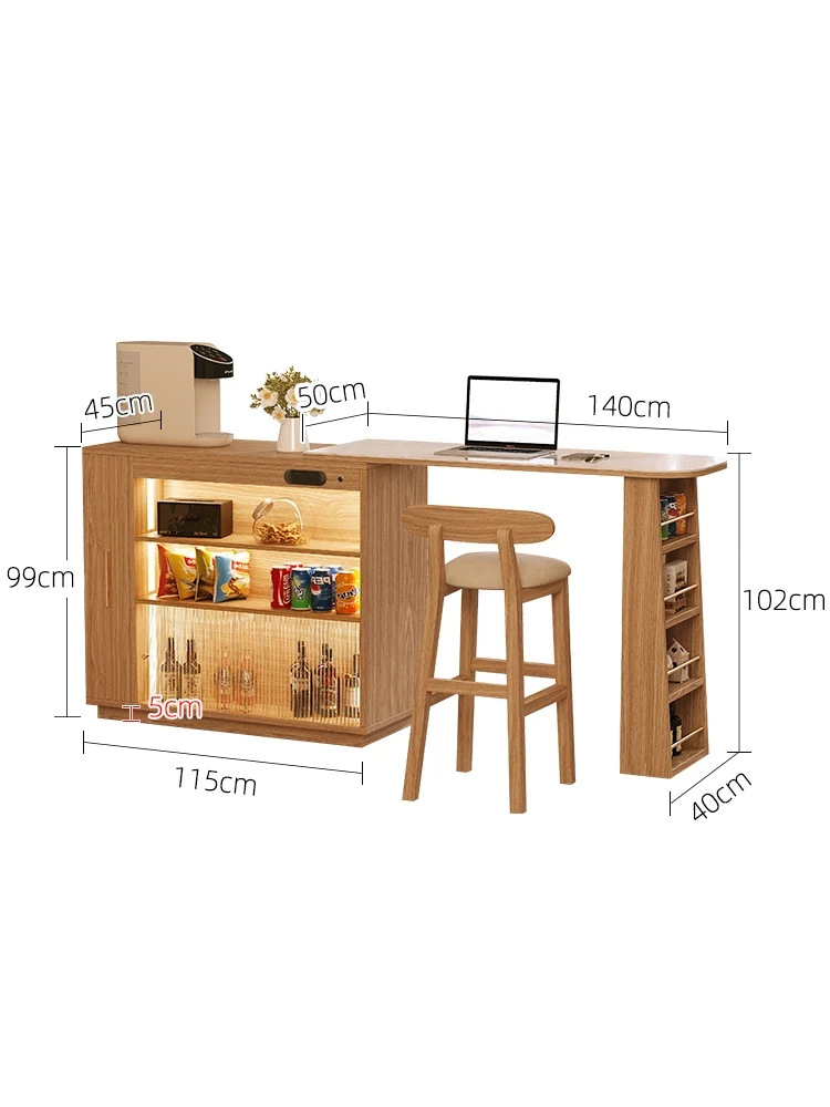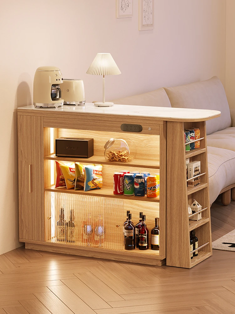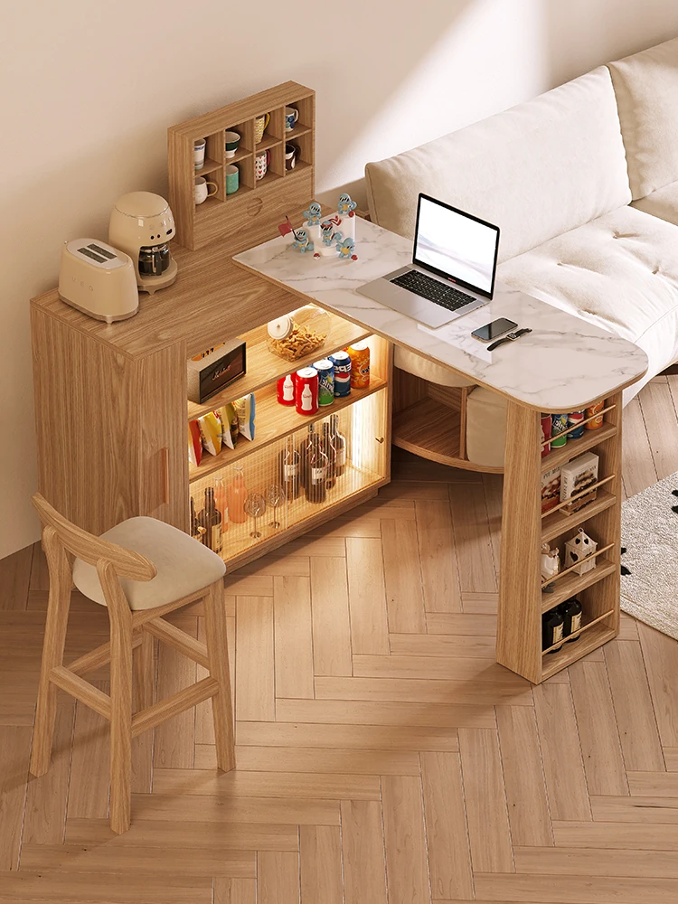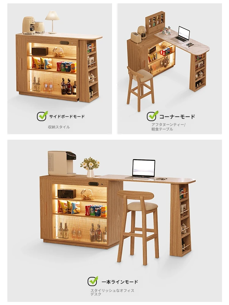 日本風の無垢材ロックプレートバーカウンター - モダンなリビングにぴったり!移動可能な間仕切りとダイニングテーブル機能を兼ね備えた小型住宅向けの多機能収納キャビネット。生活空間をスタイリッシュに演出します!