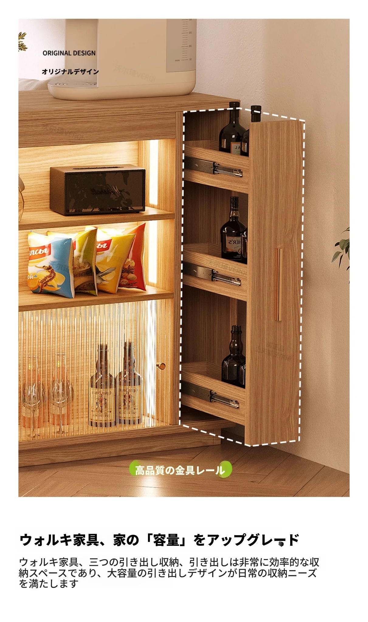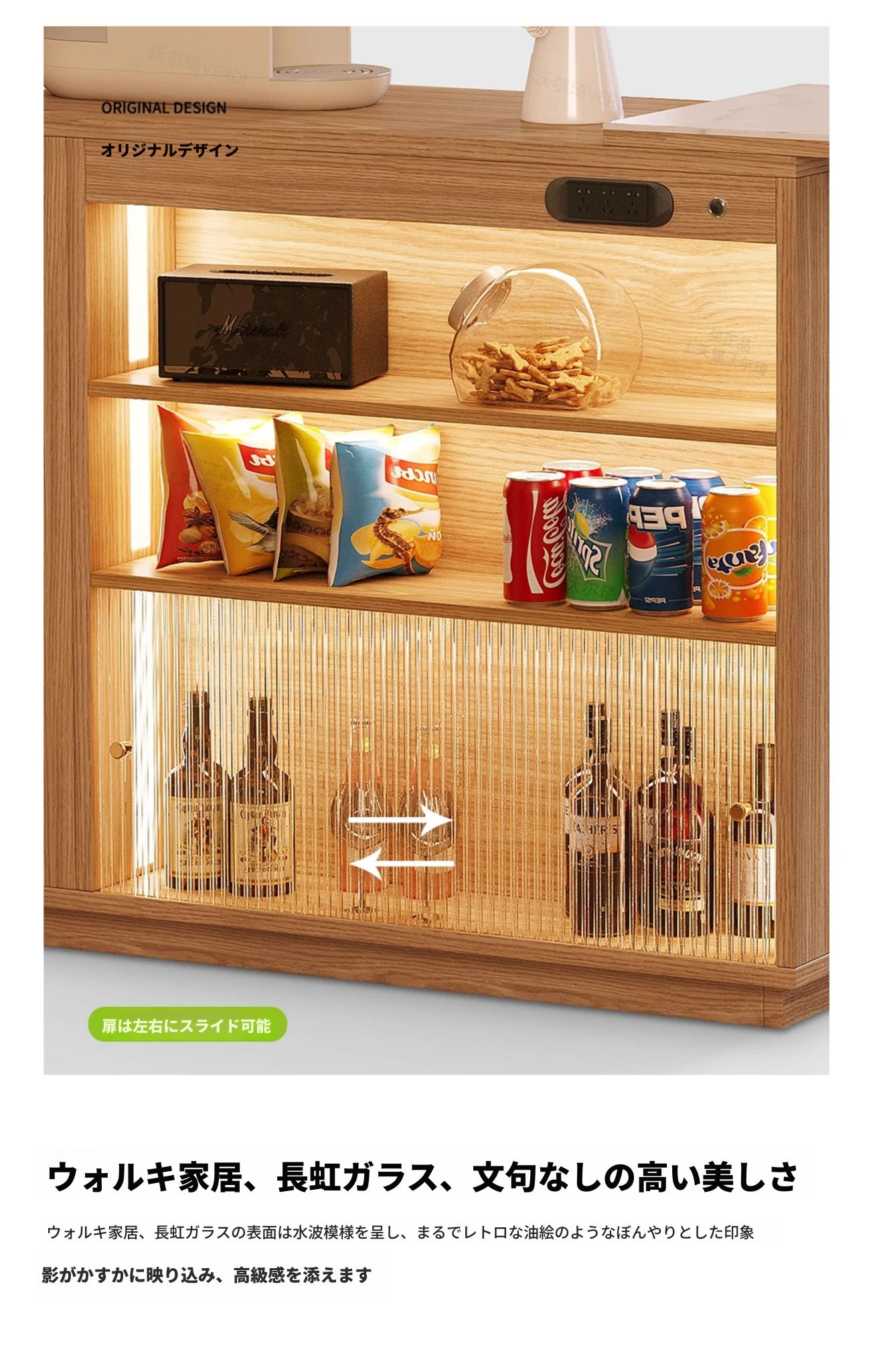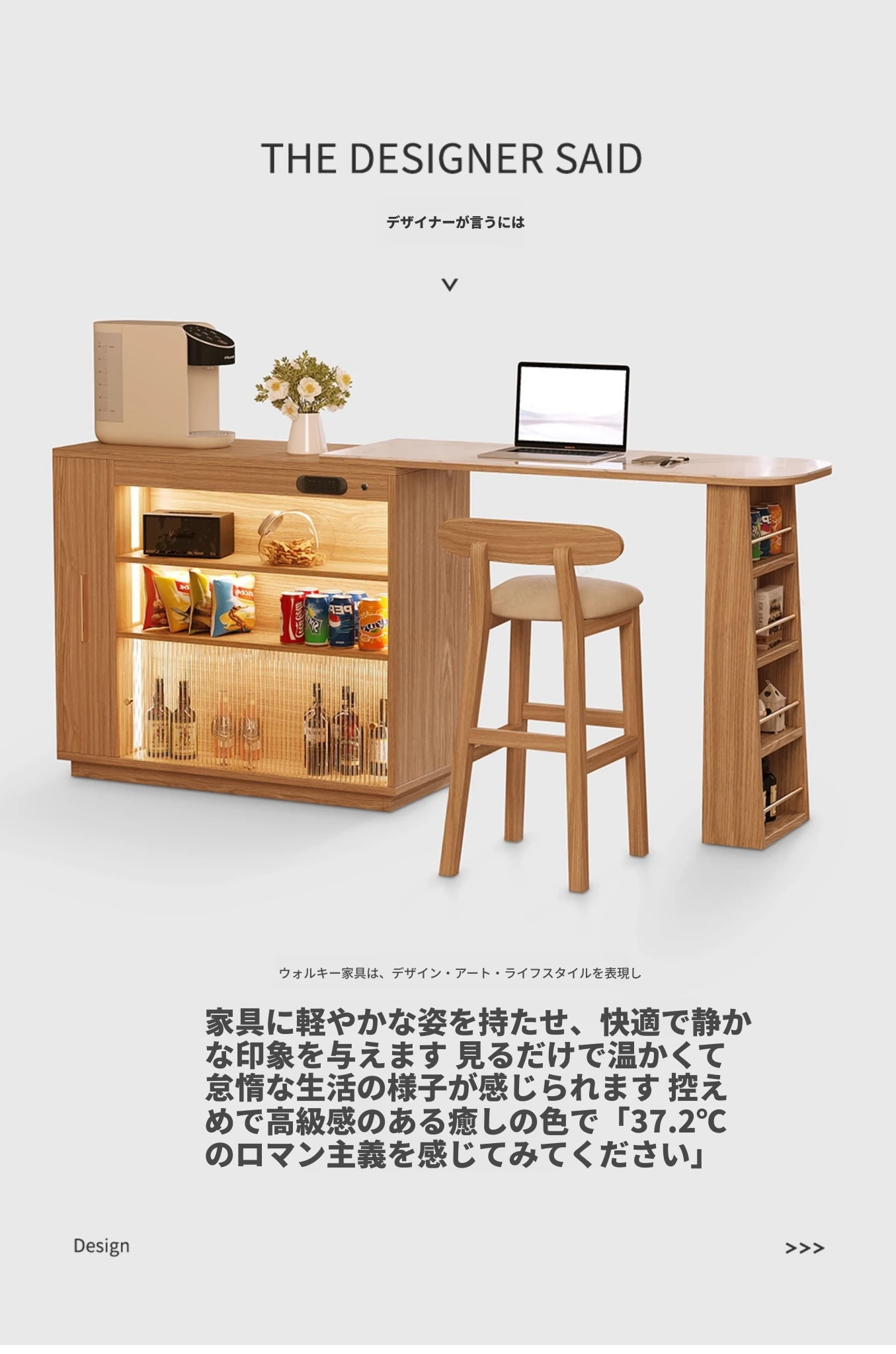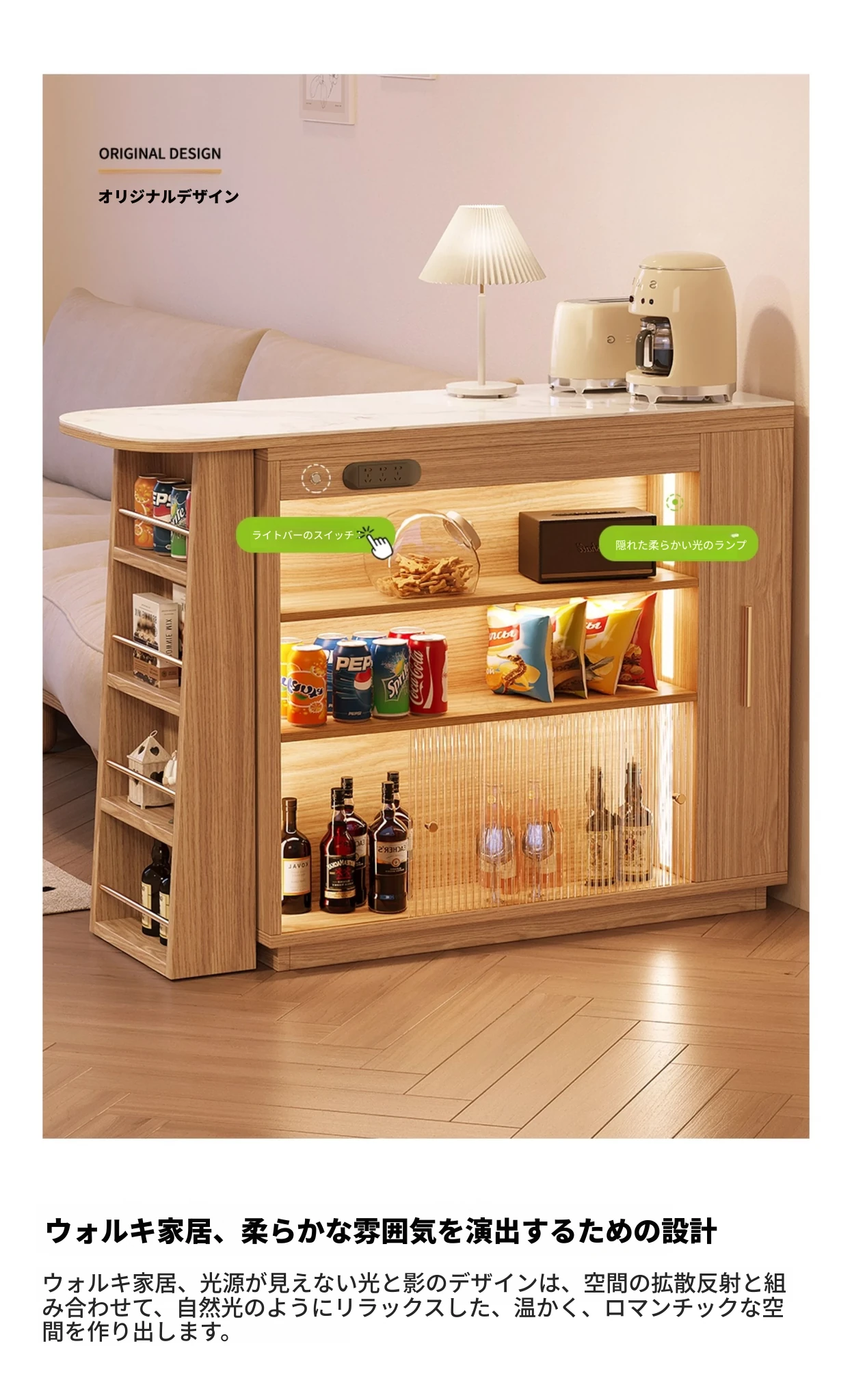 日本風の無垢材ロックプレートバーカウンター - モダンなリビングにぴったり!移動可能な間仕切りとダイニングテーブル機能を兼ね備えた小型住宅向けの多機能収納キャビネット。生活空間をスタイリッシュに演出します!