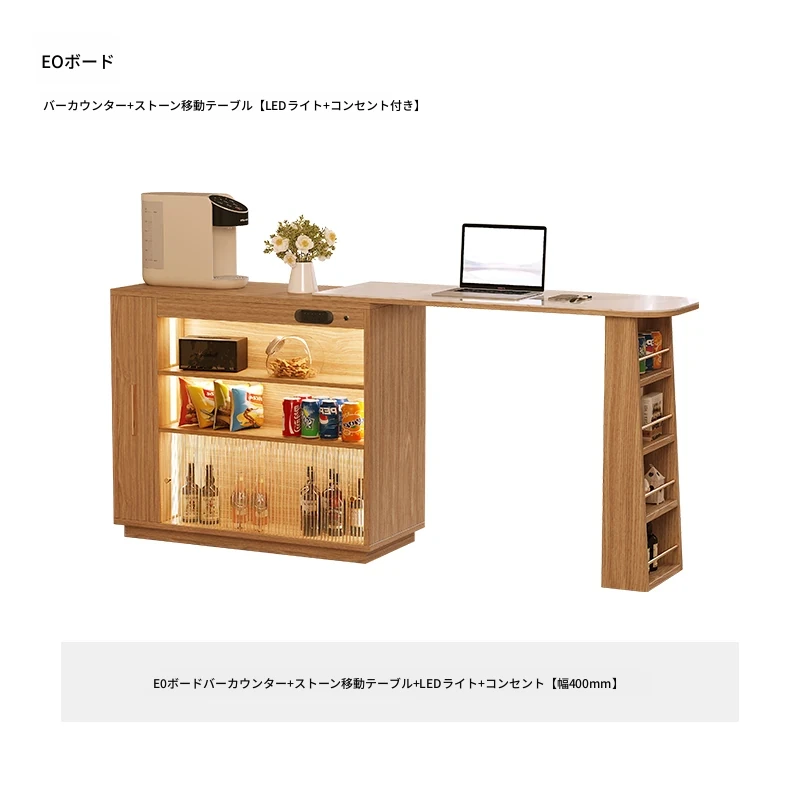 E0板 バーカウンター+石板移動テーブル【LEDライト+コンセント付き】 幅400mm