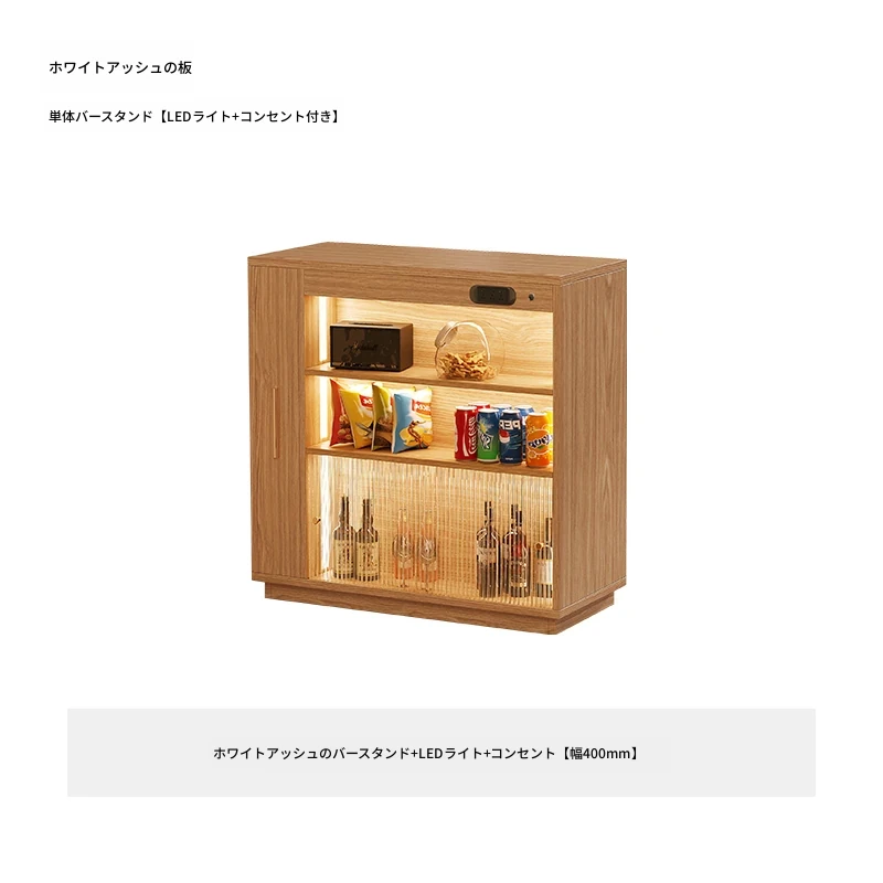 ホワイトアッシュ木板 単体バーカウンター【LEDライト+コンセント付き】 幅400mm