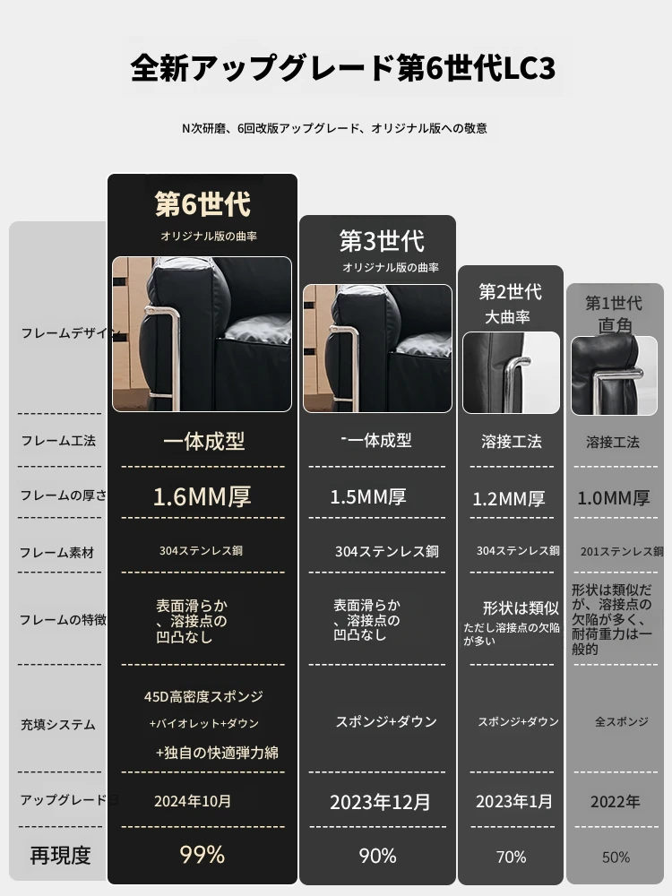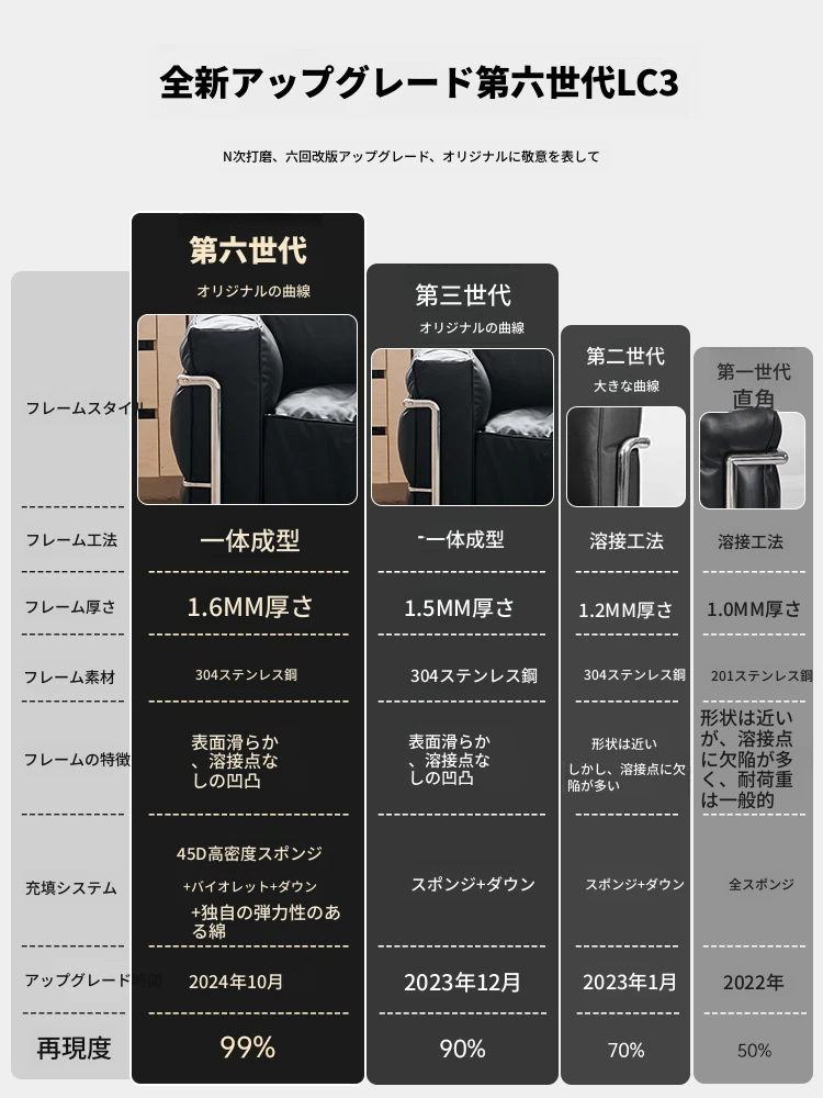 バルナ家居を選んでください - 高級LC3は【304ステンレス+ブランド革】を選びます