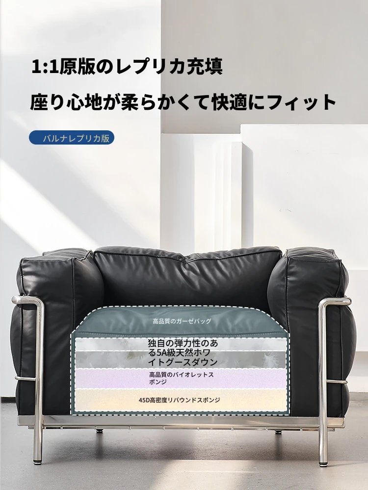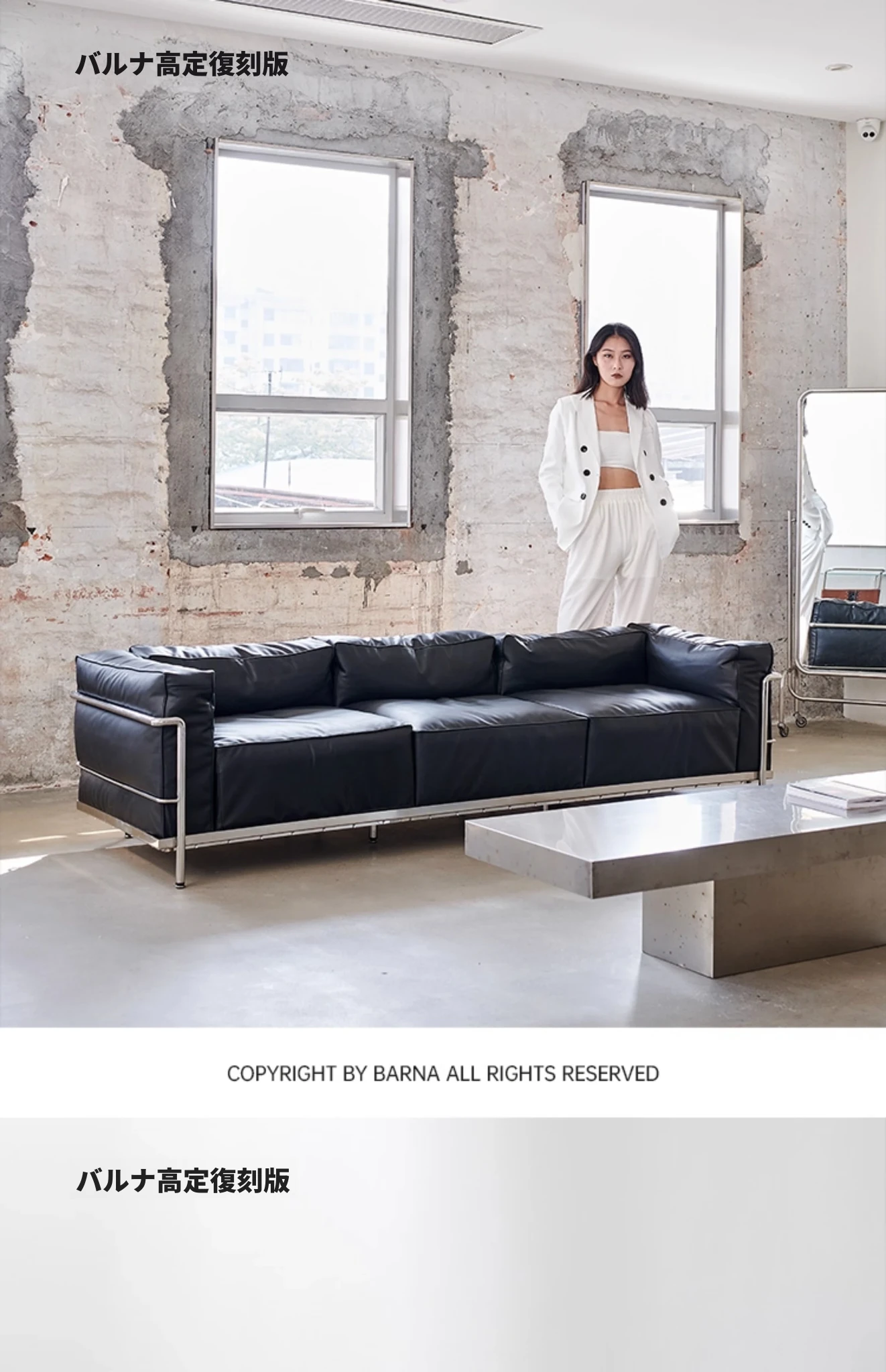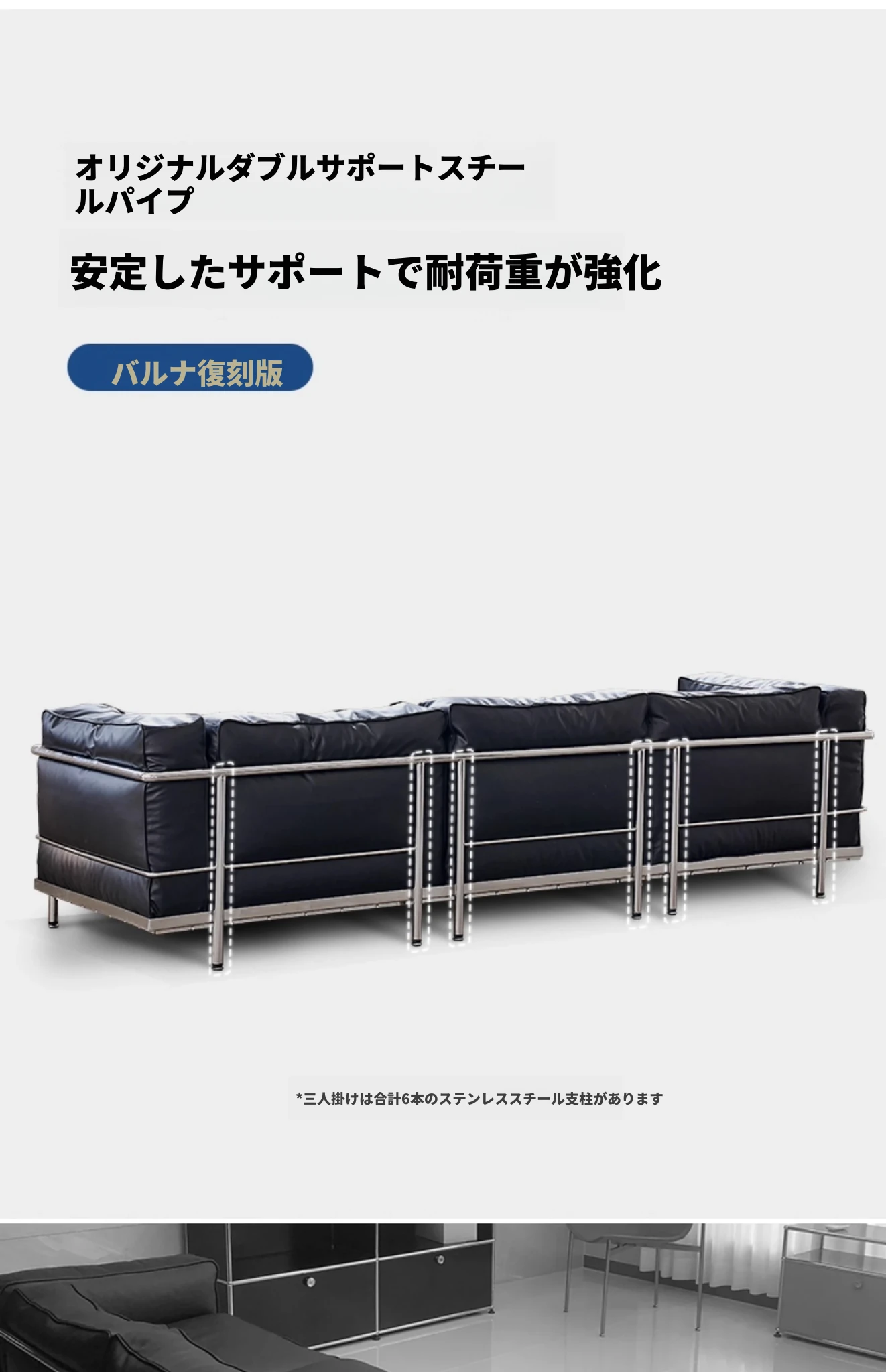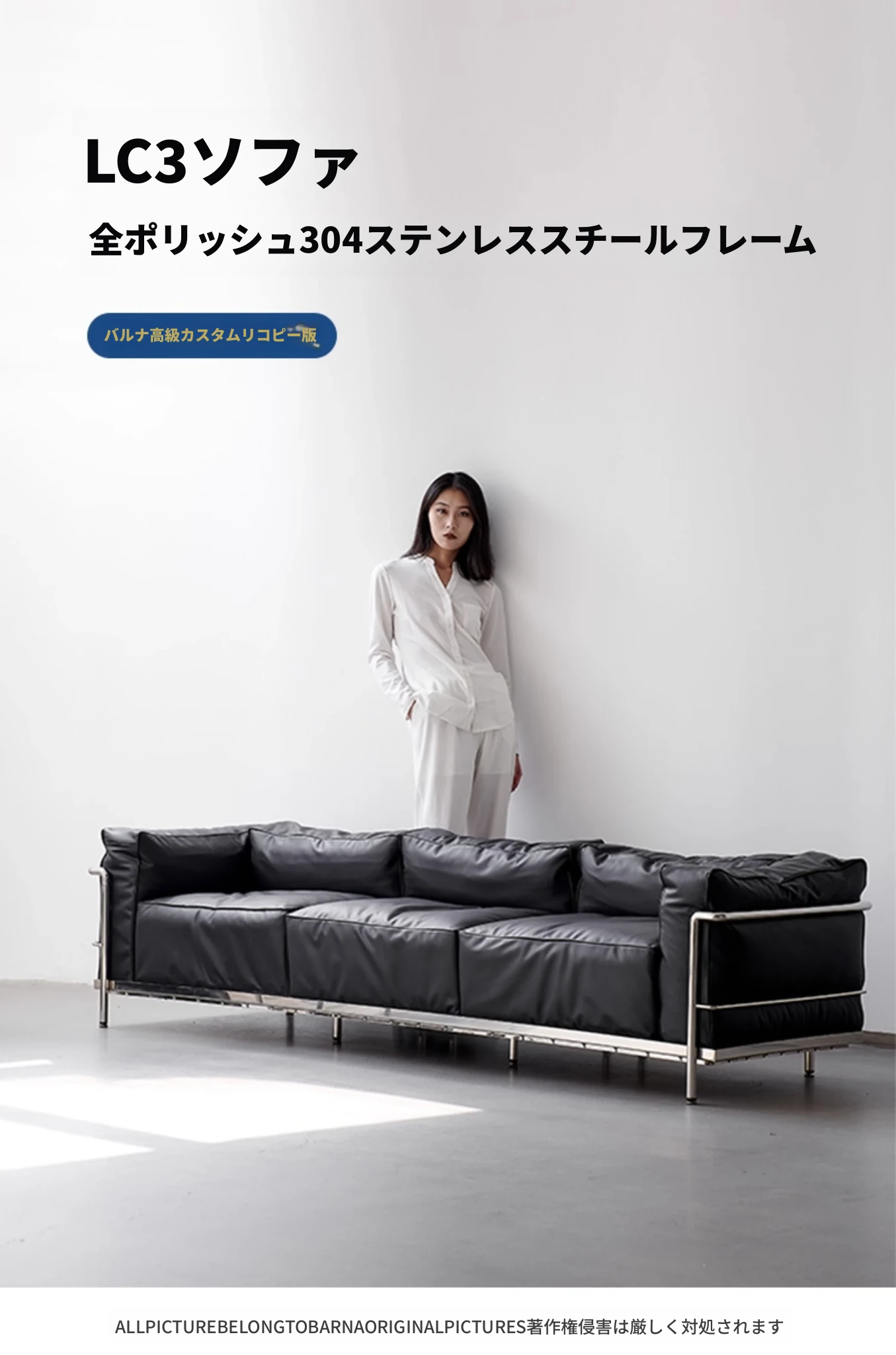LC3ソファ ステンレススチール製 本革使用 スタイリッシュな三人掛け 会議室やリビングに最適なビジネス向けデザイン