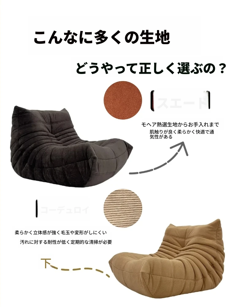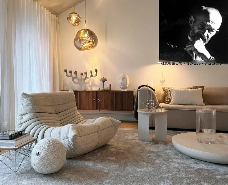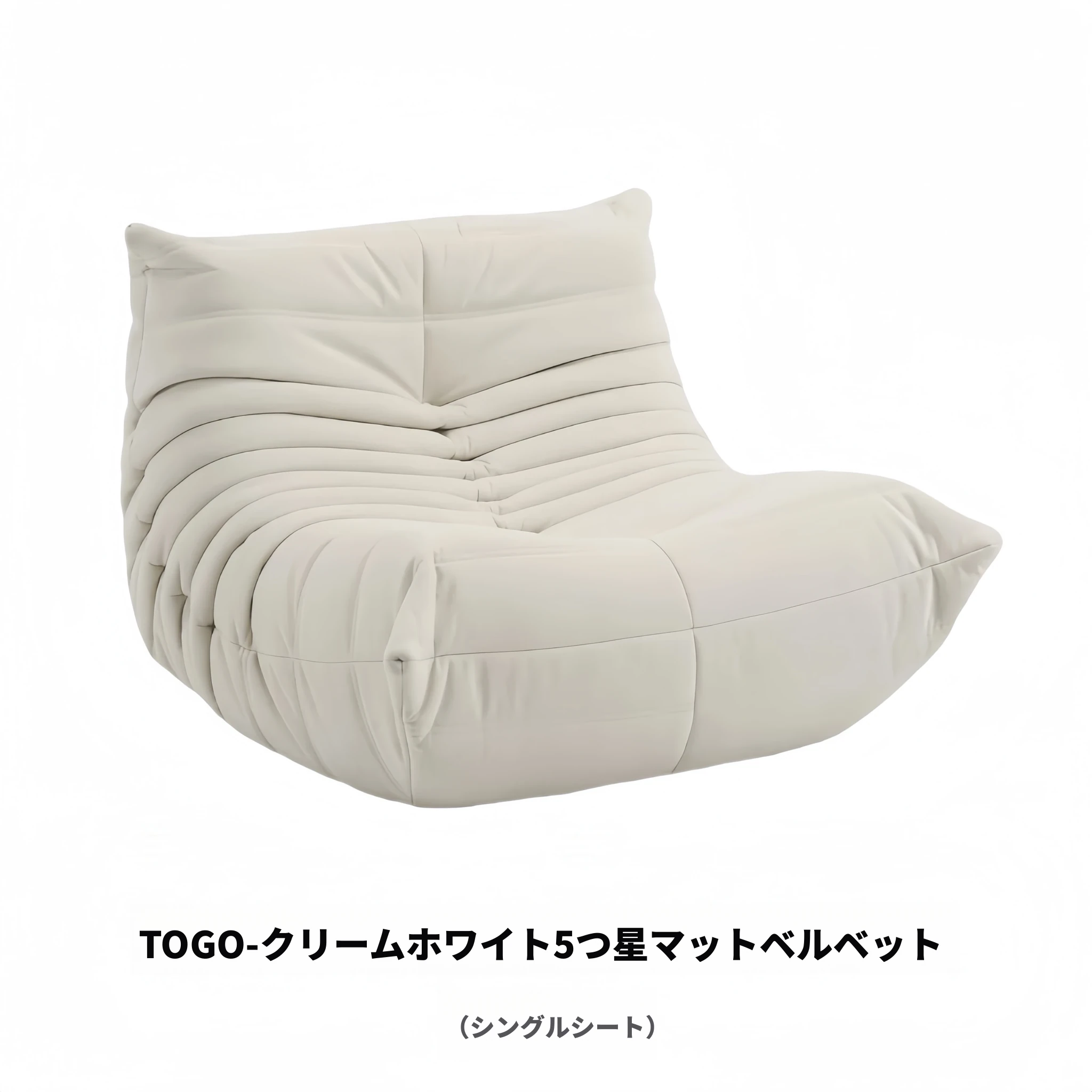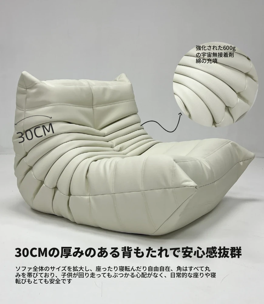 Ligne Roseのアートな空間を演出する、オリジナル復刻版スエードダブルサイズクリームカラーTogoバグ型ラウンジソファ!ふわふわの座り心地で、リラックスしたひとときをお楽しみください。
