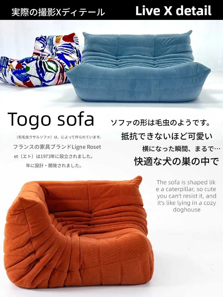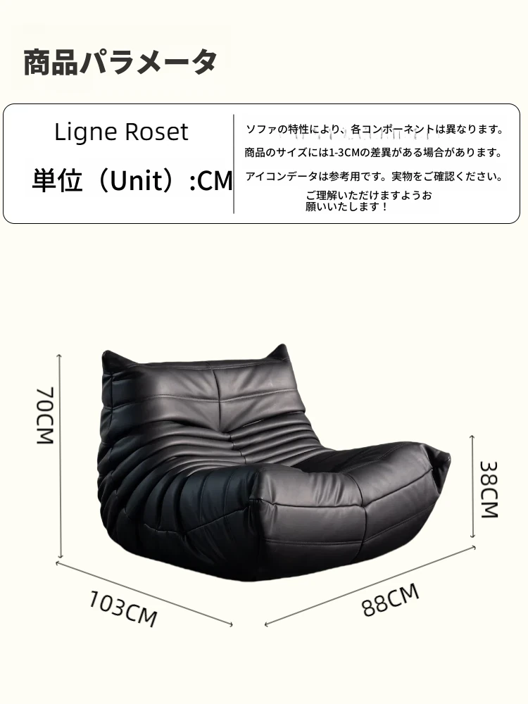 Ligne Roseのエレガンスを再現した本革製イタリアンミニマリストTogoスタイルのリラックスソファ - 柔らかなクッションで極上のくつろぎを体験!