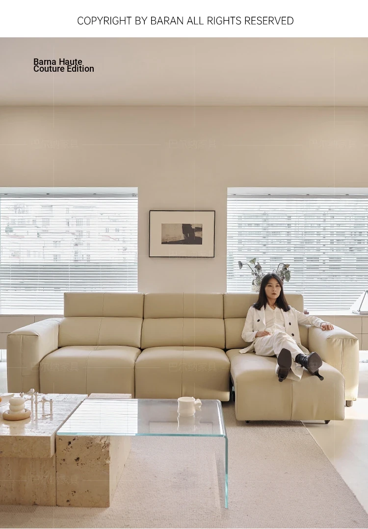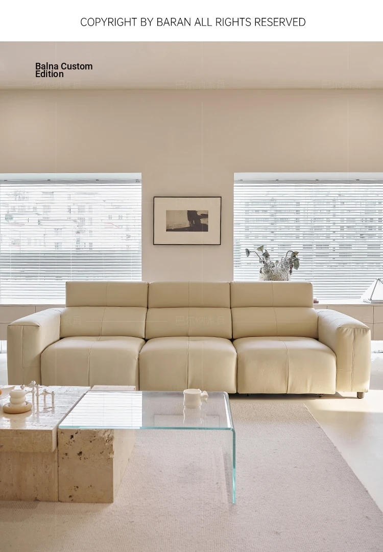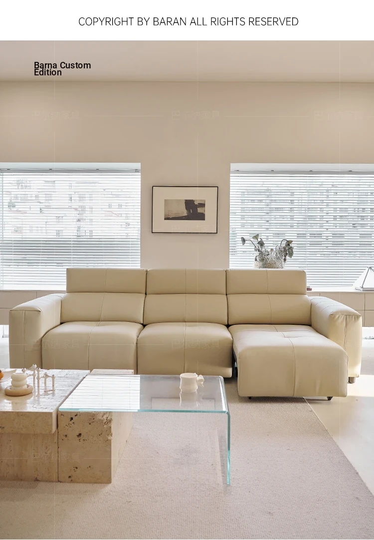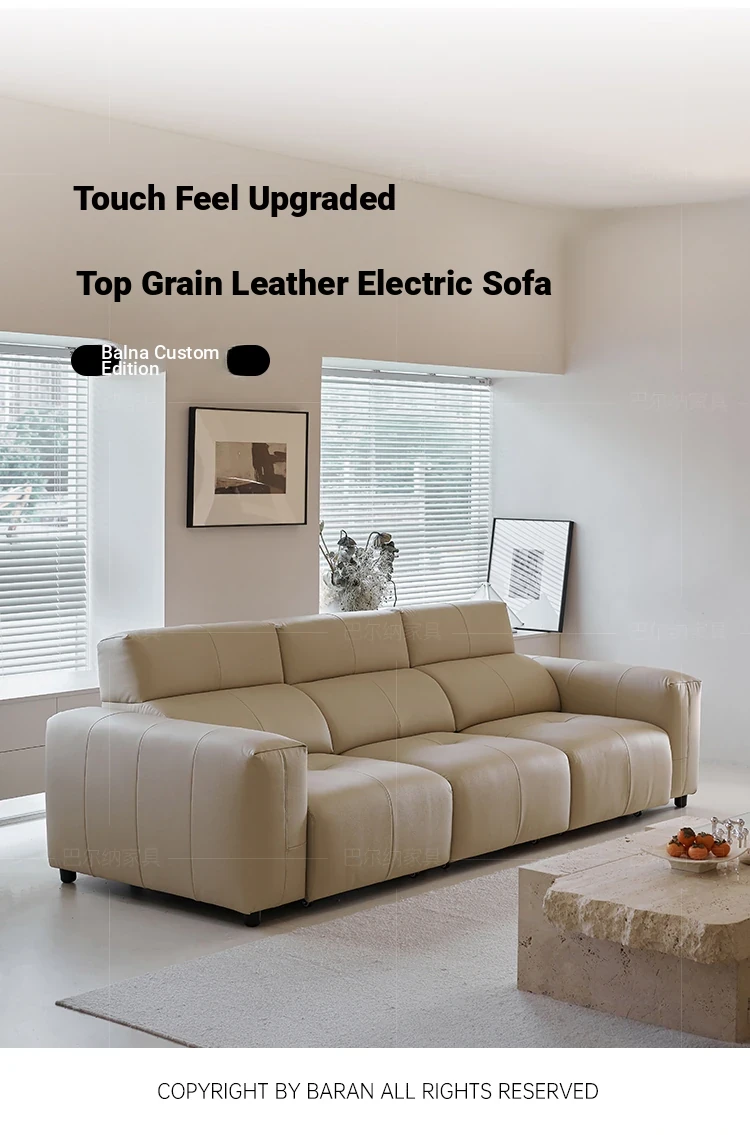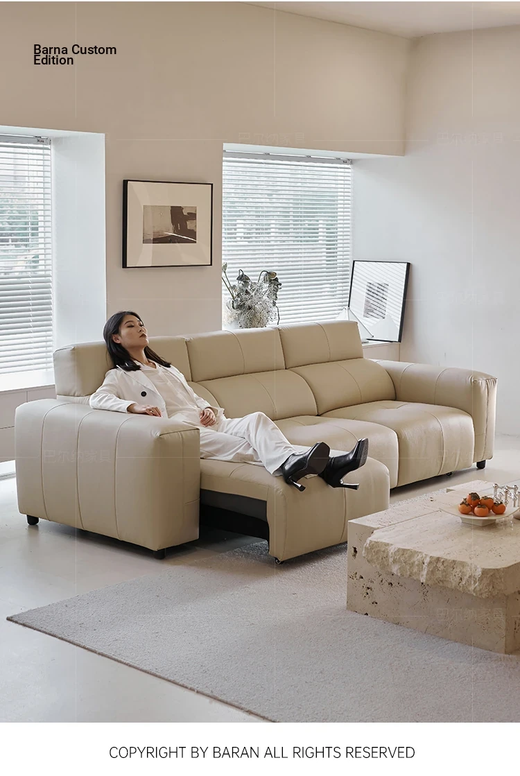 Luxury Italian Minimalist Electric Reclining Sofa Bed - High-End Wall-Hugging Design in Top Grain Leather for Modern Living Rooms. Perfect for Comfort and Style!