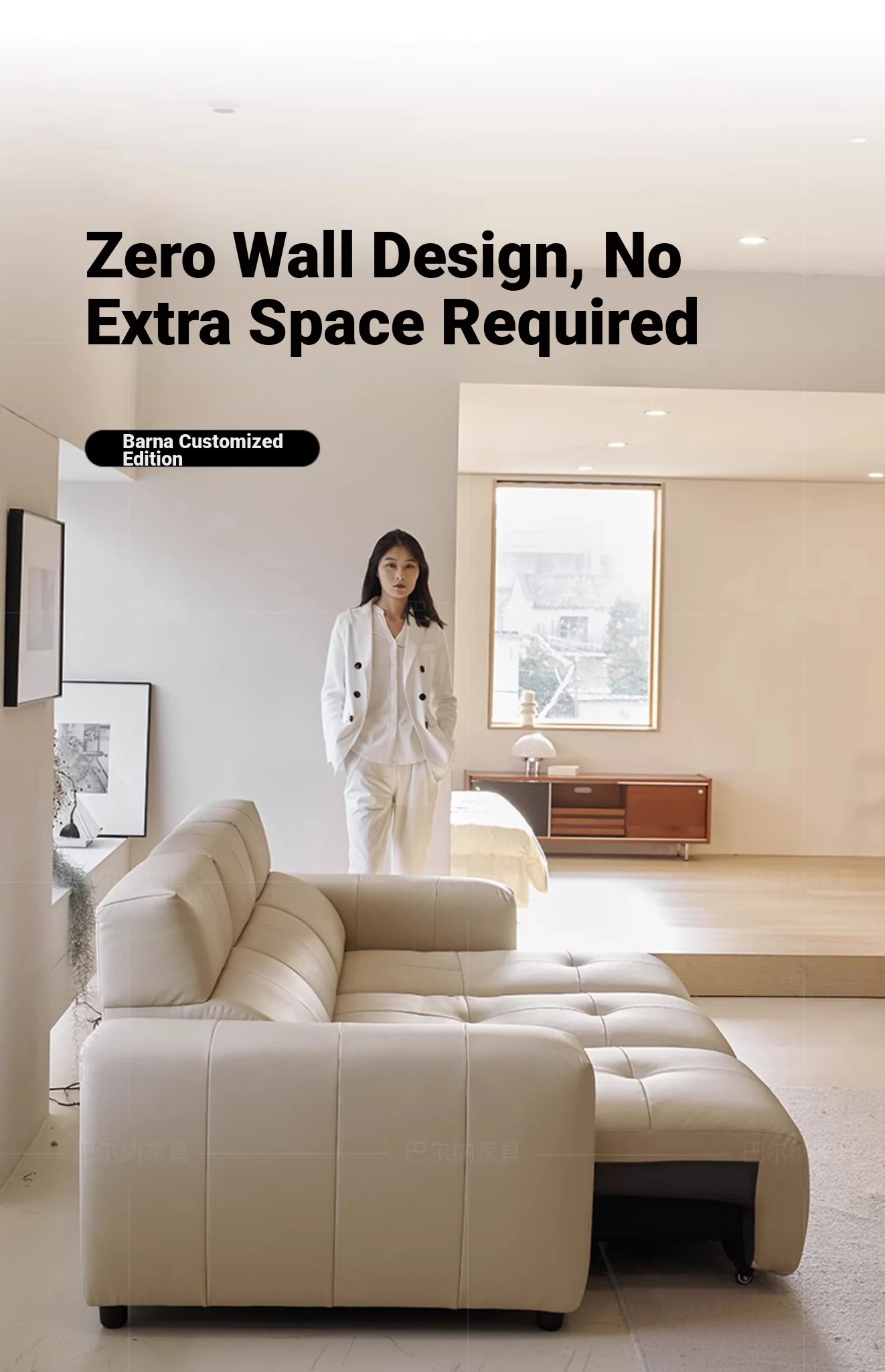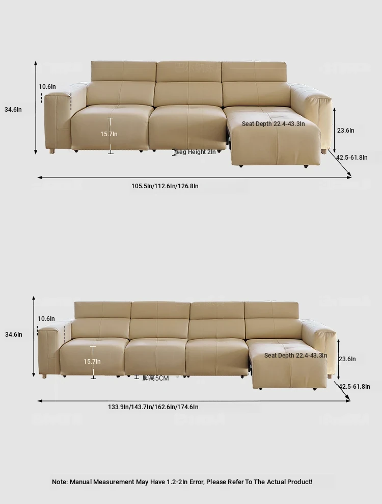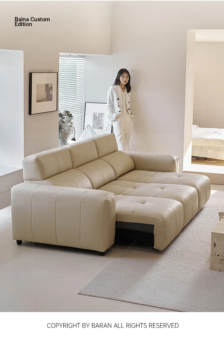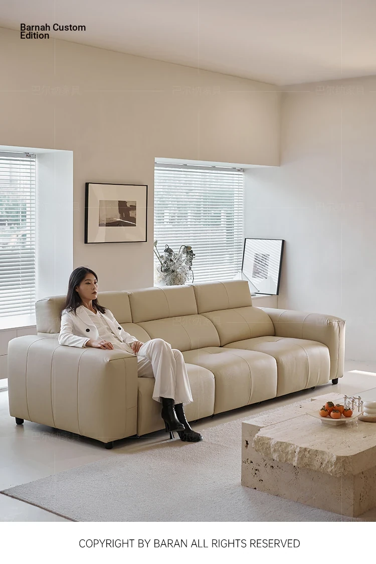 Luxury Italian Minimalist Electric Reclining Sofa Bed - High-End Wall-Hugging Design in Top Grain Leather for Modern Living Rooms. Perfect for Comfort and Style!