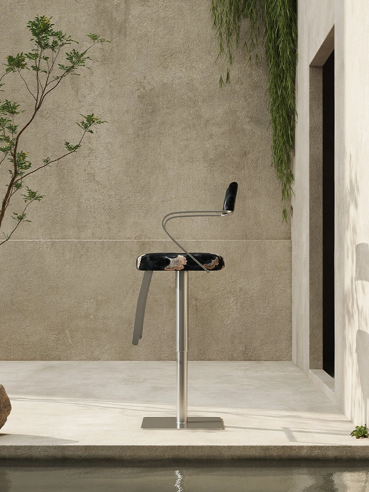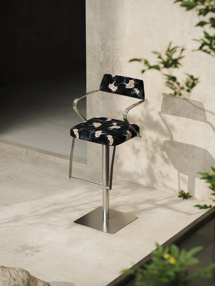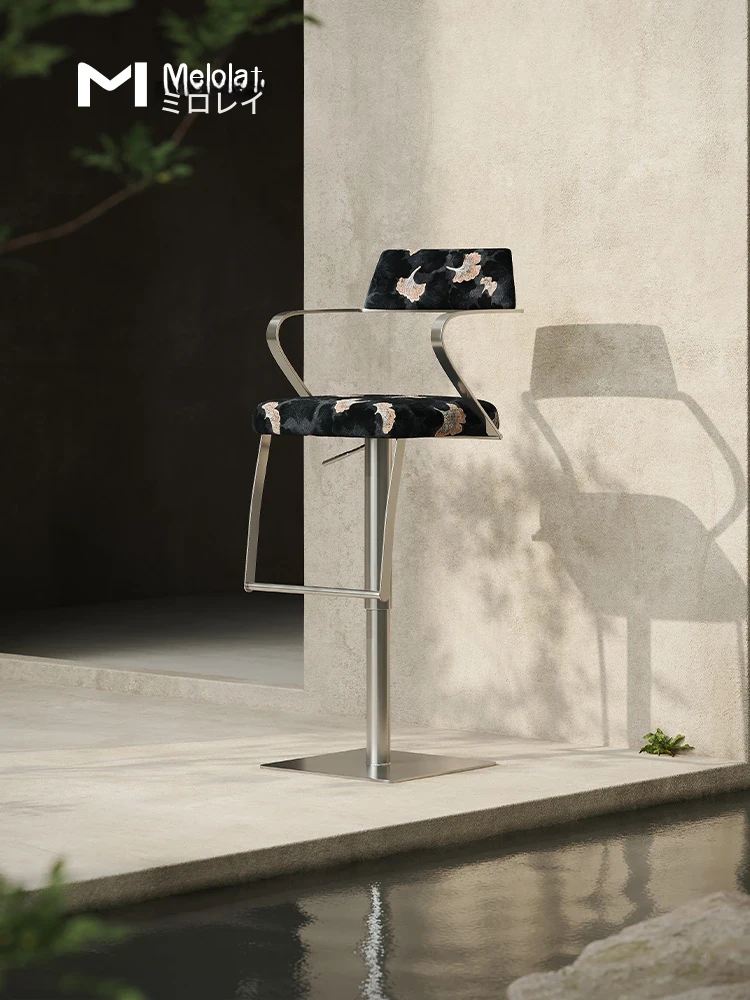 Meloalt デザイン師によるイタリアンステンレス製バースツール - 家庭用、昇降可能&回転機能付き、快適な座り心地でおしゃれな空間を演出!